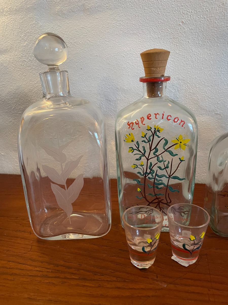 2 Holmegaard “Brændevinsamatøren” med brombær / solbær