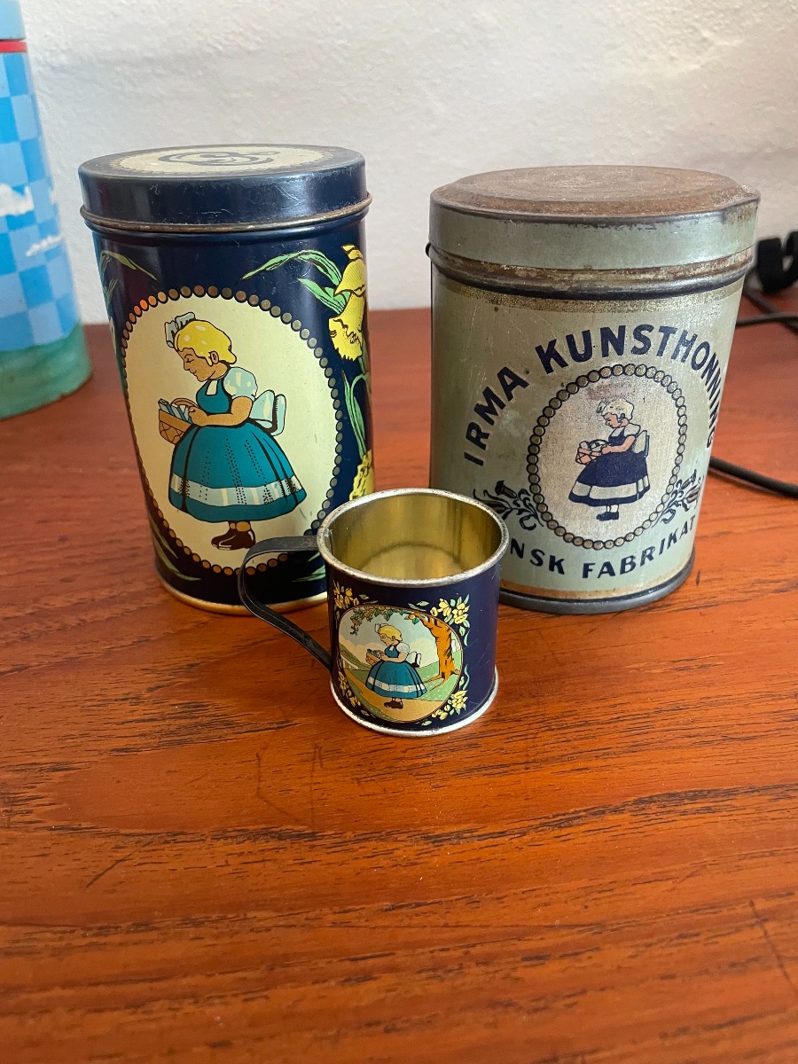 1 IRMA dåse til kunsthonning en del brugsspor samt rust på låg
