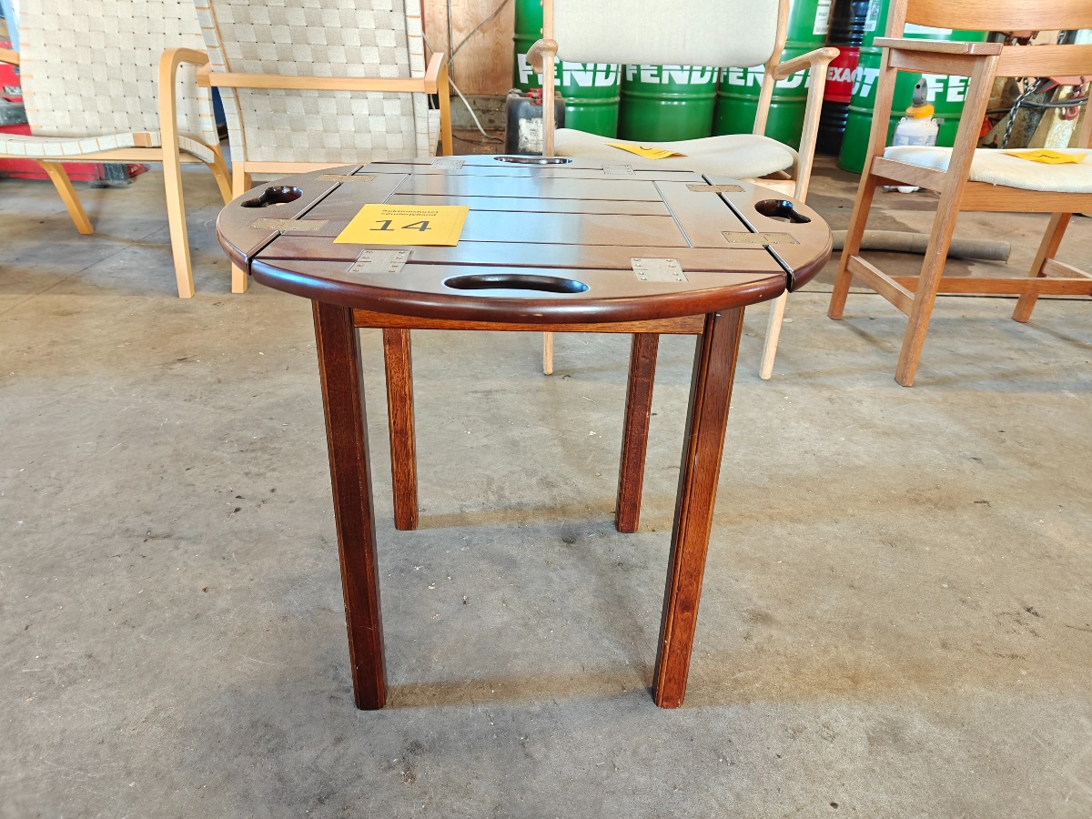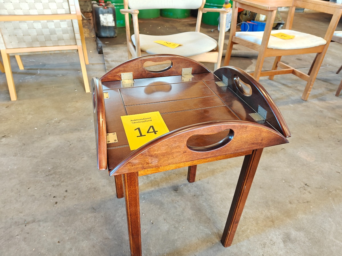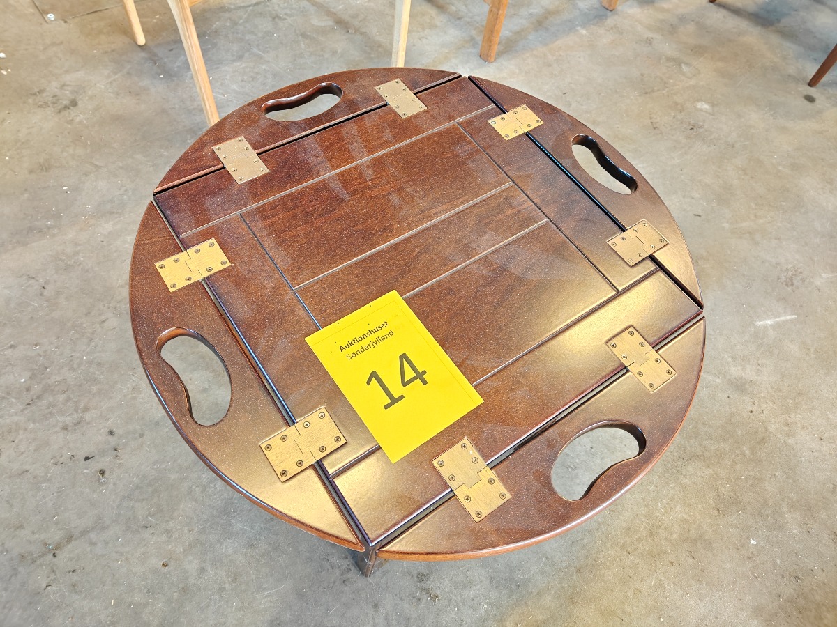 Butlers tray, rundt bakkebord af mahogni. Ø. ca. 65 cm. H. 56 cm.