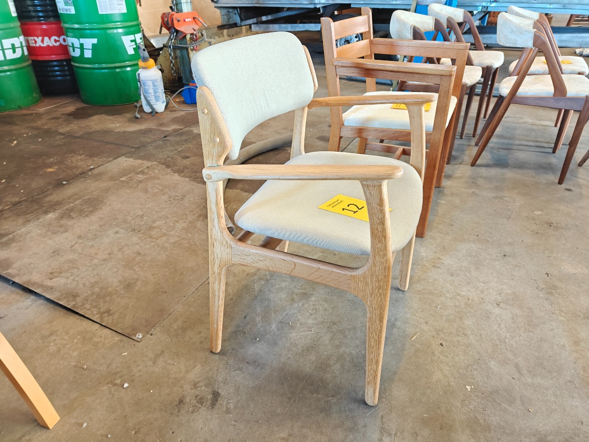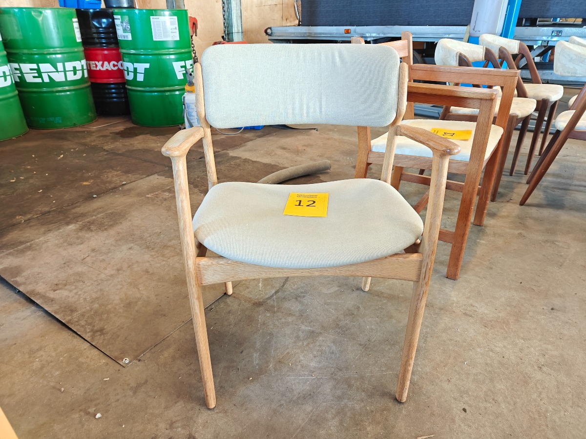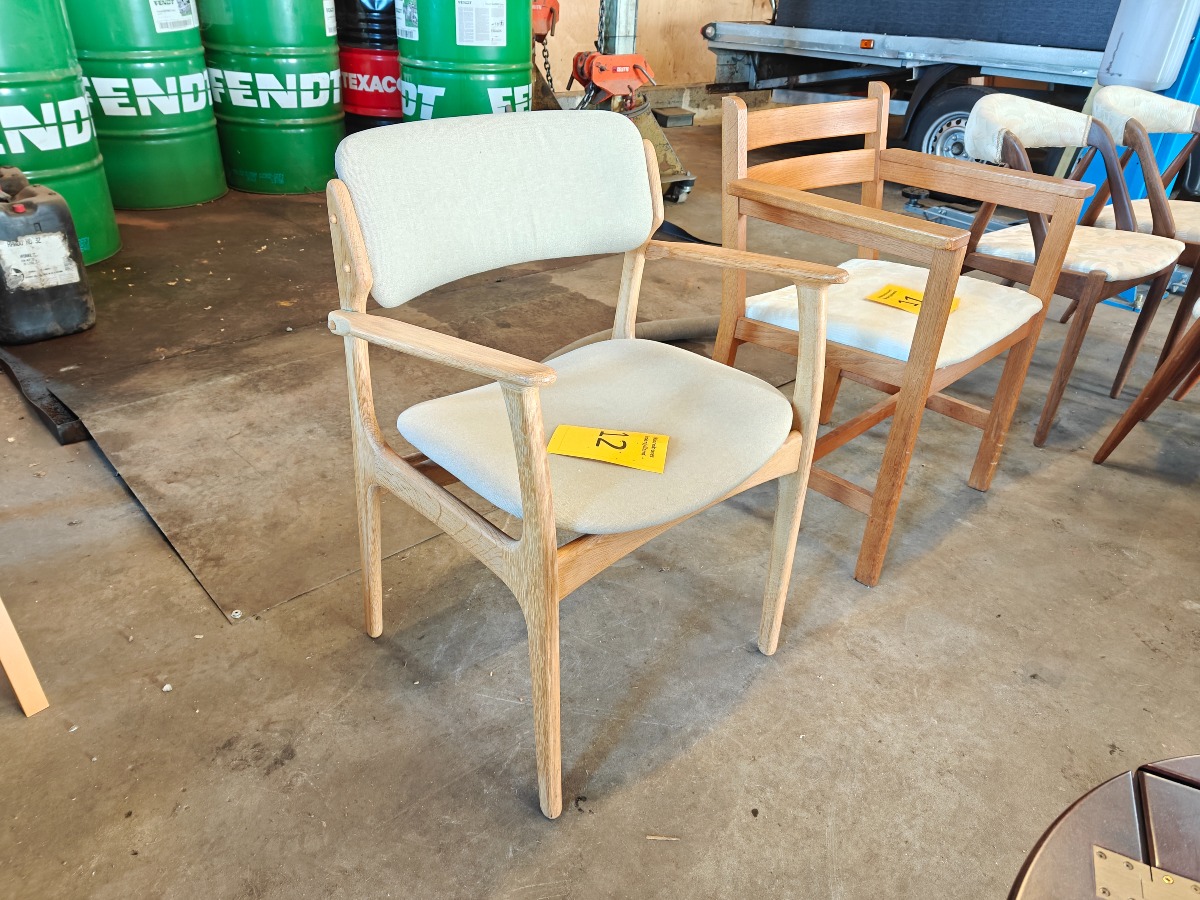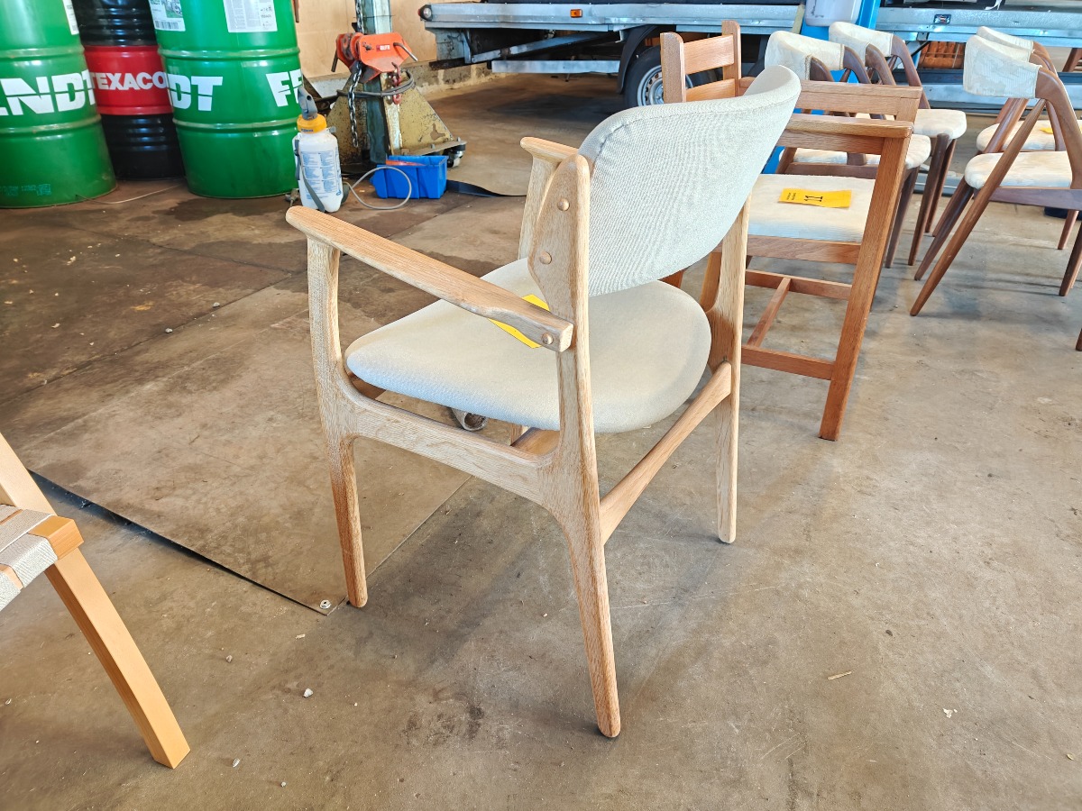 Erik Buch OD-50 armstol af lys oileret eg. Monteret med lys uld. Fremstillet hos Oddense Maskinsnedkeri.