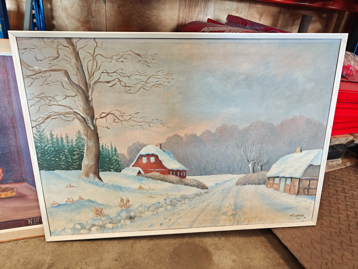 Ubekendte kunstnere 5 malerier. Landskaber og interriørs. Mål for største til sammenligning. 95 x 115 cm.