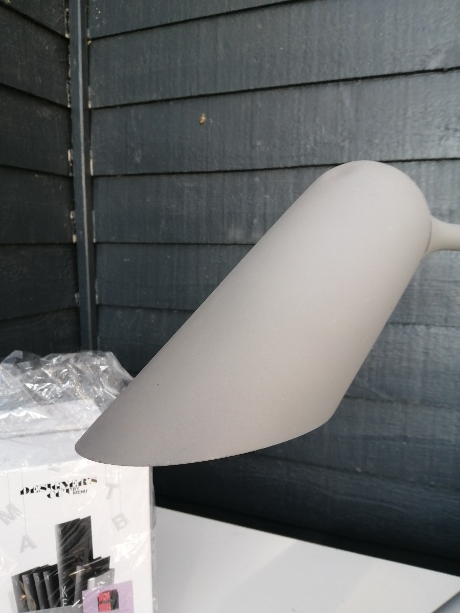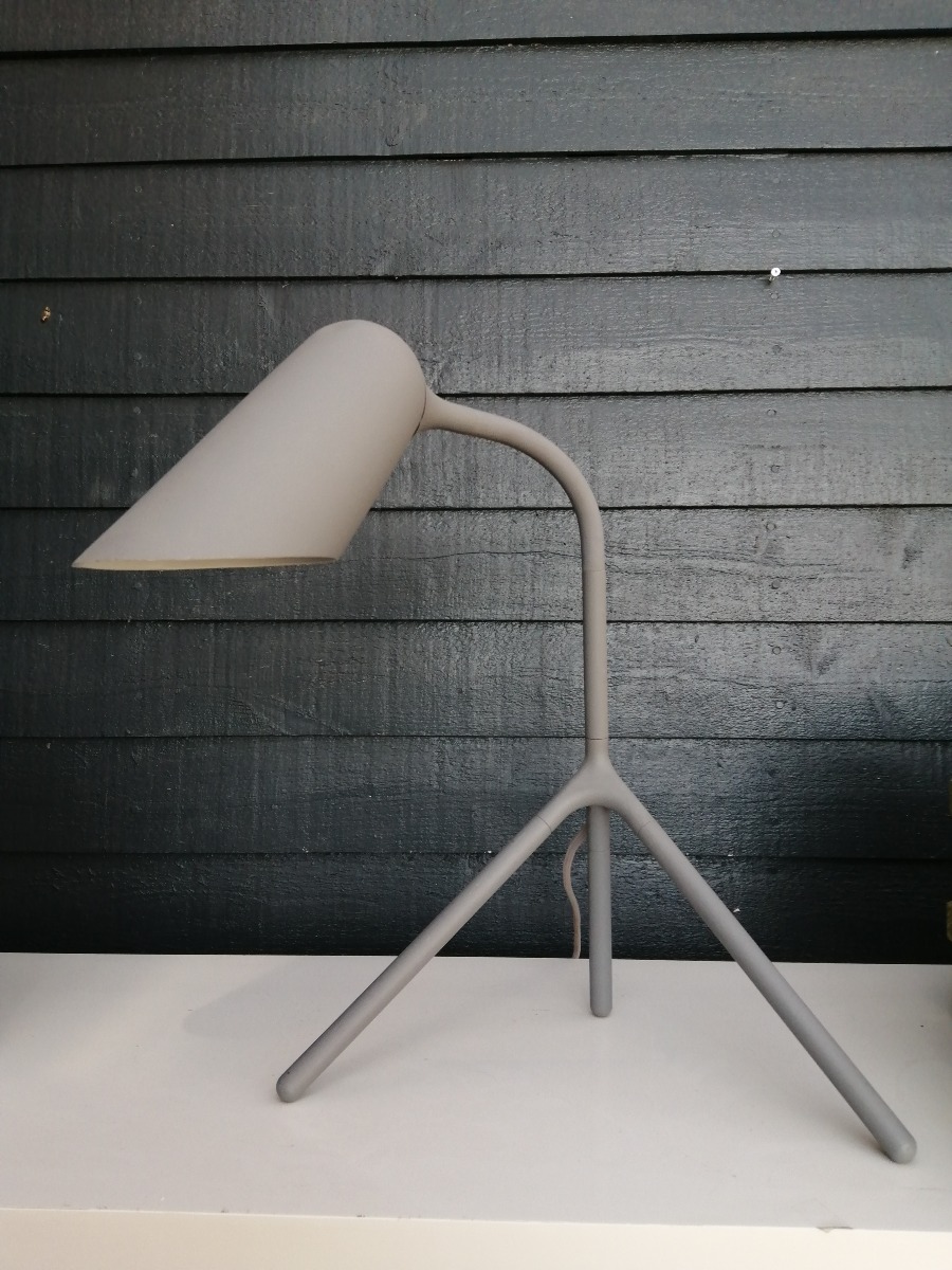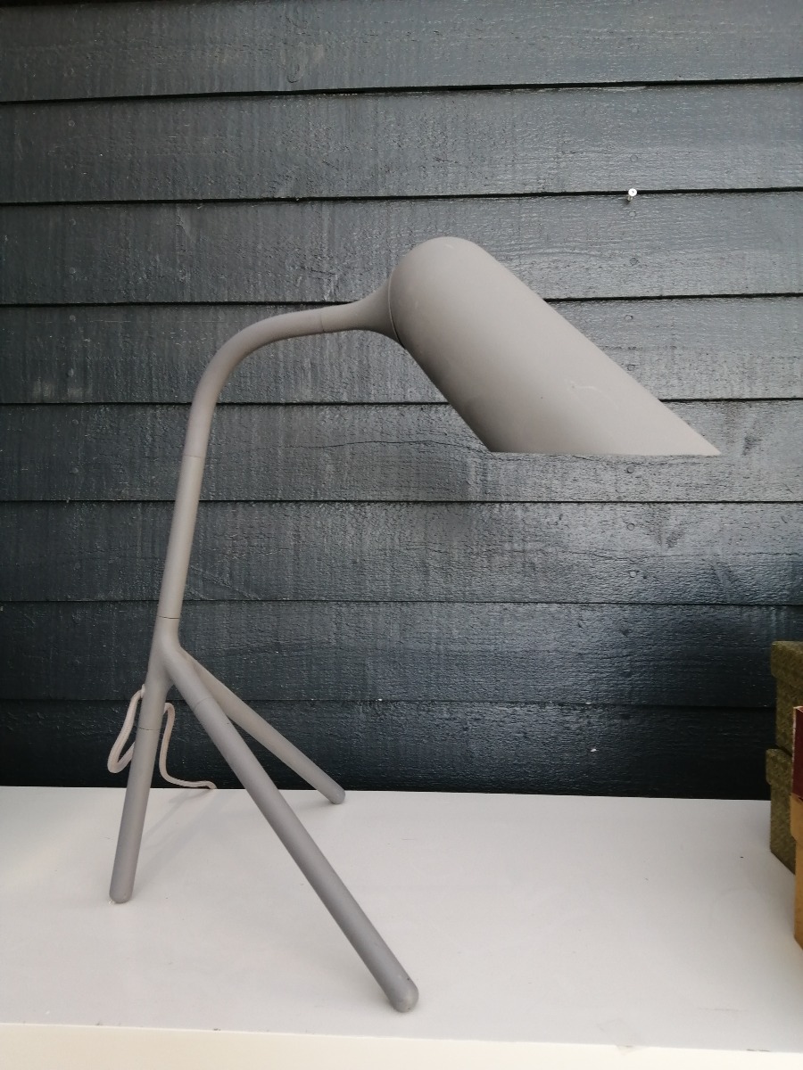 Henrik Pedersen, Curious bordlampe, grålakeret. Mindre skader på lakering sam tlille blød bule i skærm. H. 57, B. 32,5 cm.