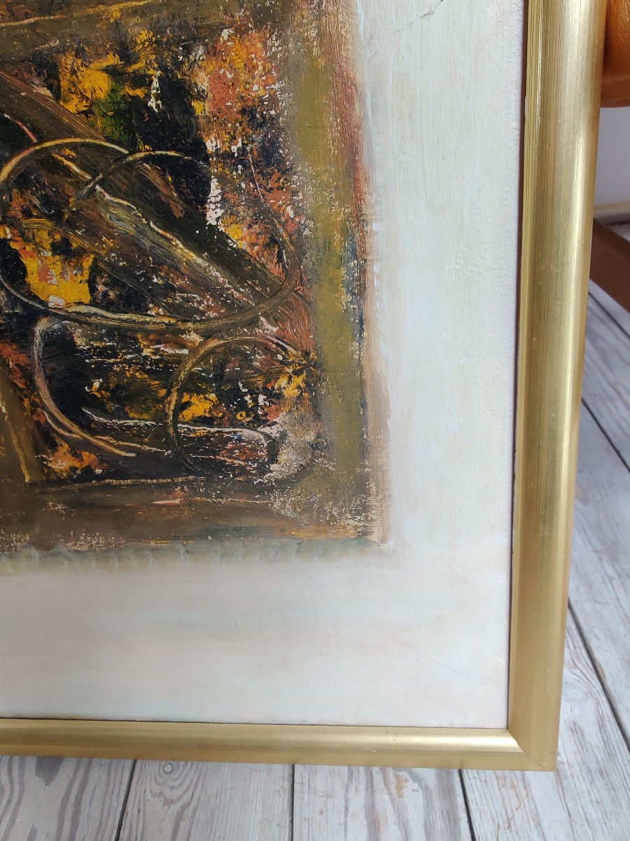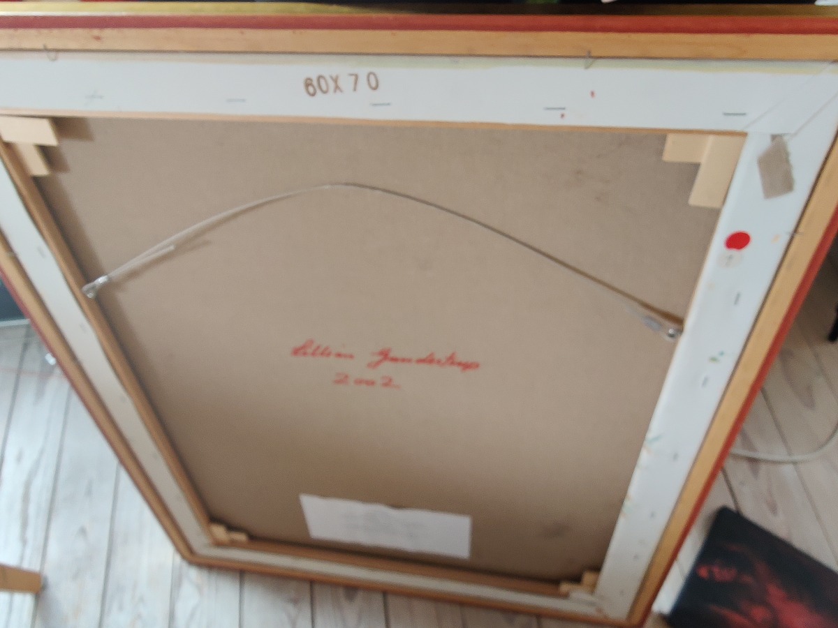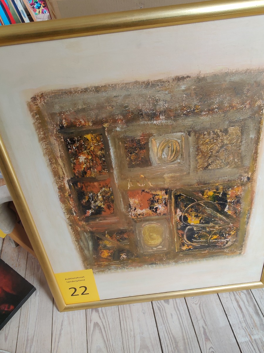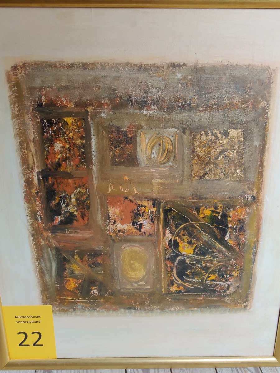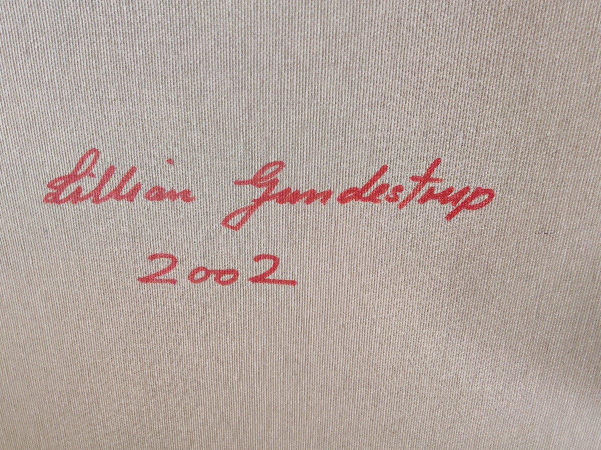 Lillian Gundestrup Komposition. Olie på lærred. Sign. på bagsiden Lillian Gundestrup 2002.