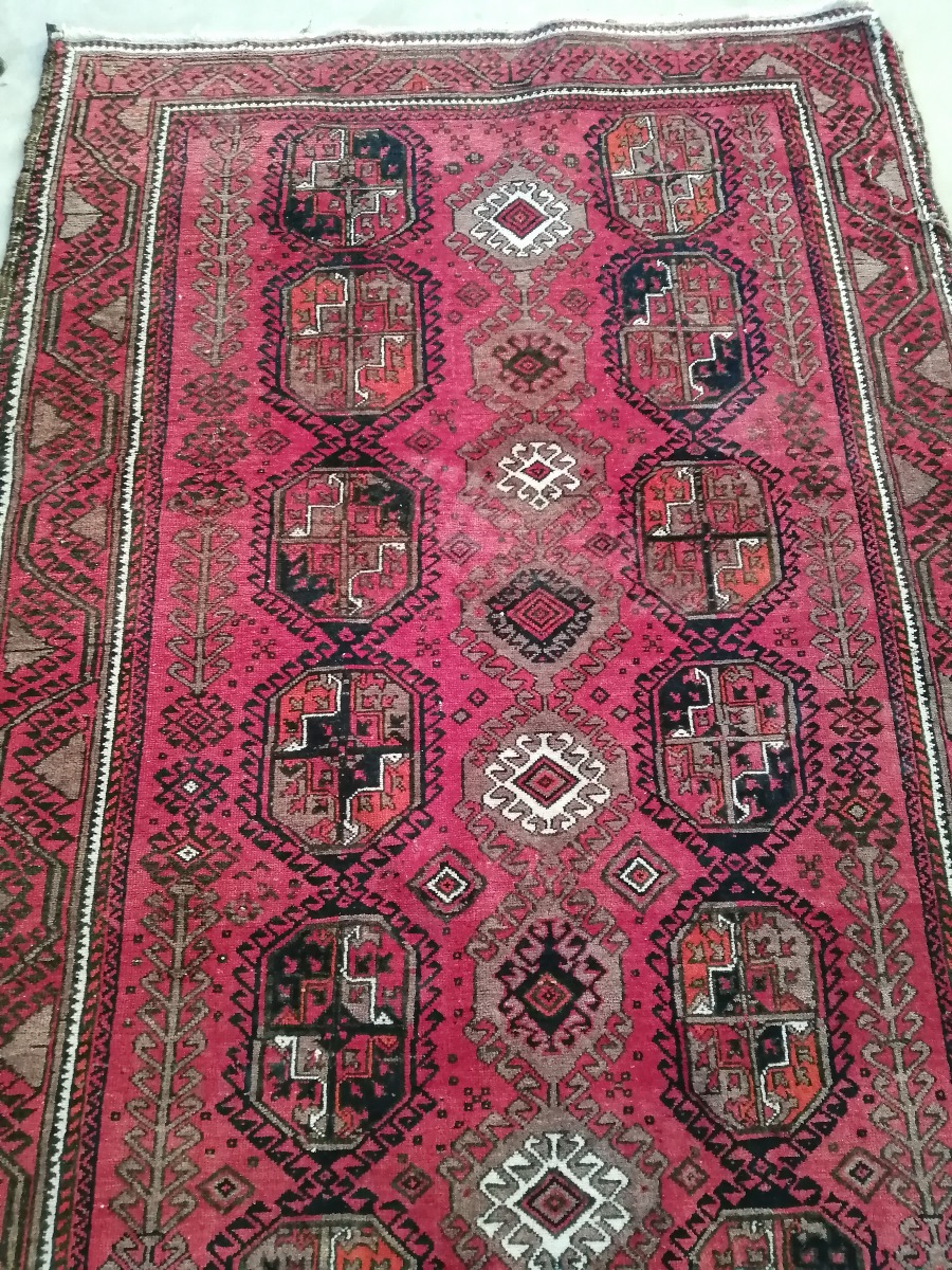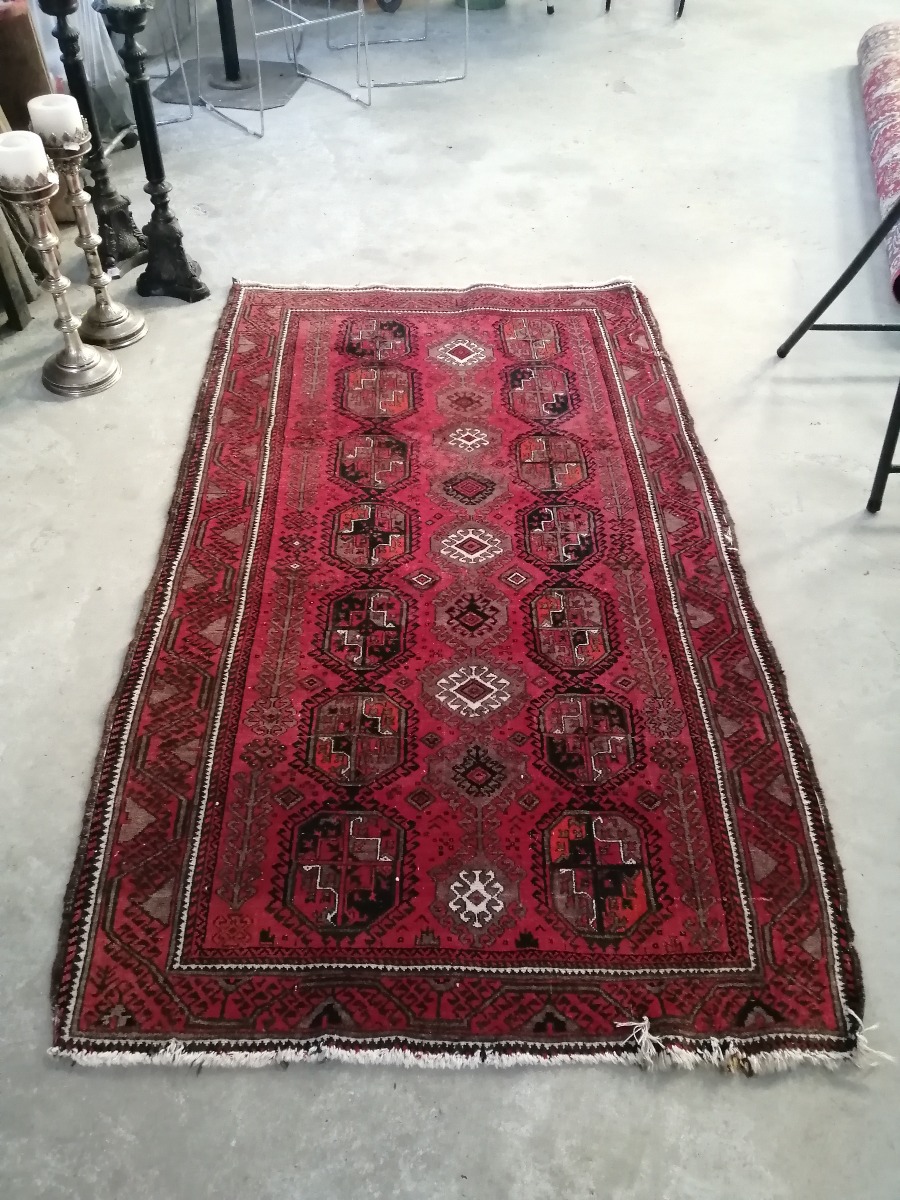 Pakistansk tæppe 200 x 115 cm. Fremstår med slid på kanter.