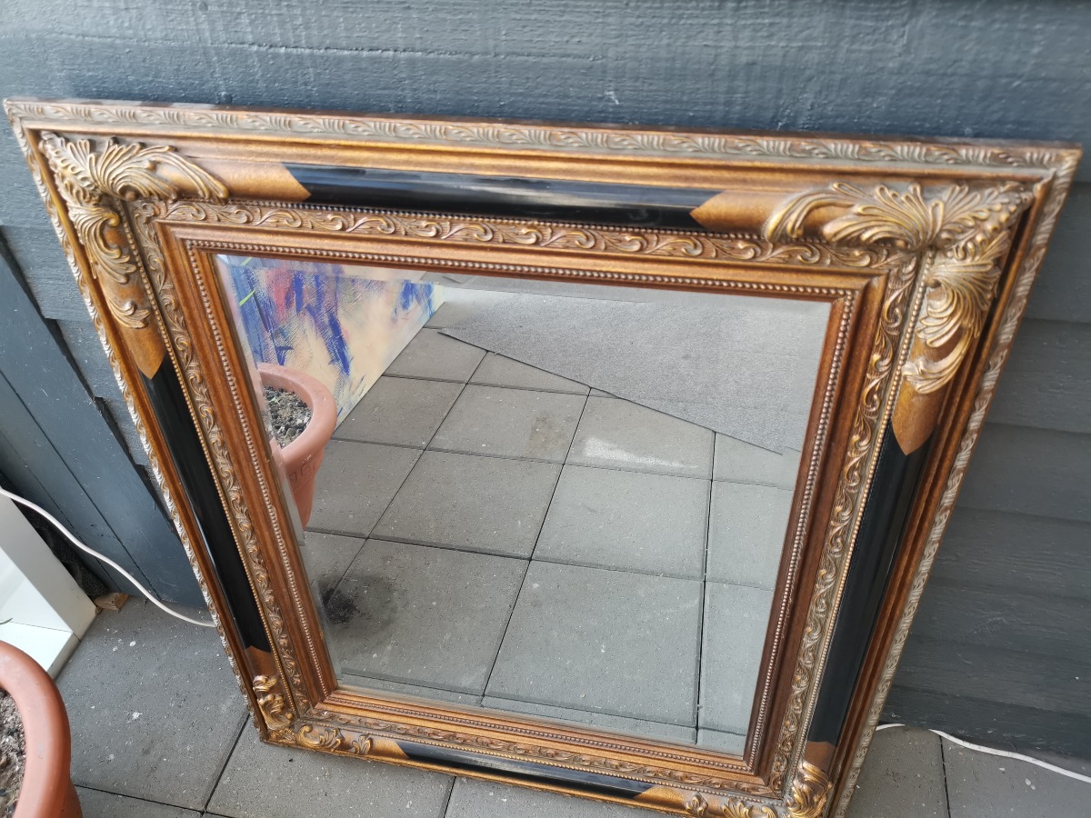 Rektangulært spejl i delvis forgyldt ramme