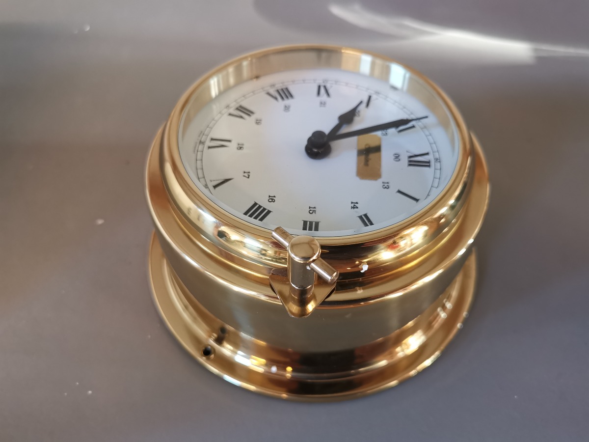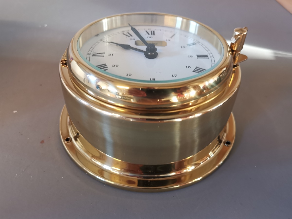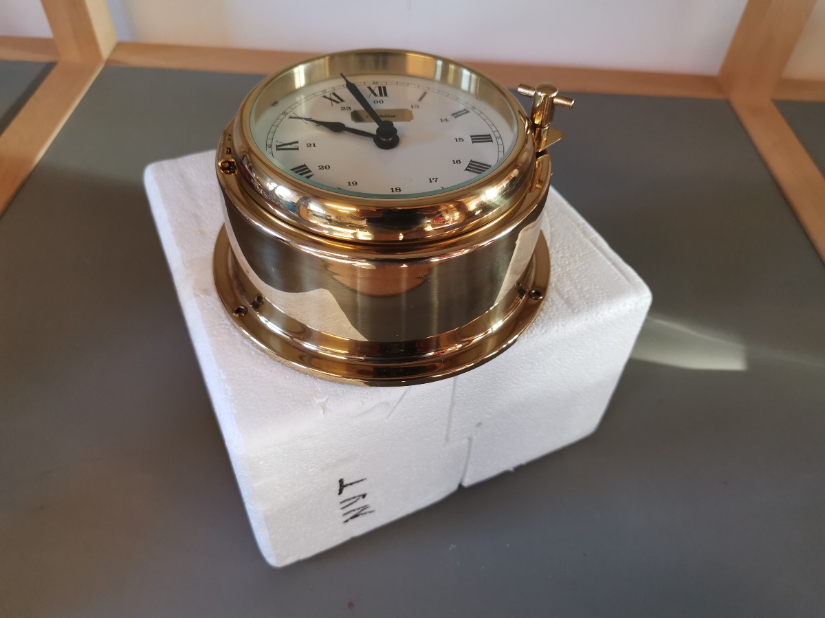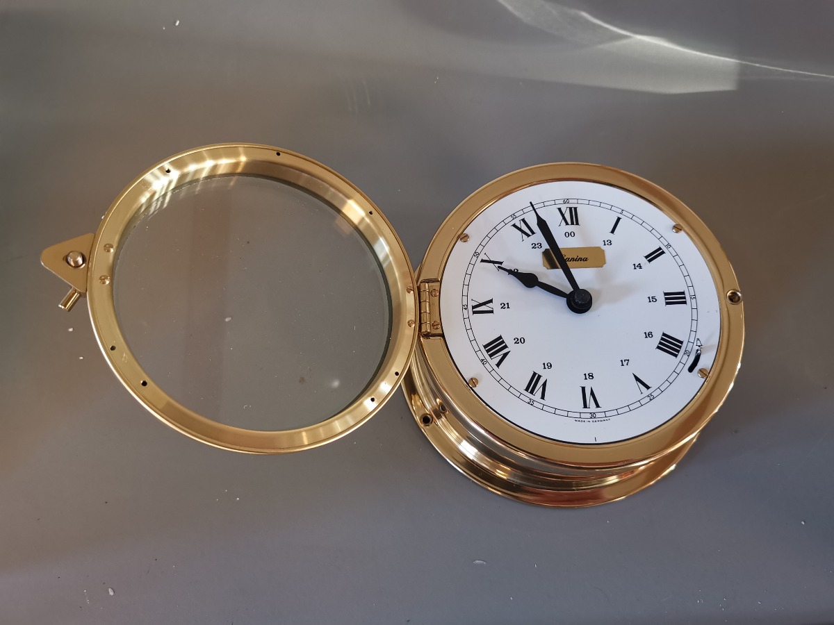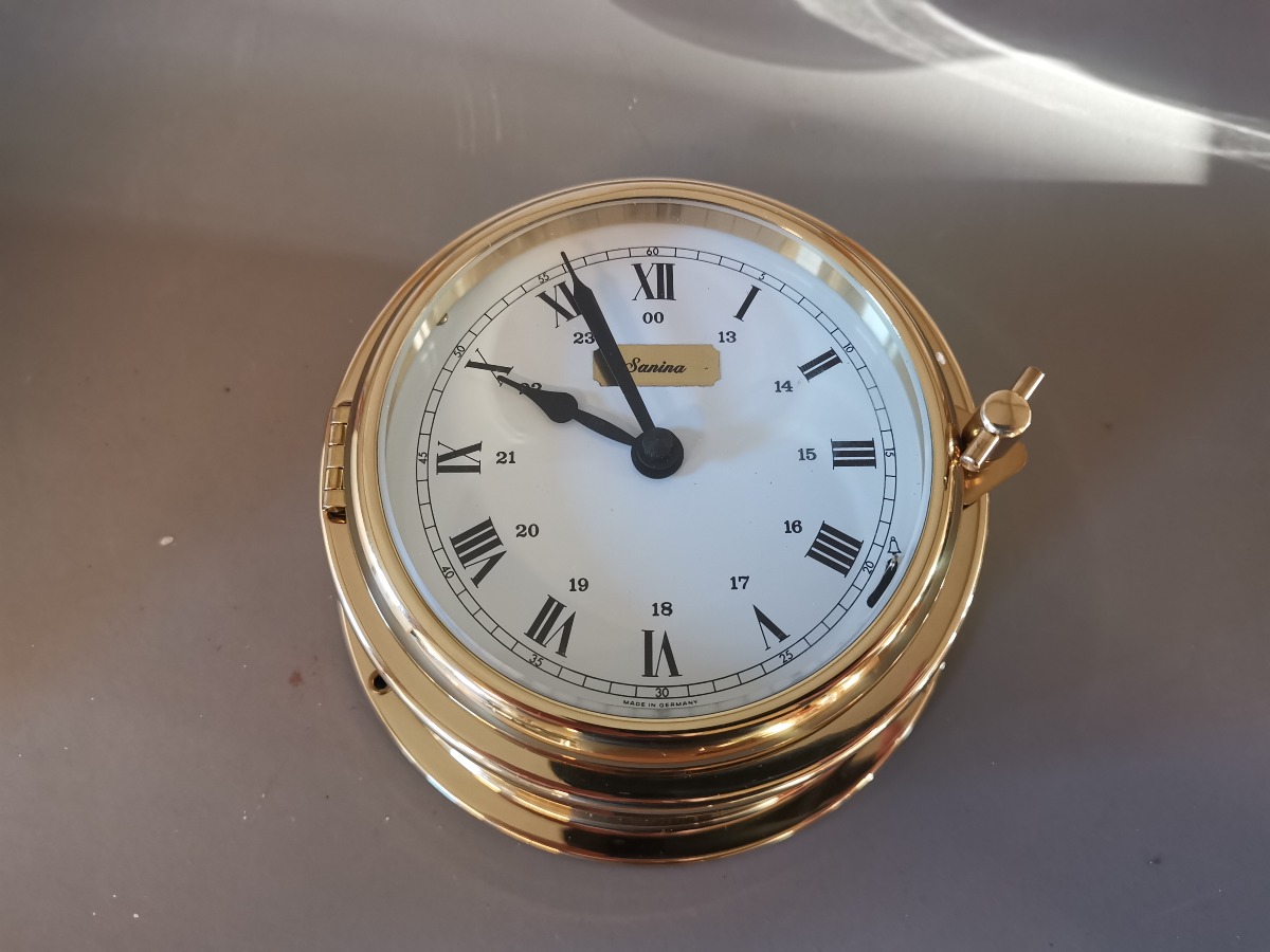 Sanina Skibsur med kasse af messing. Monteret med Qvartz-værk. Fremstår ubrugt.