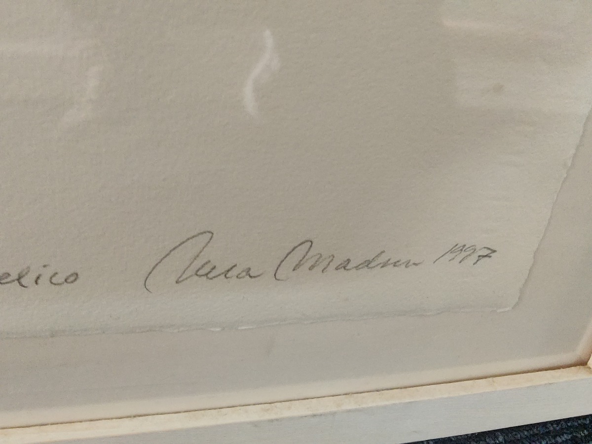 Ulla Madsen. To graveringer/ætsninger på papir. "Silent voice of Mexico". Eget tryk 3/10. Signerede og daterede 1997. 70 x 50 cm.
