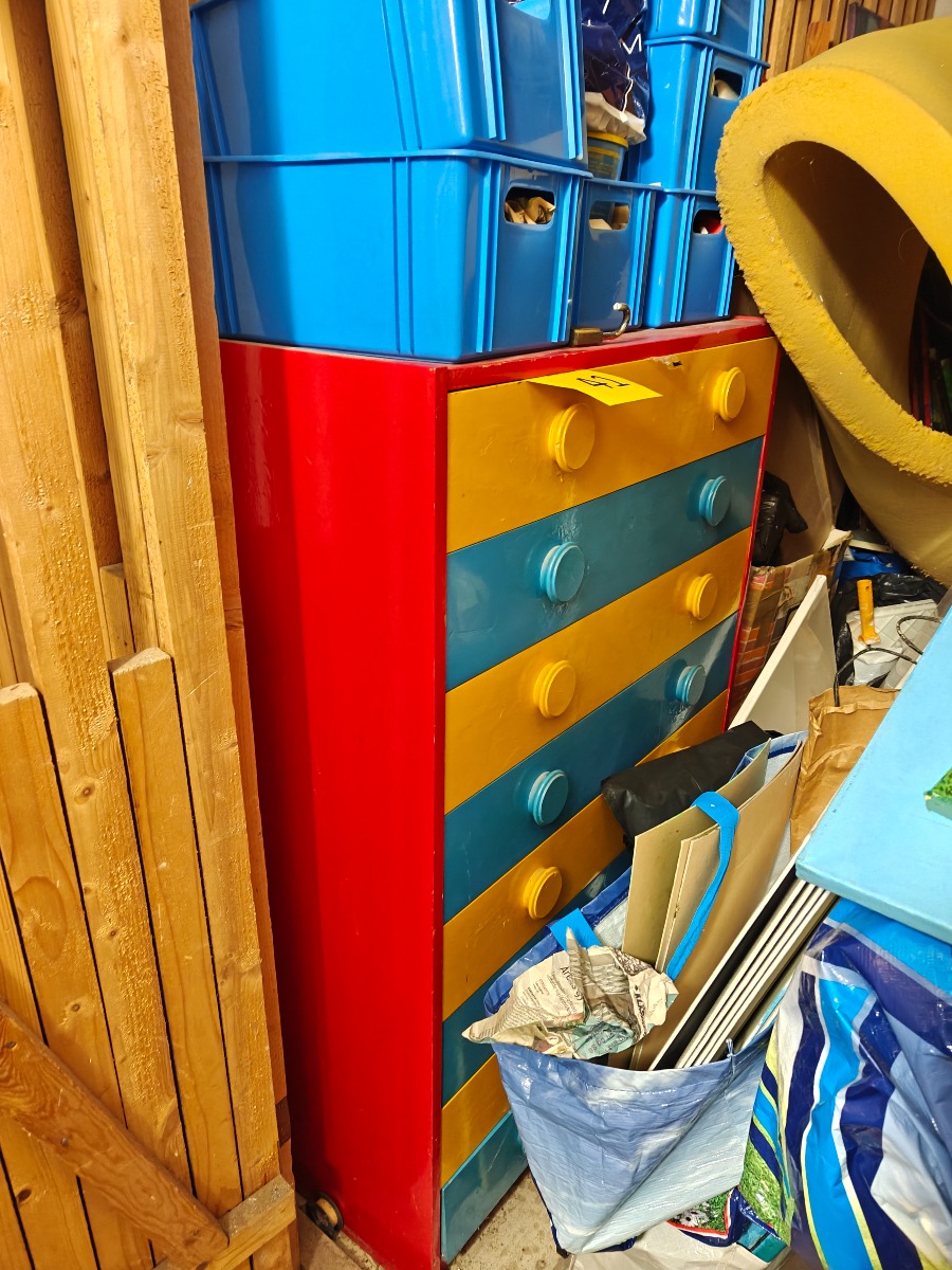 Bemalet kommode med 8 skuffer i front. På oprettelsestidspunktet var det ikke muligt at tage præcise mål. Ca. mål: H. 80cm. B. 75, D. 40 cm.