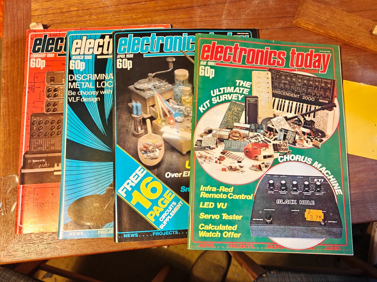 Stor samling Electronics Today. 5 tidsskriftholdere. I god stand.