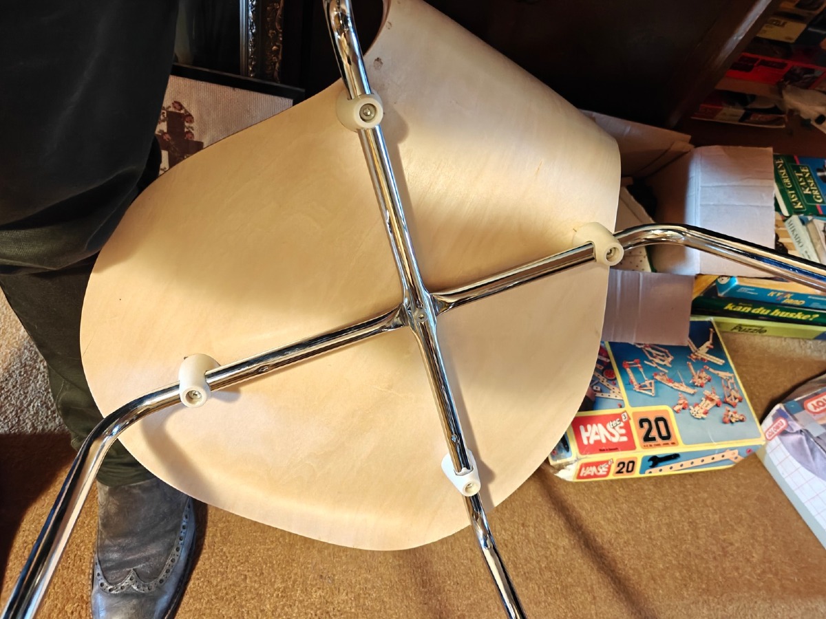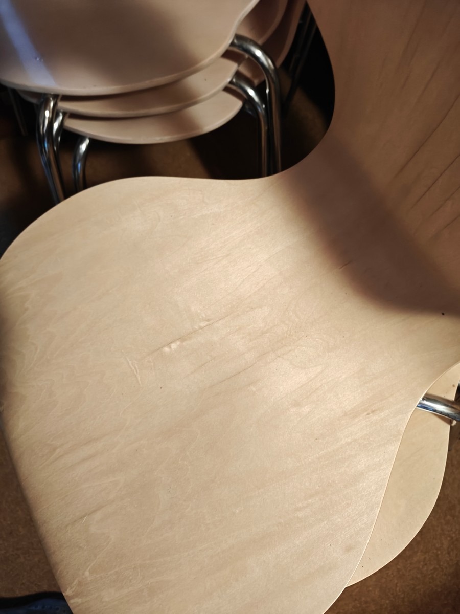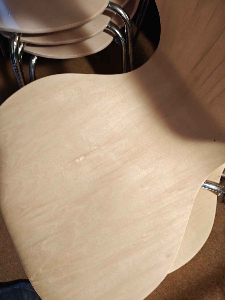 4 skalstole af formspændt lakeret finer. Mindre brugsspor.