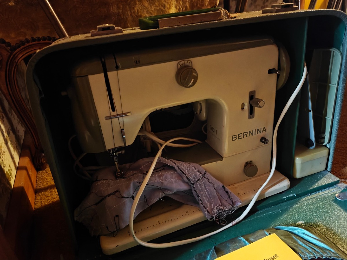 Ældre Bernina symaskine. Original kufferet med tilbehør. Vi garanterer ikke for funktionaliteten.