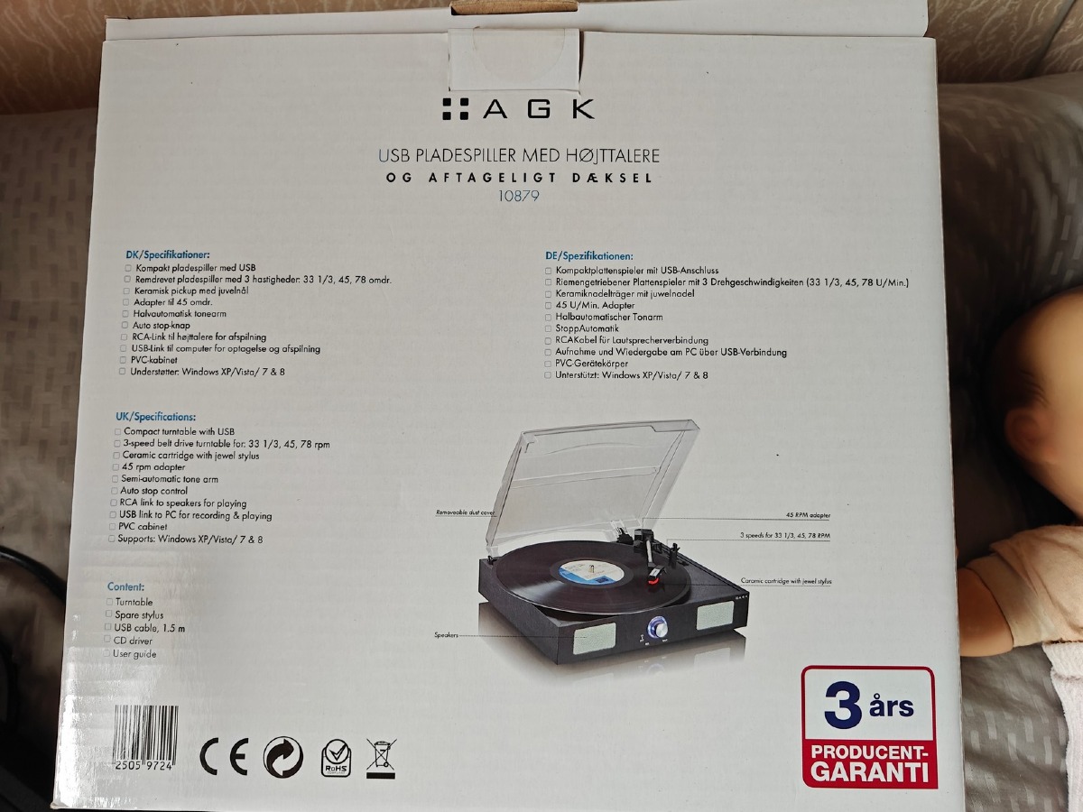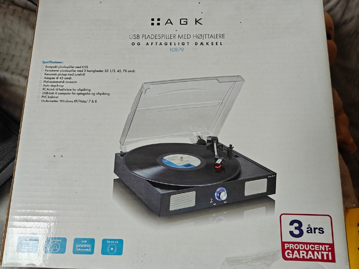 AGK USB-pladespiller med original indpakning. Vi garanterer ikke for funktionaliteten.