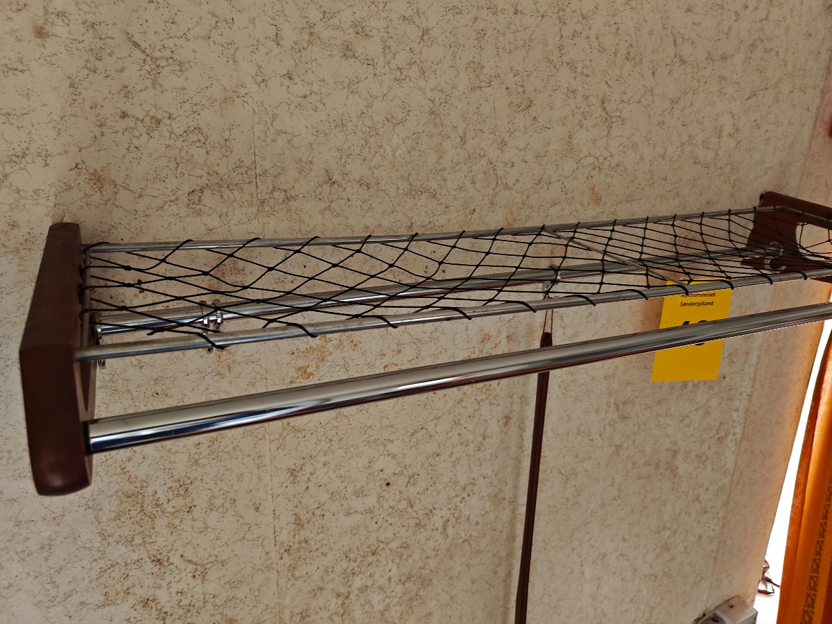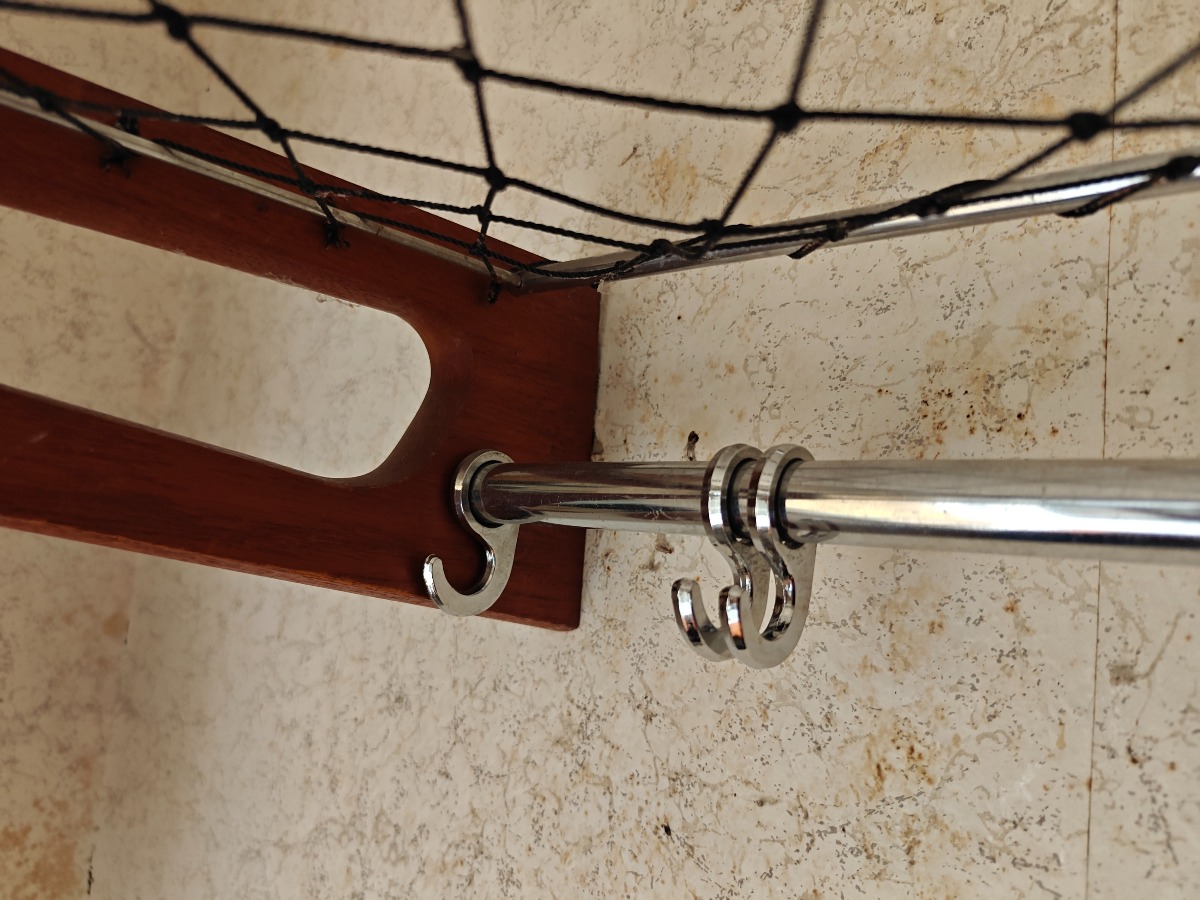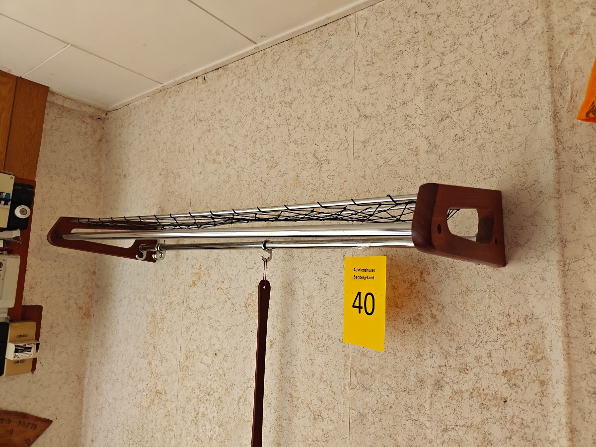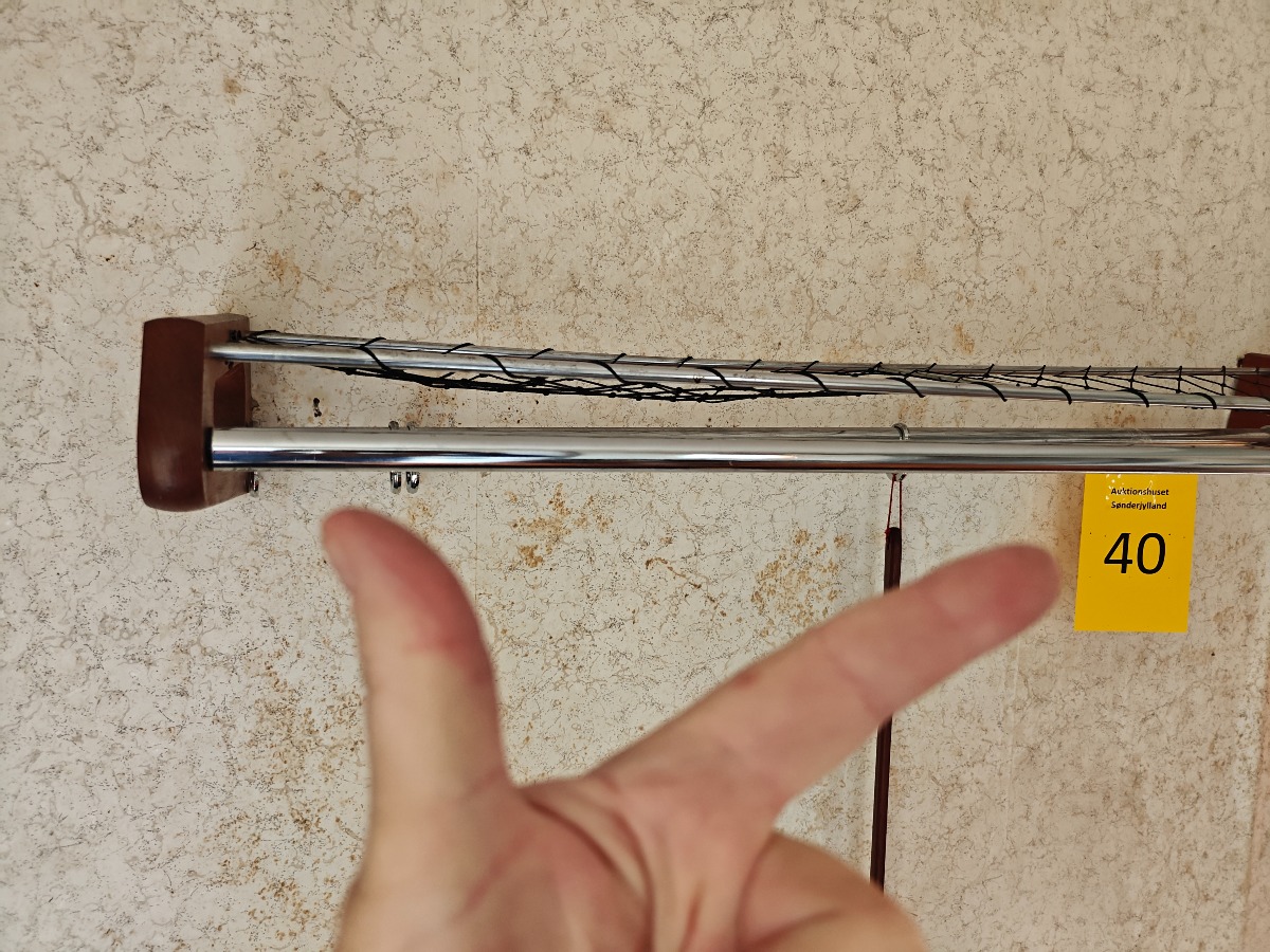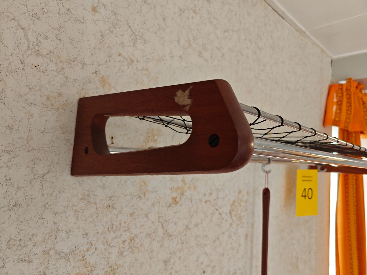 2 hattehylder af teak. og forkromet stål. L. 100 cm.