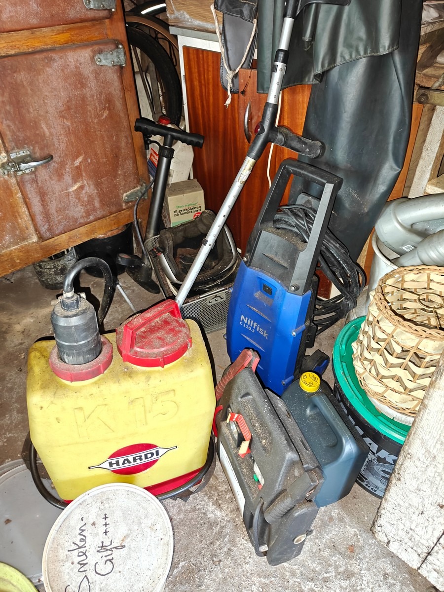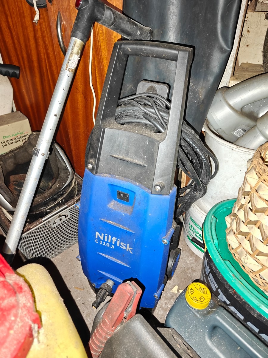 Hardy rygsprøjte, Nilfisk C.110.3 højtryksrenser og jumpstarter. Der garanteres ikke for funktionaliteten.