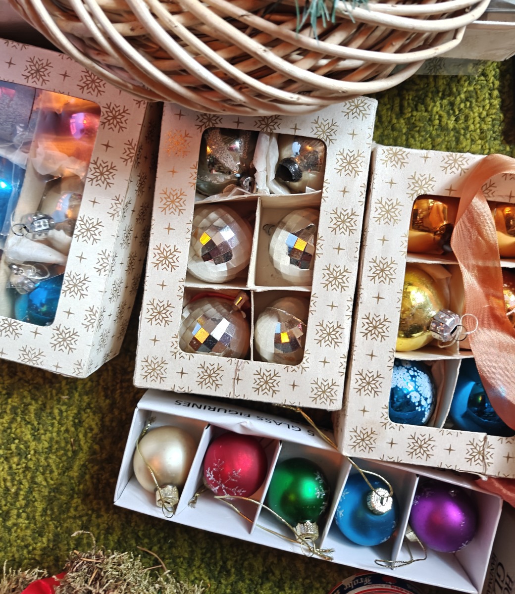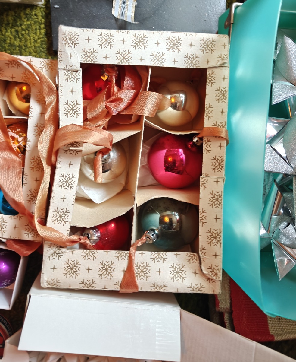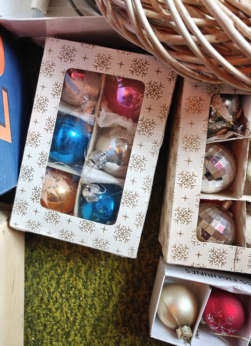 Julepynt. En del kugler fra 1950'erne og 60'erne. Figurer fra Dahls Varehus samt meget andet.