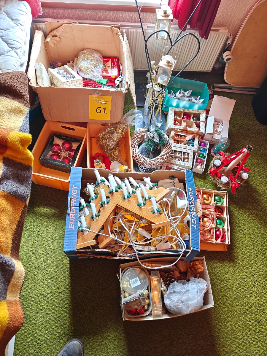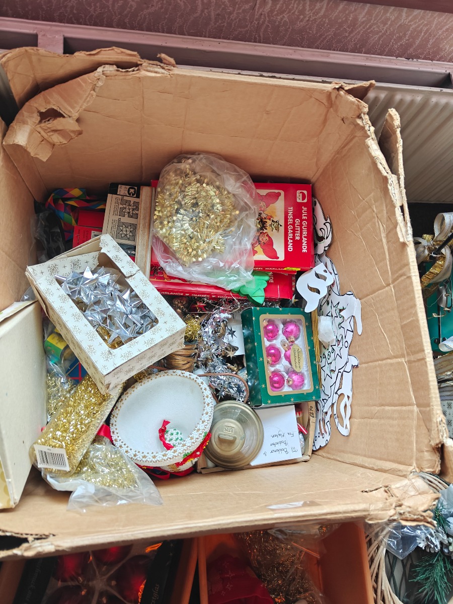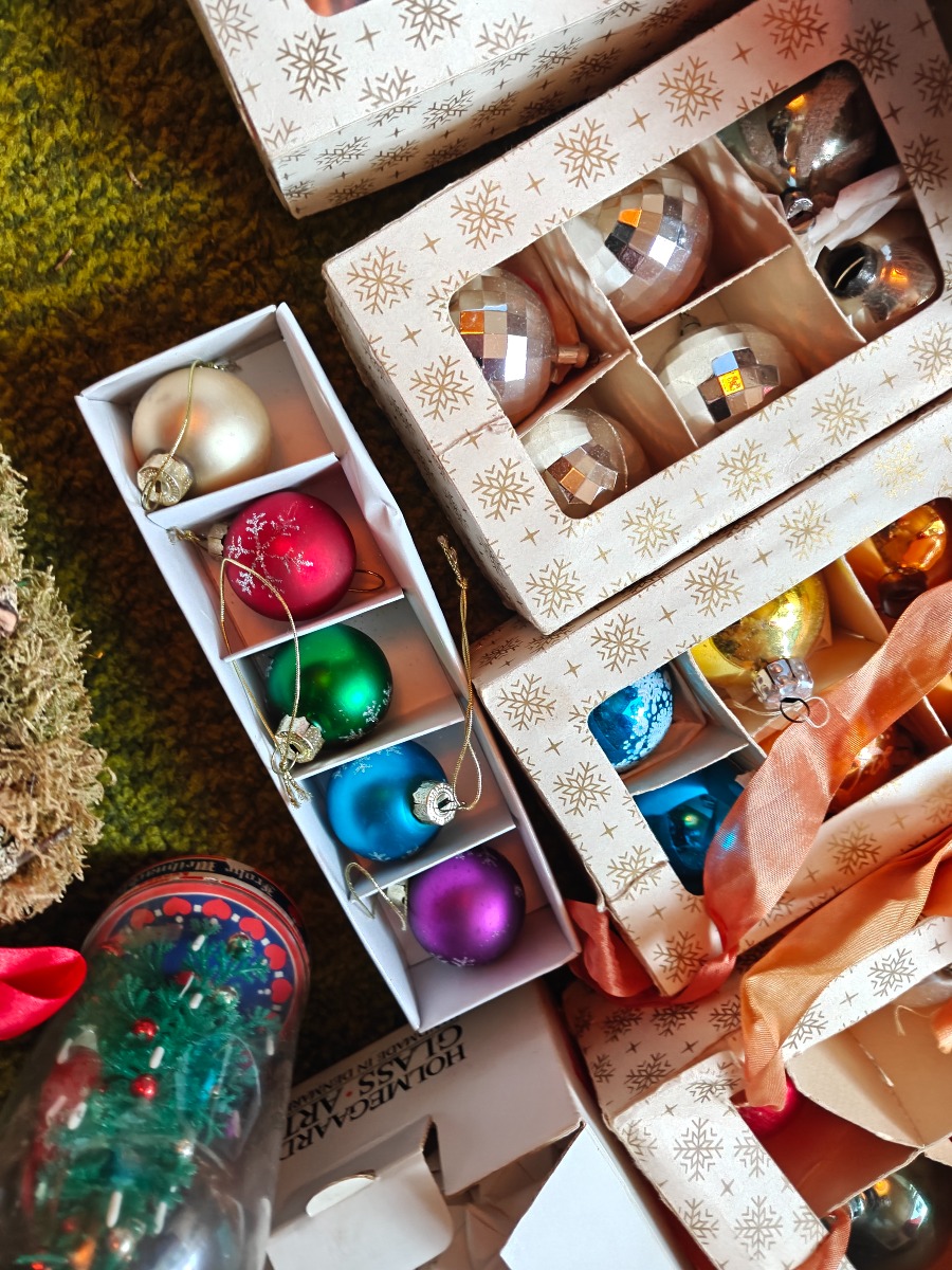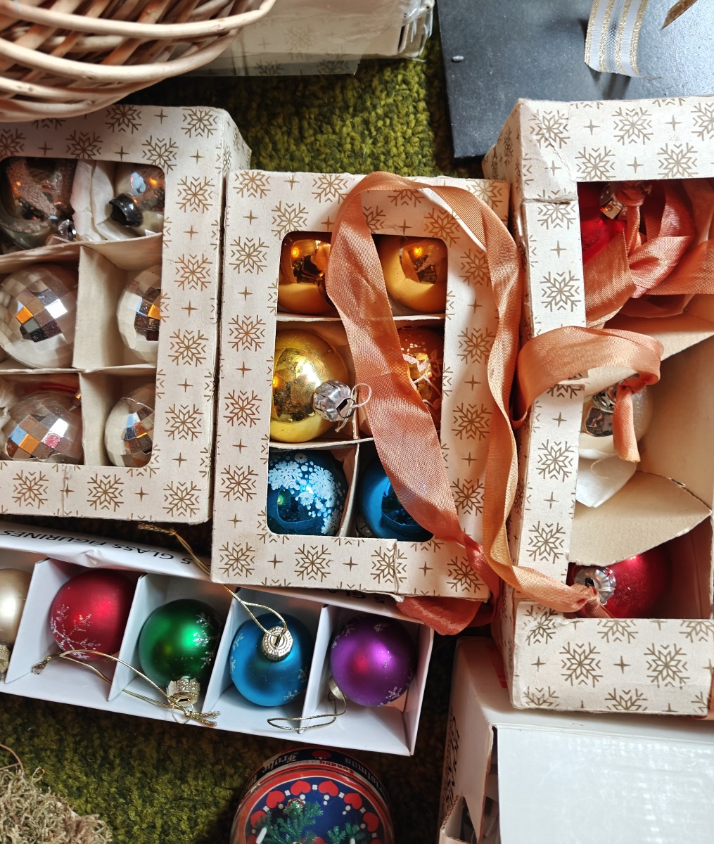Julepynt. En del kugler fra 1950'erne og 60'erne. Figurer fra Dahls Varehus samt meget andet.