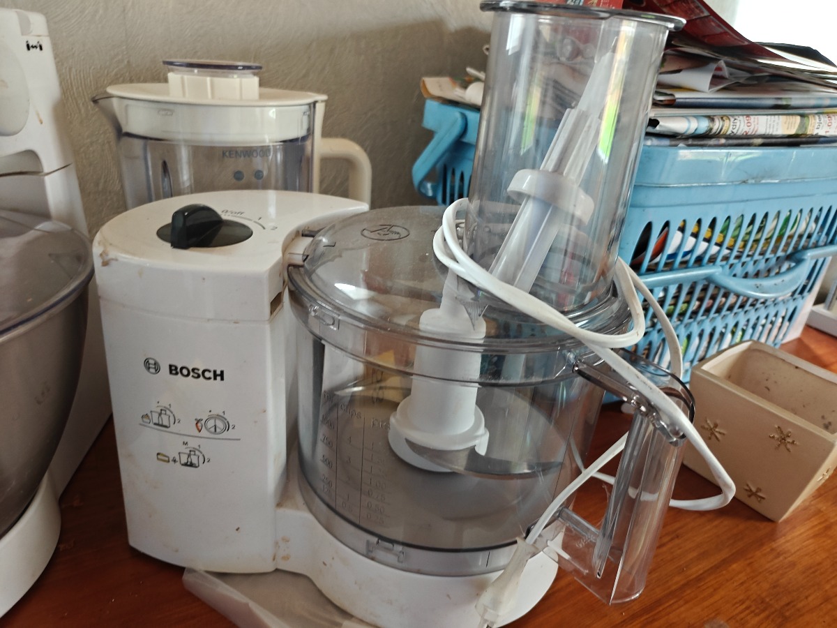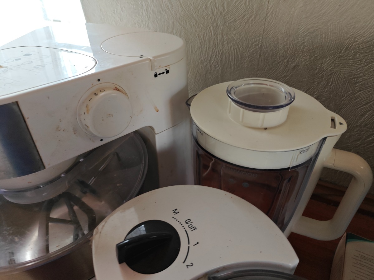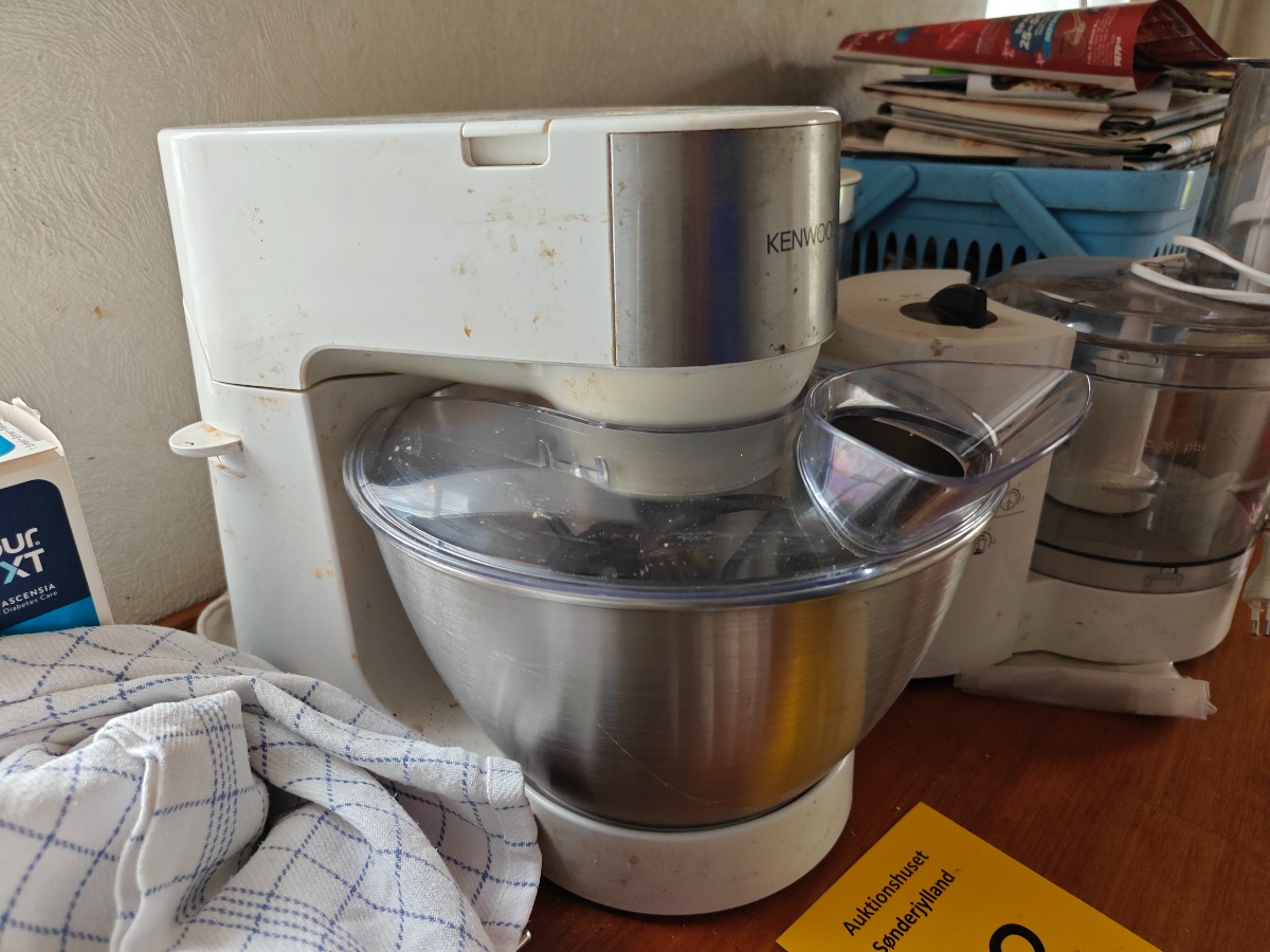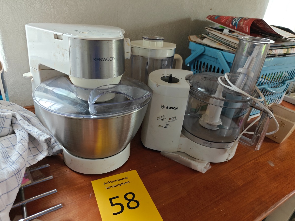 Kenwood røremaskine og Bosch køkkenmaskine. Vi garanterer ikke for eventuelt manglende dele eller funktionalitet.