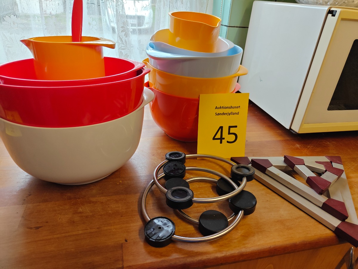 Rosti Margrethe- skåle og kander m.m. Ø. for største 25 cm. 2 sæt bordskånere.