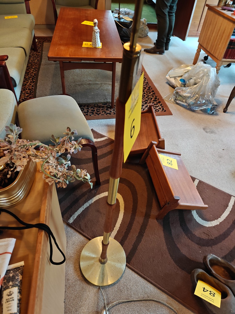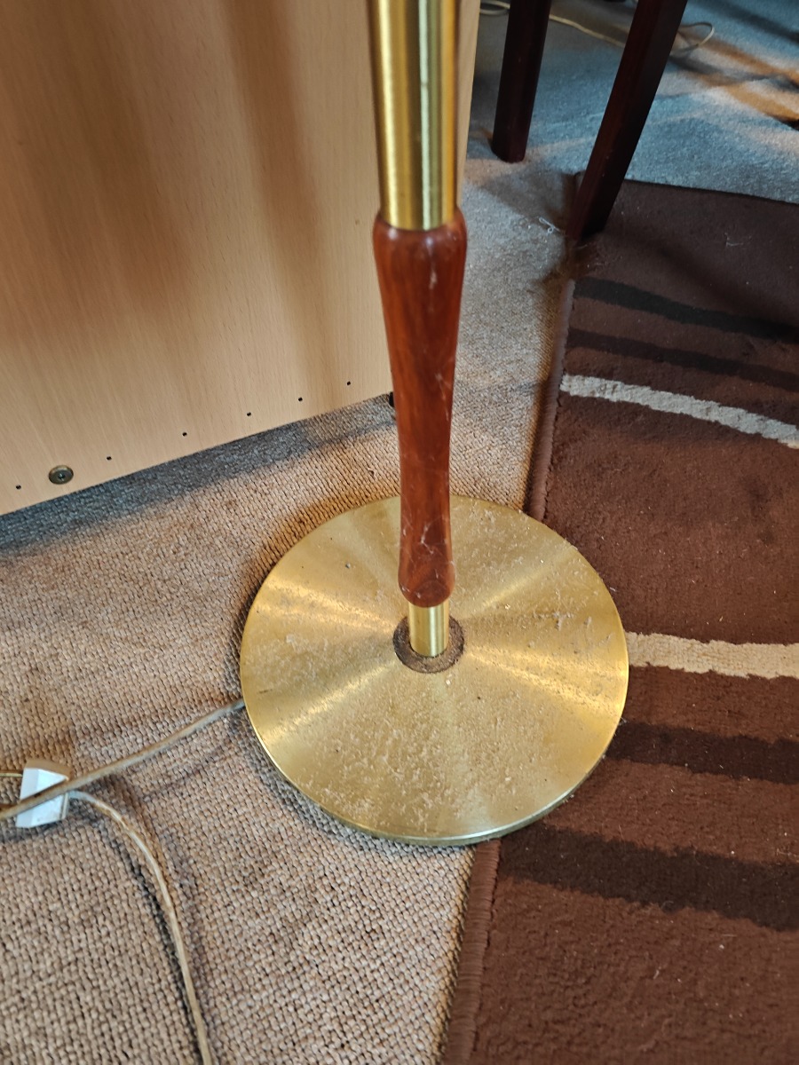 Standerlampe af teak og messing. H. 183 cm.