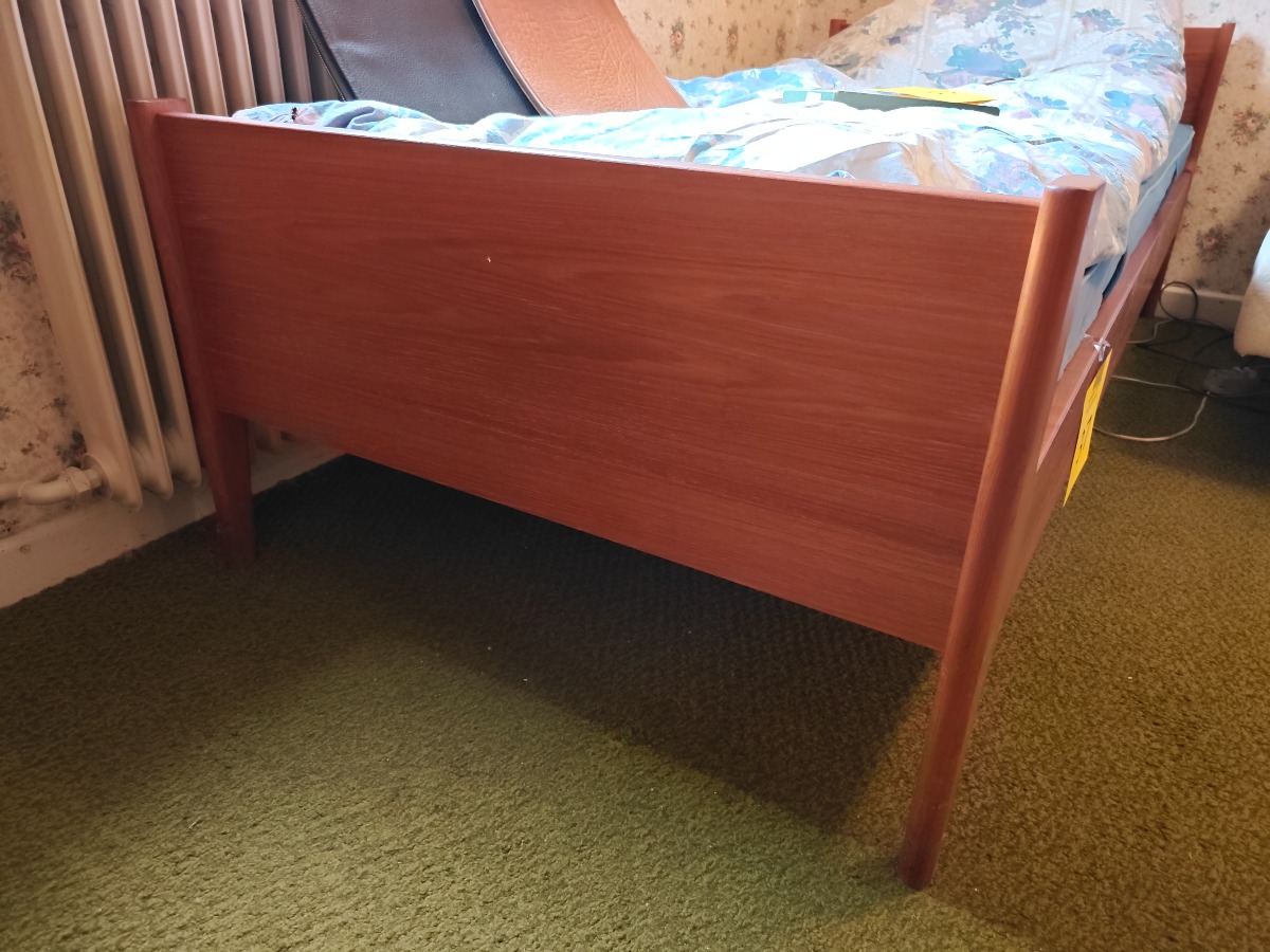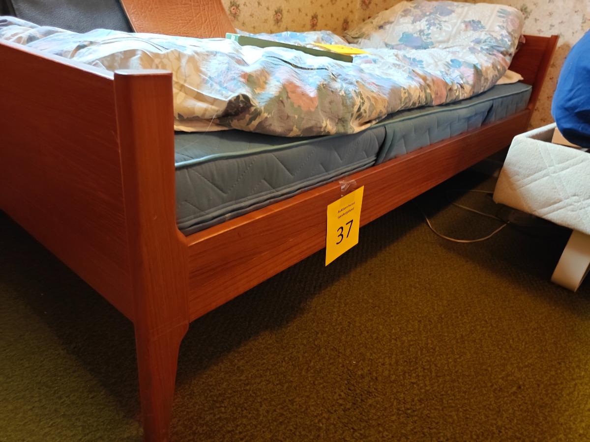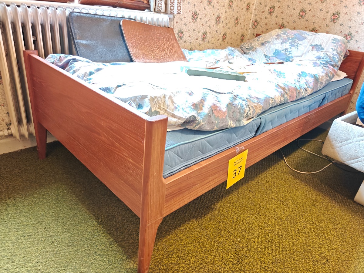 Teak enkeltmandsseng. Madrasmål: 90 x 200 cm. H. 53 cm.