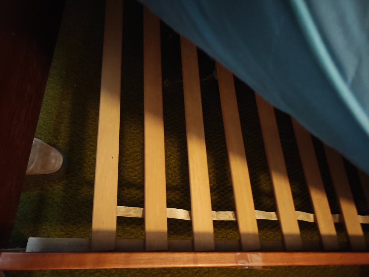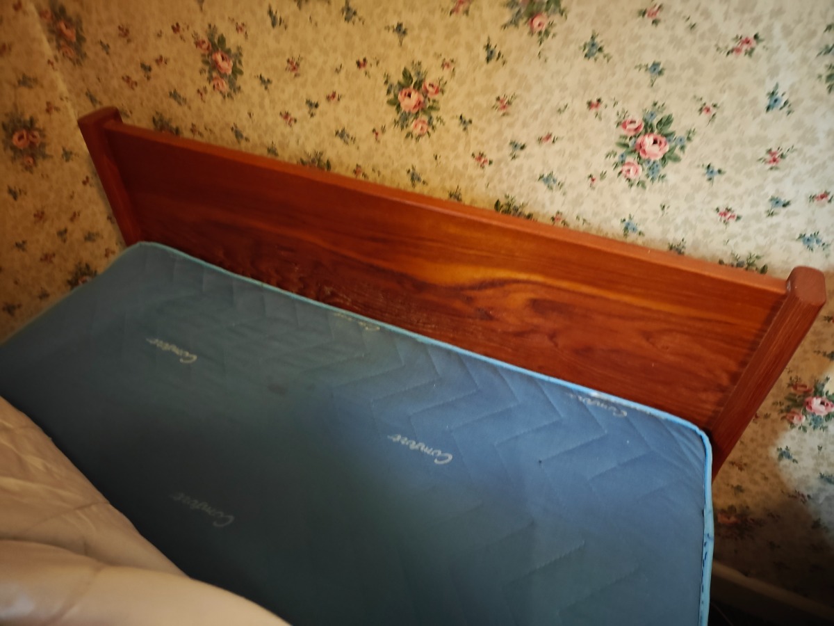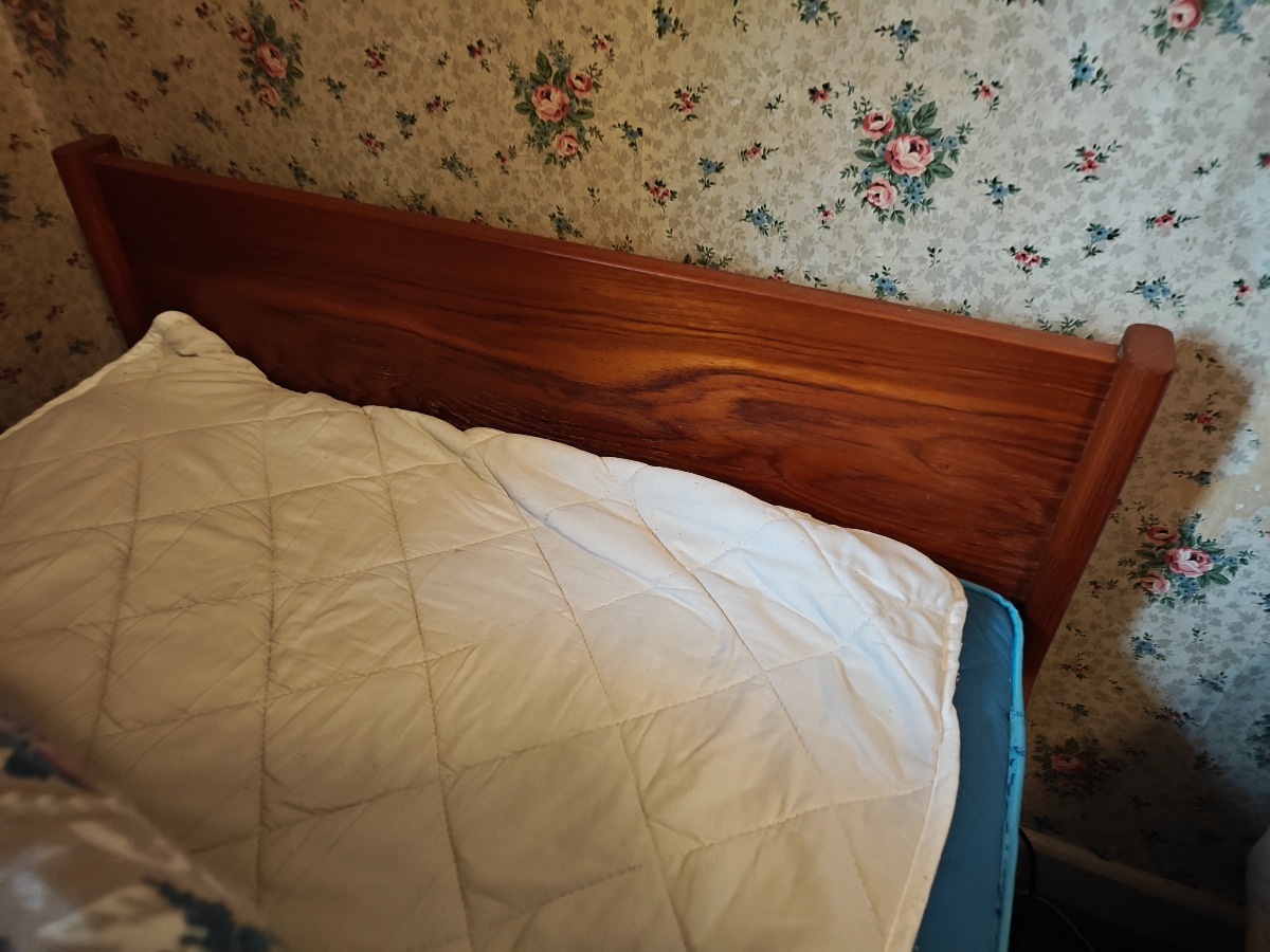 Teak enkeltmandsseng. Madrasmål: 90 x 200 cm. H. 53 cm.