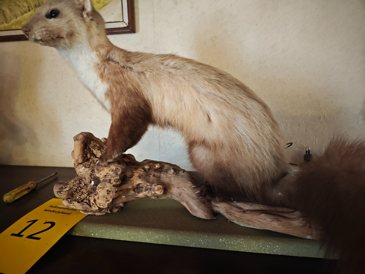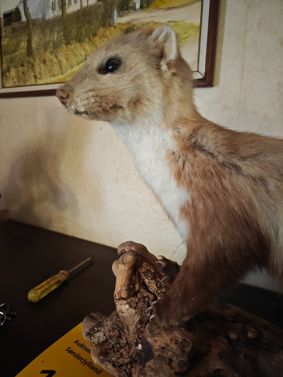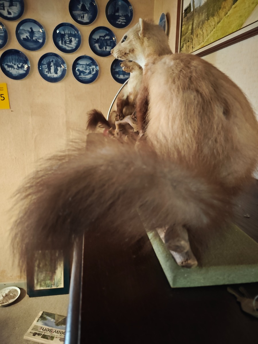 Udstoppet husmår. 42 x 18 x 35 cm. I umiddelbart pæn stand.