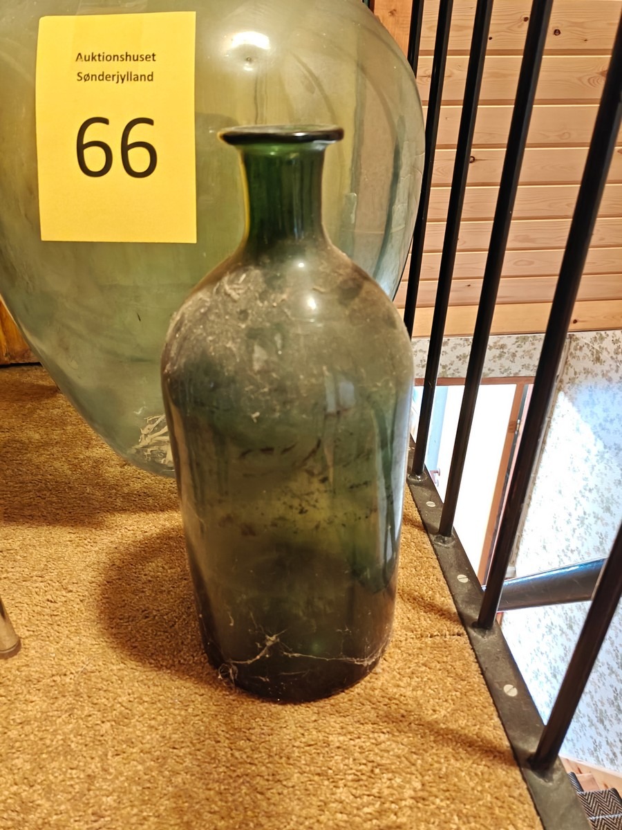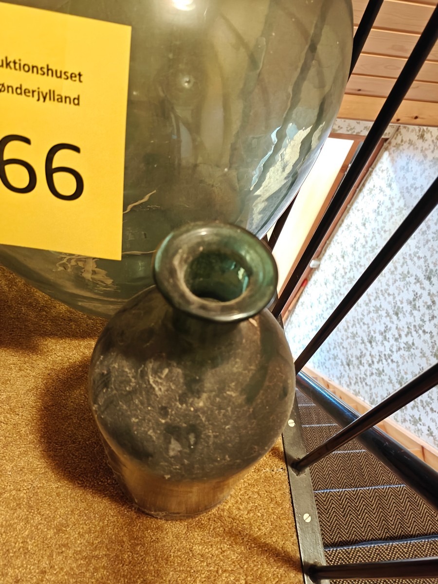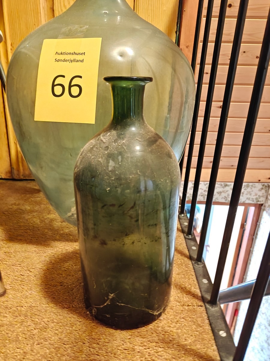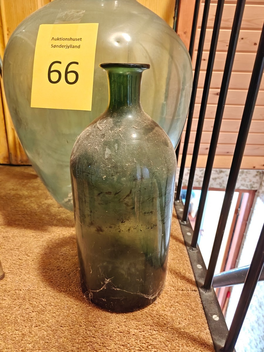 Vinballon samt grøn flaske. H. for flaske ca. 30 cm.