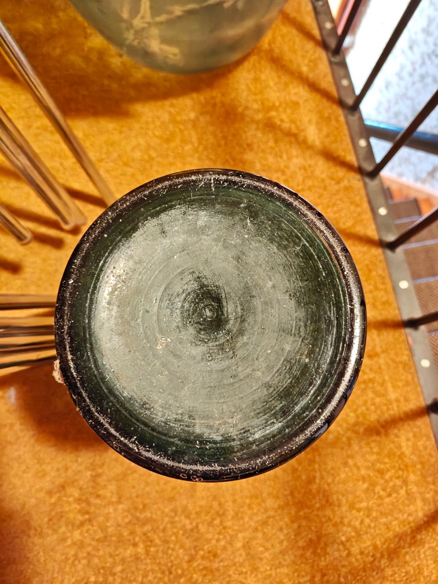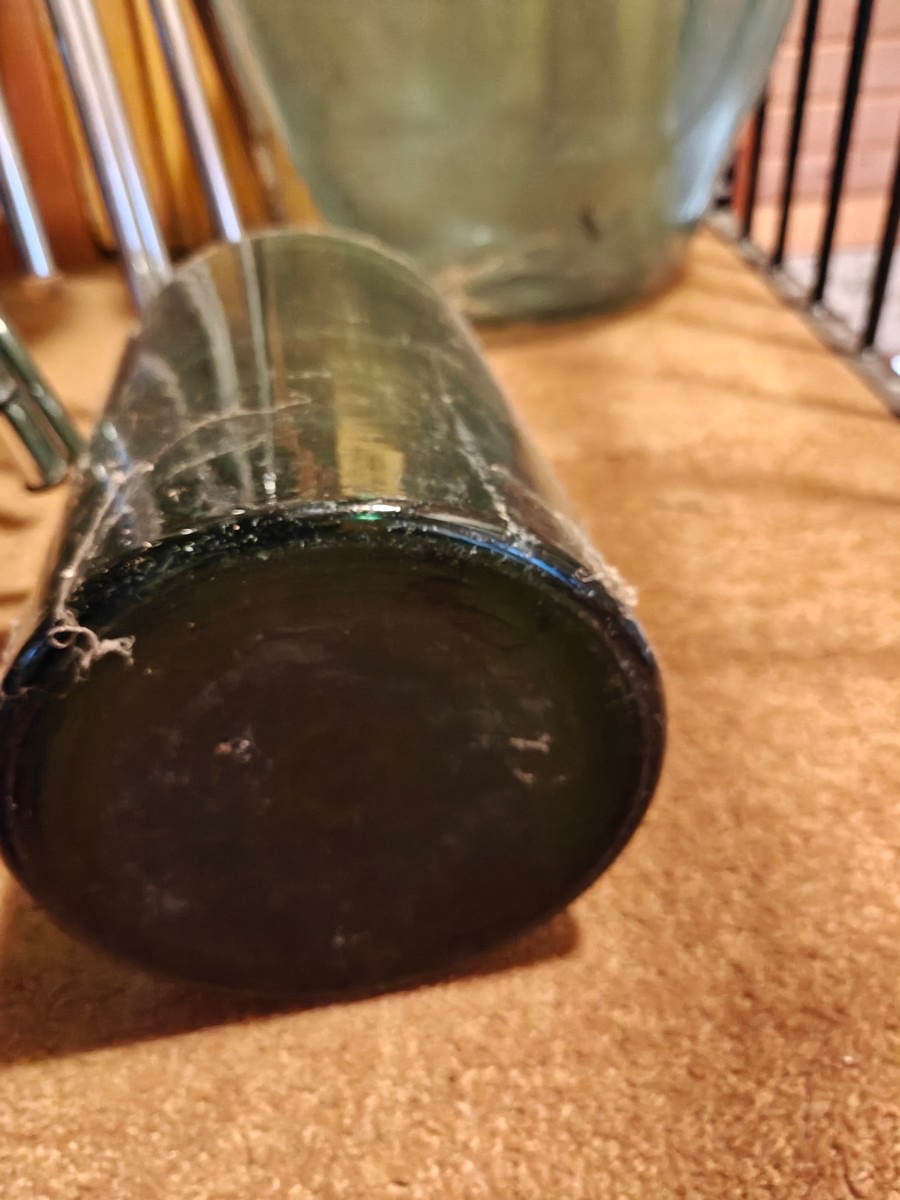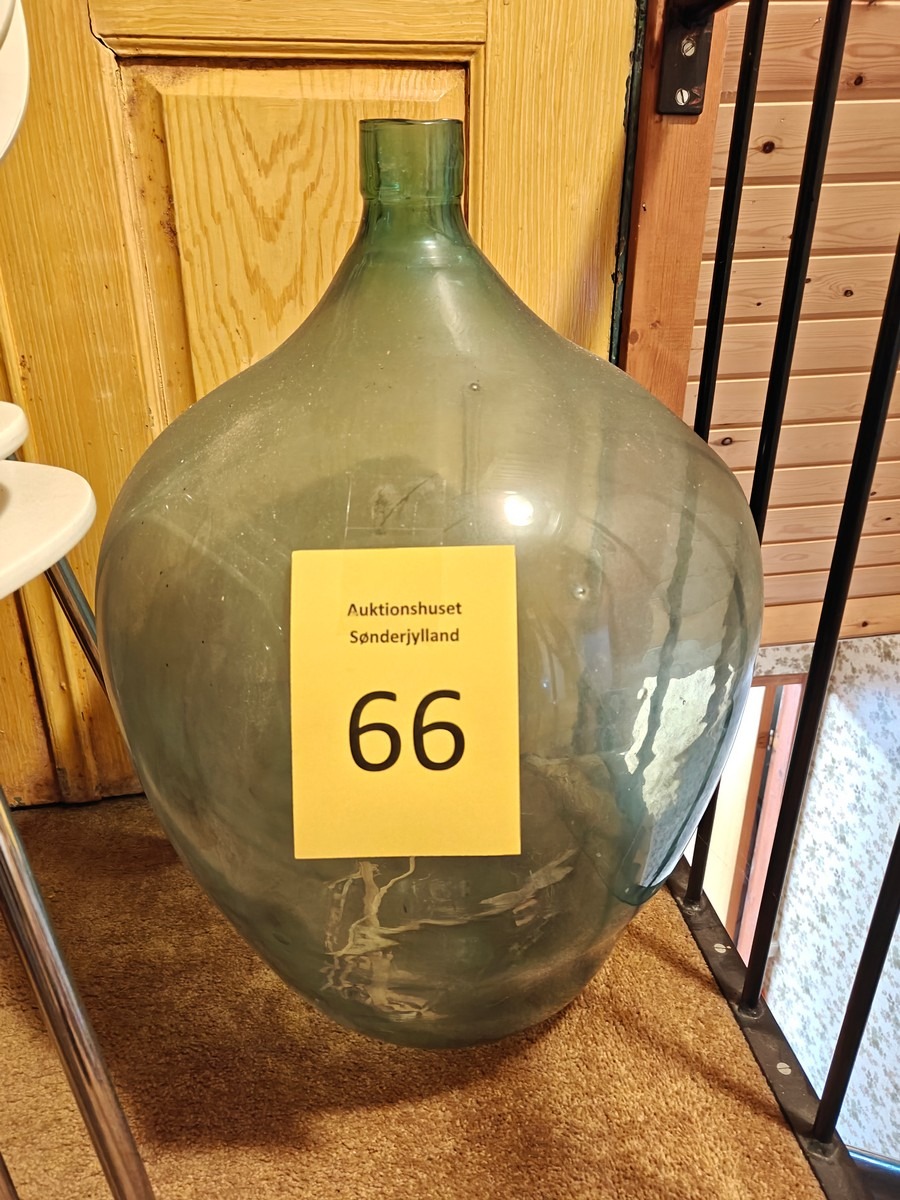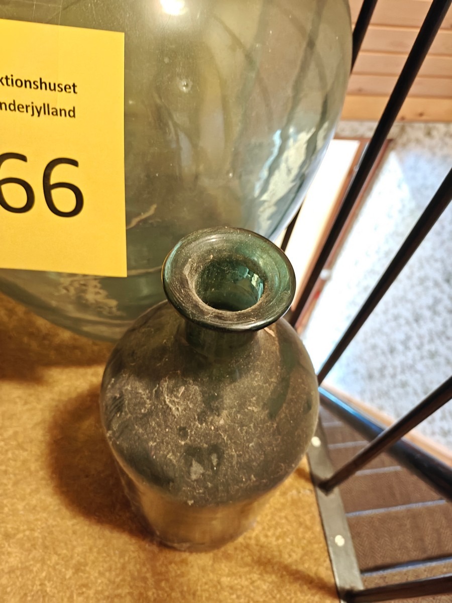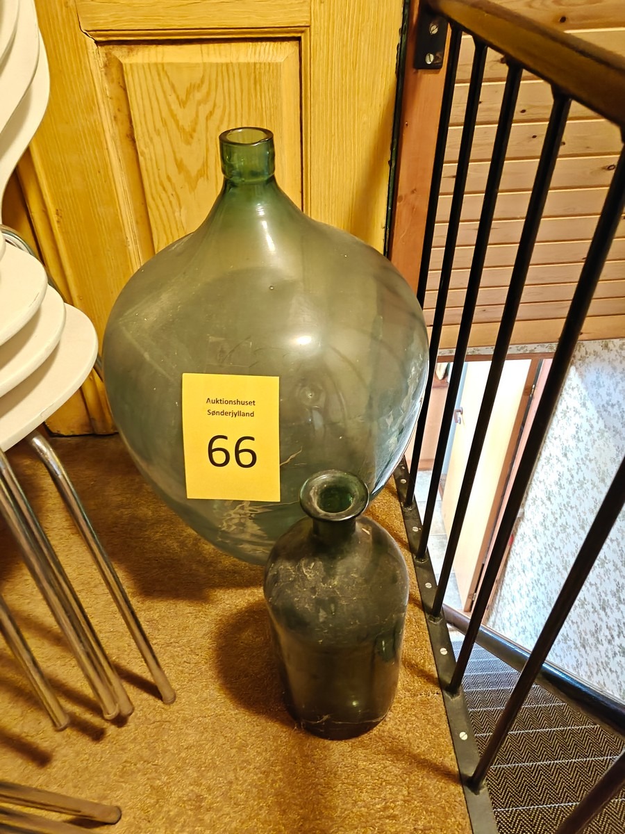 Vinballon samt grøn flaske. H. for flaske ca. 30 cm.