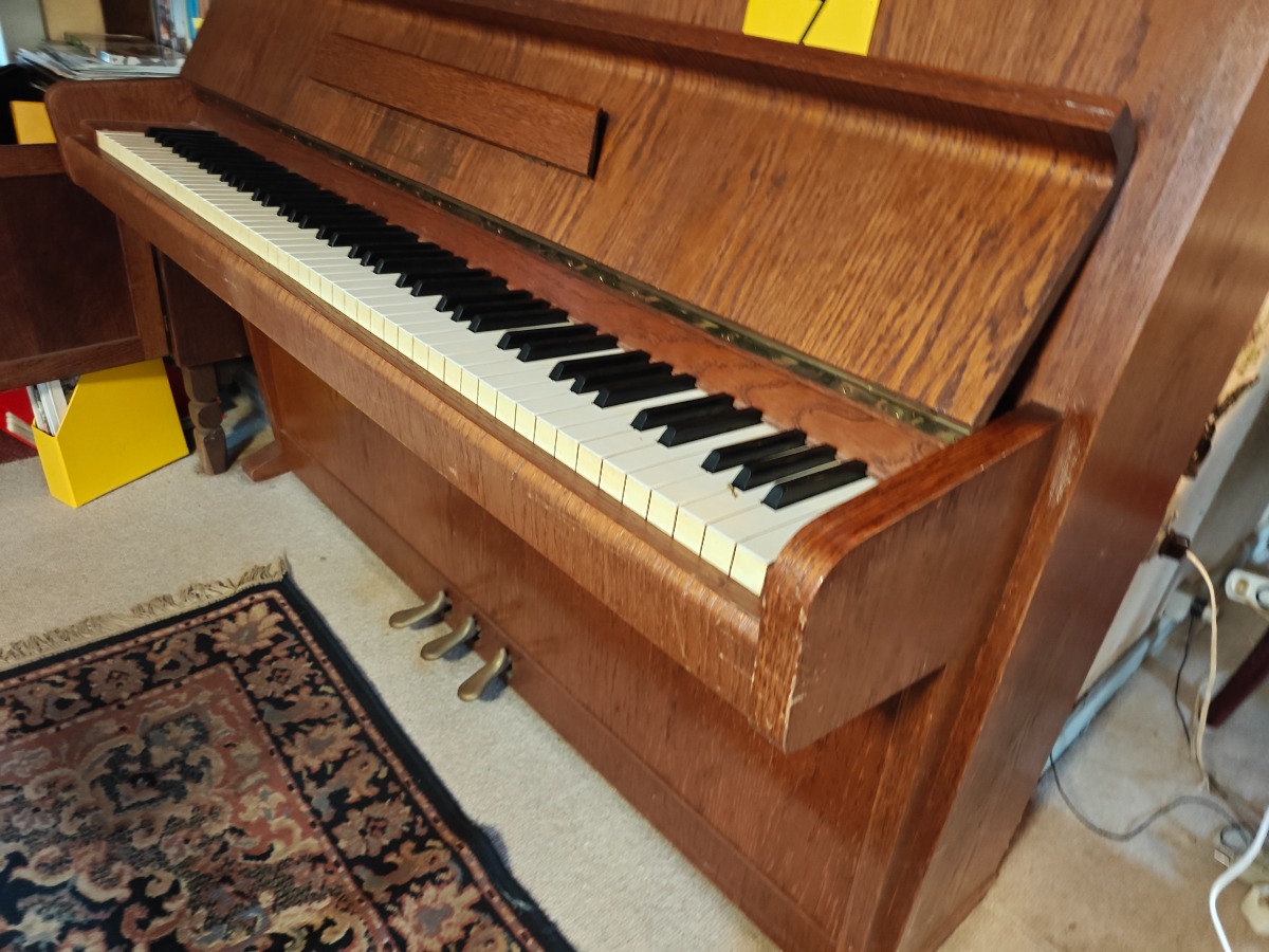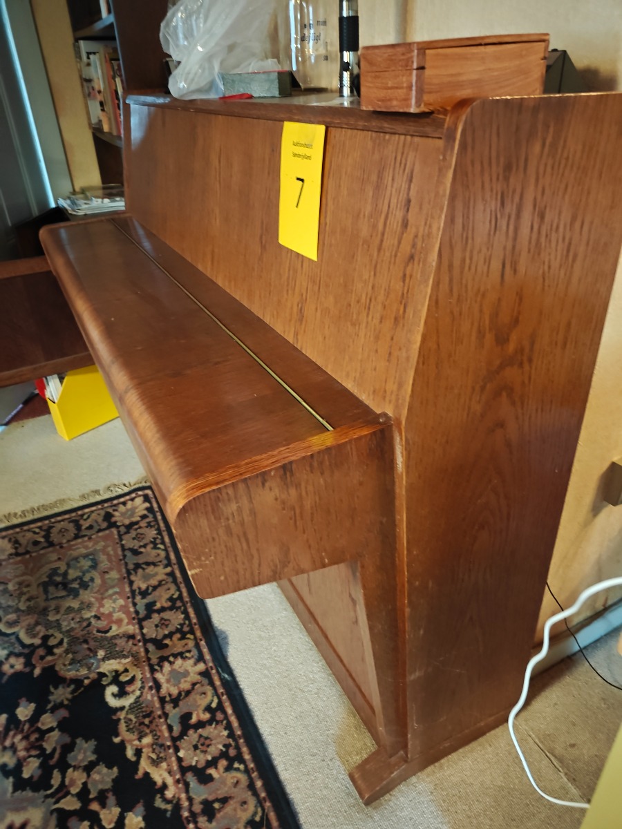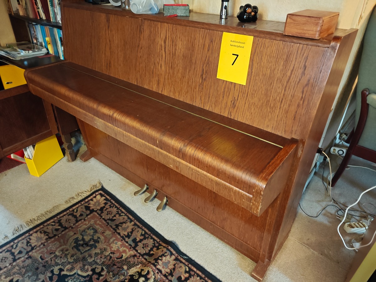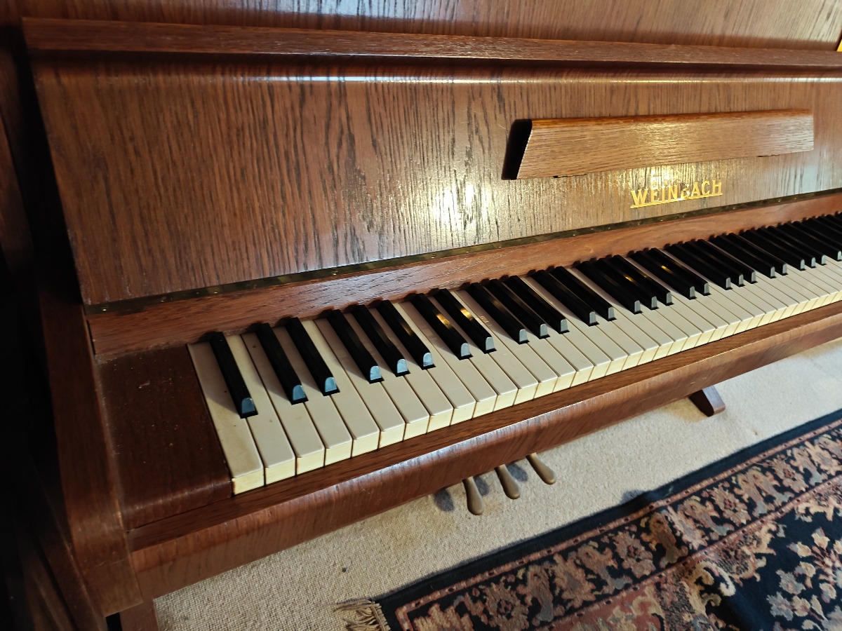 Weinbach klaver med kabinet af mørk eg. 103 x 139 x 50 cm.