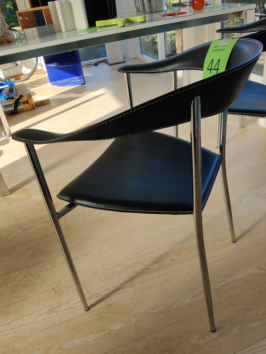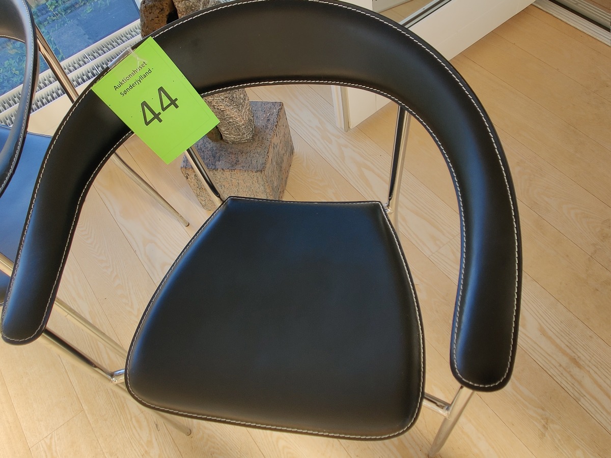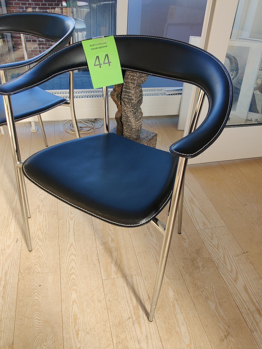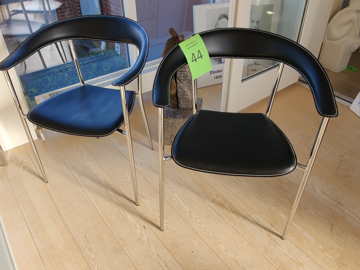 2 stk. armstole med forkromet stålstel og sæde og ryg med sort kernelæder. Fremstår som nye.