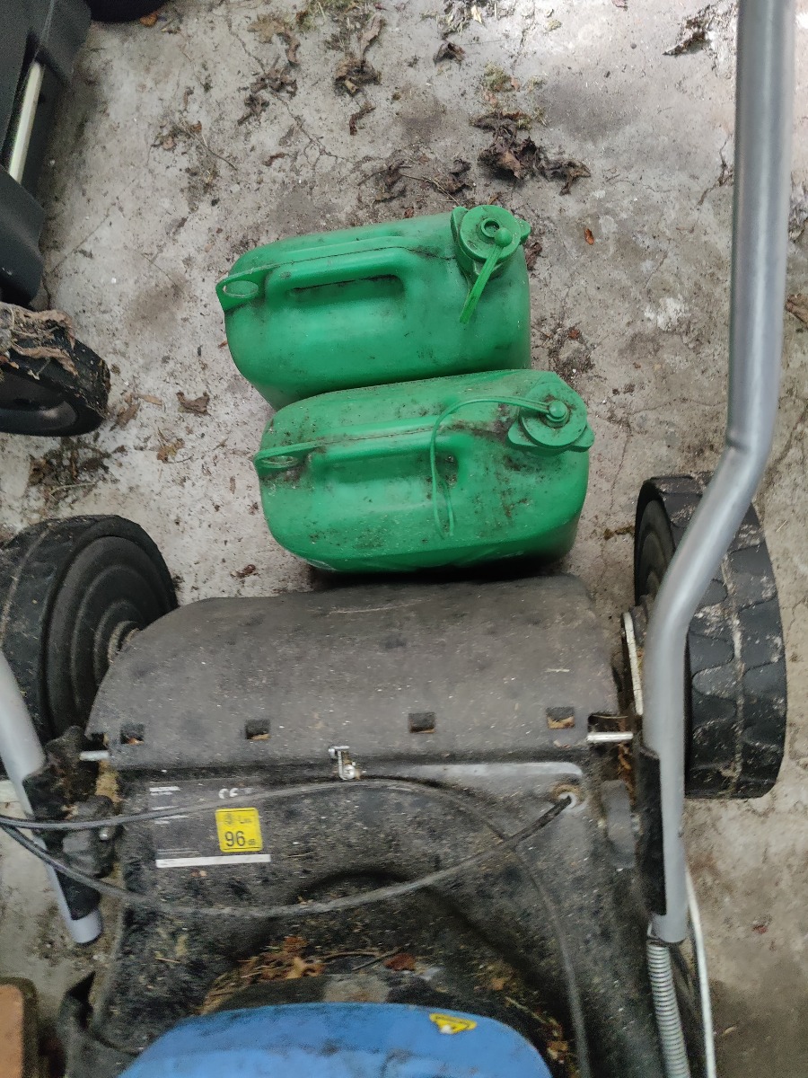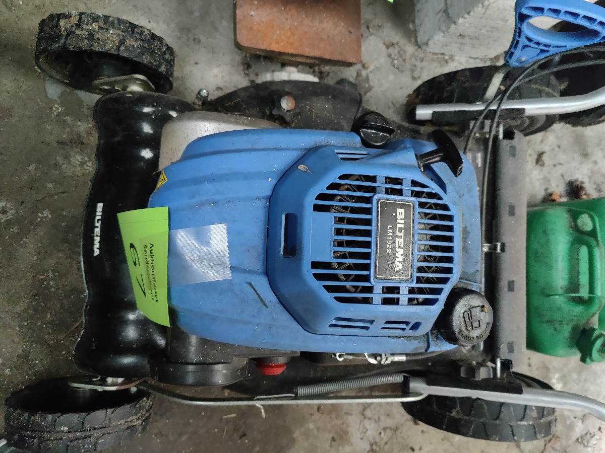 Biltema plæneklipper LM1922 til benzin. Selvkørende. To reservedunke medfølger.