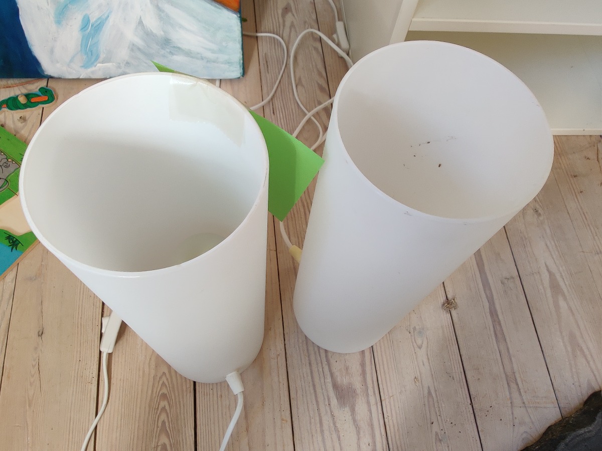Bordlamper, model Eglo. Hvidt opalglas. Ca. 35 cm i højden. Med alm. bruggspor og i ok stand.