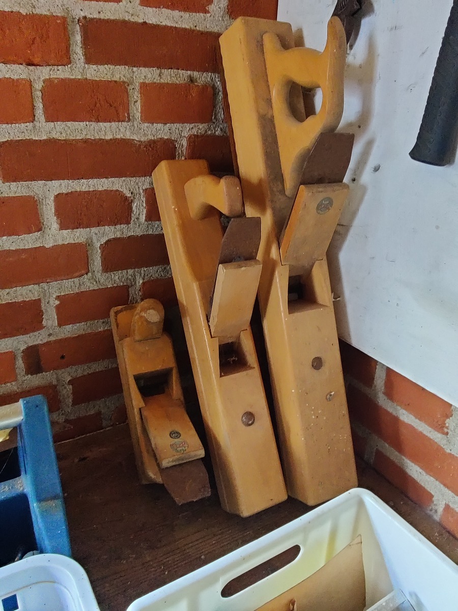 Diverse værktøj til husholdningen. Deriblandt 3 langhøvle.