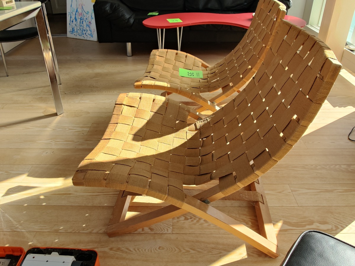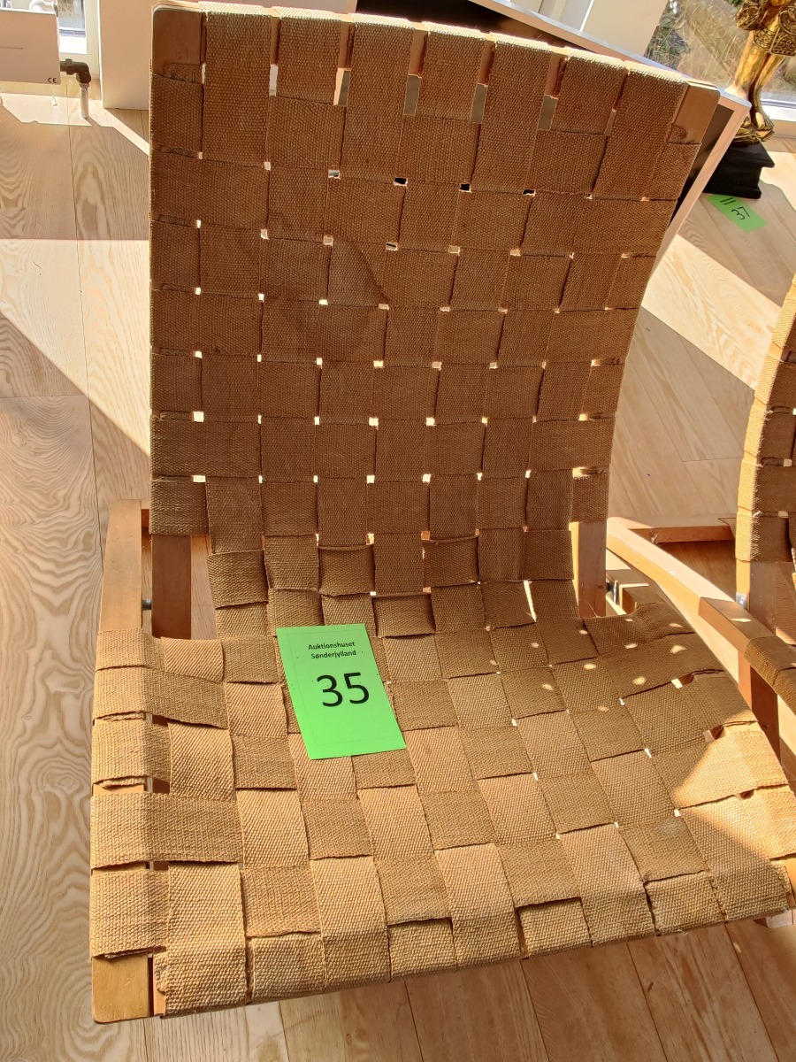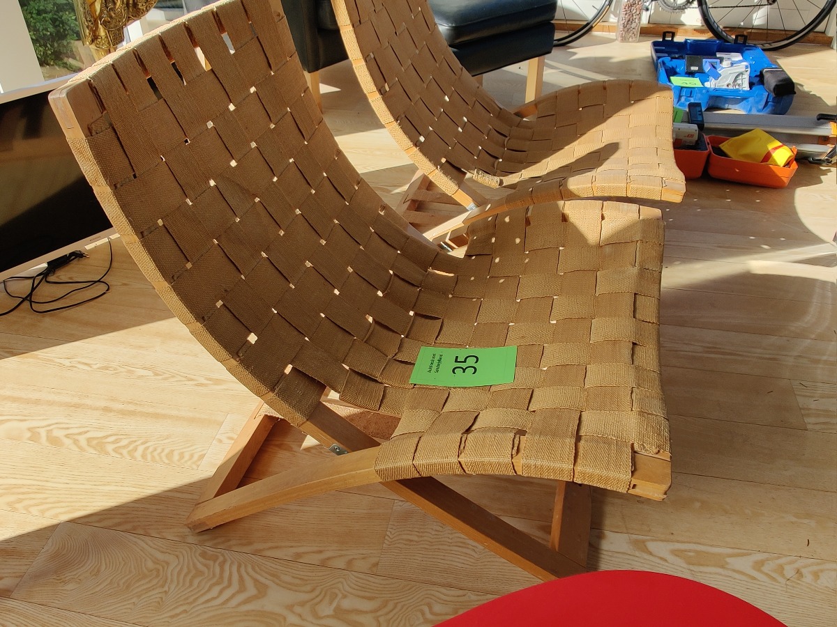 2 stk. Ingmar Relling foldestole med stel af bøg, monteret med gjorde. Fremstår med brugsspor.