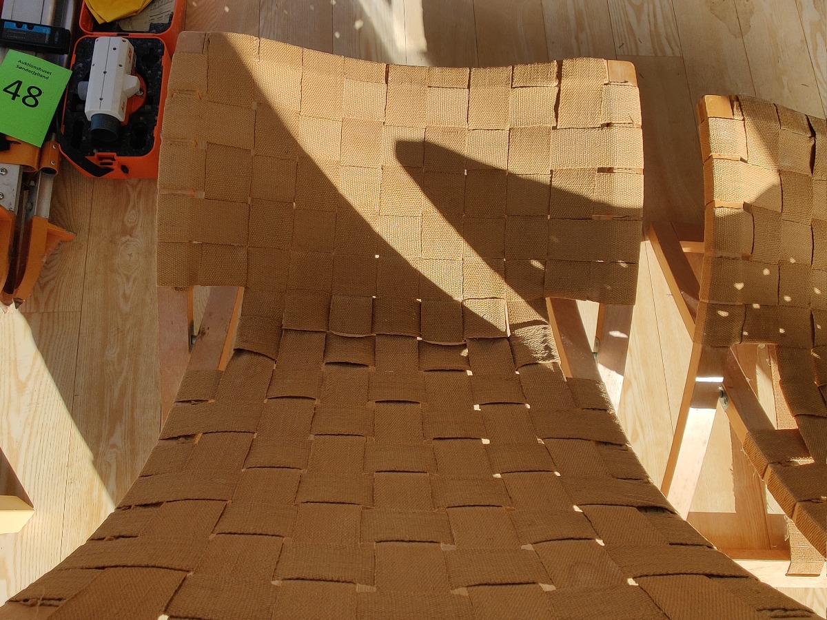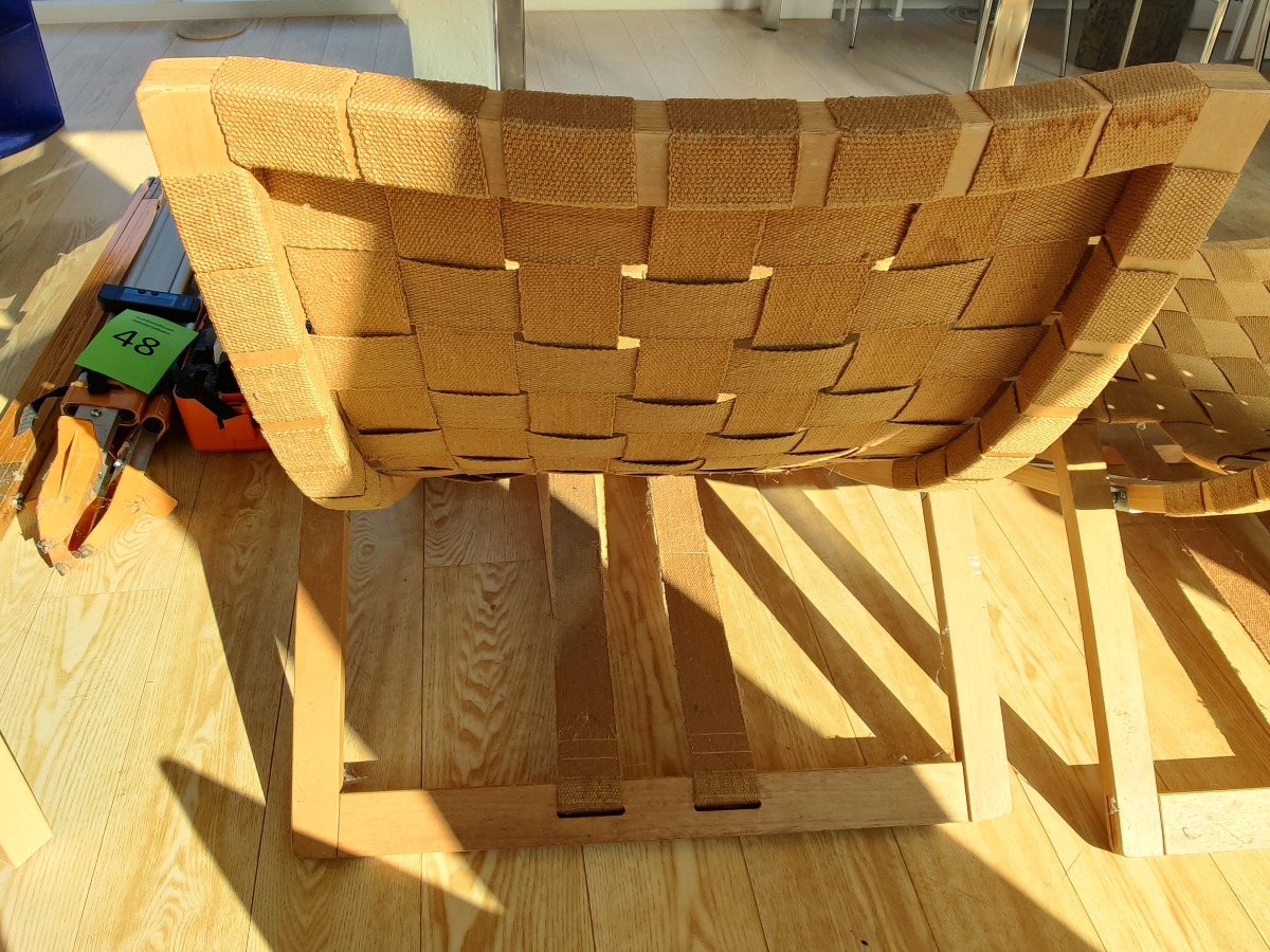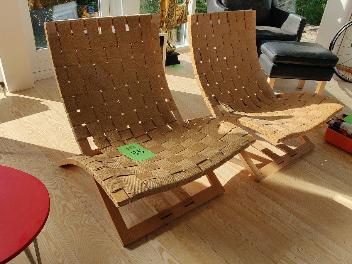 2 stk. Ingmar Relling foldestole med stel af bøg, monteret med gjorde. Fremstår med brugsspor.