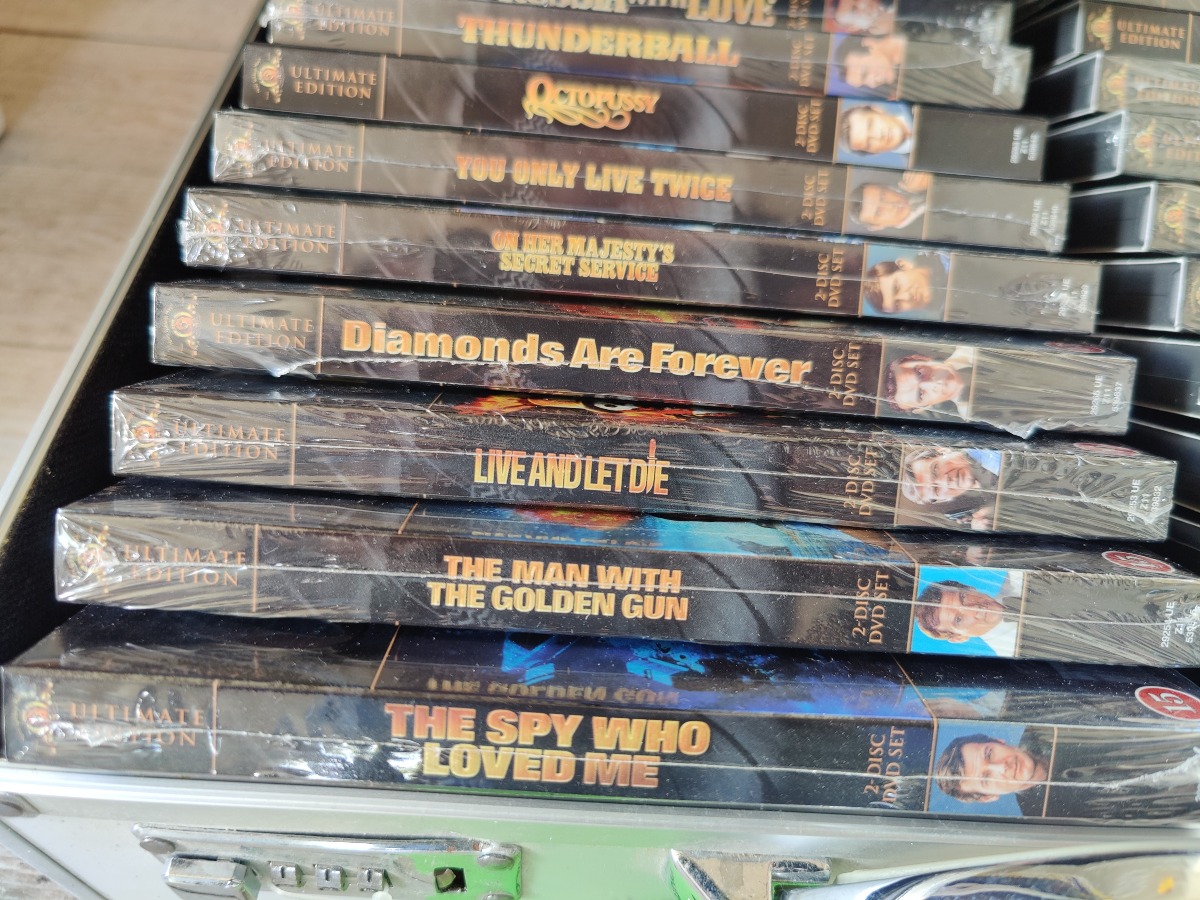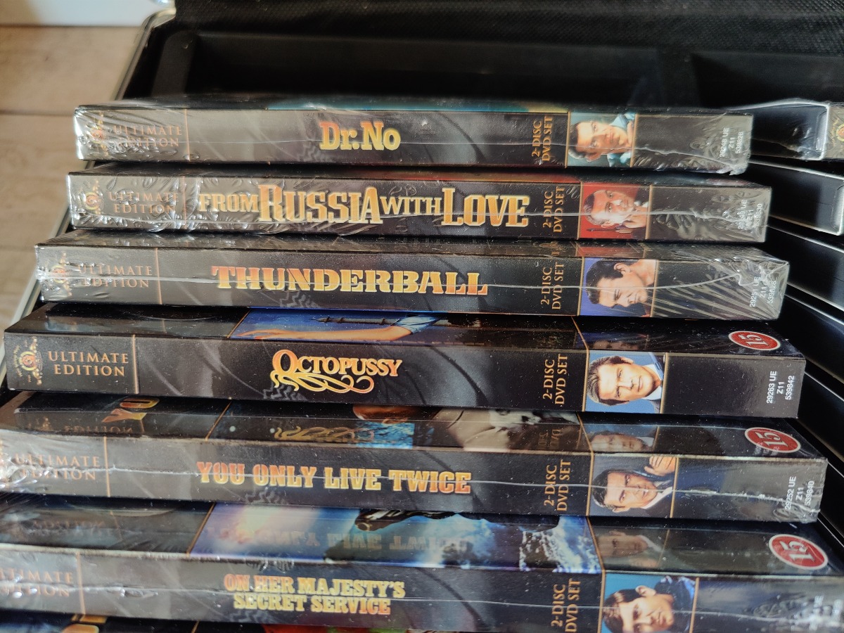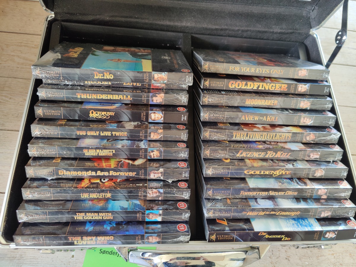 James Bond Ultimate Edition DVD-samling. Alu flight case med 20 stk. DVD. Alle undtagen en uåbnede.