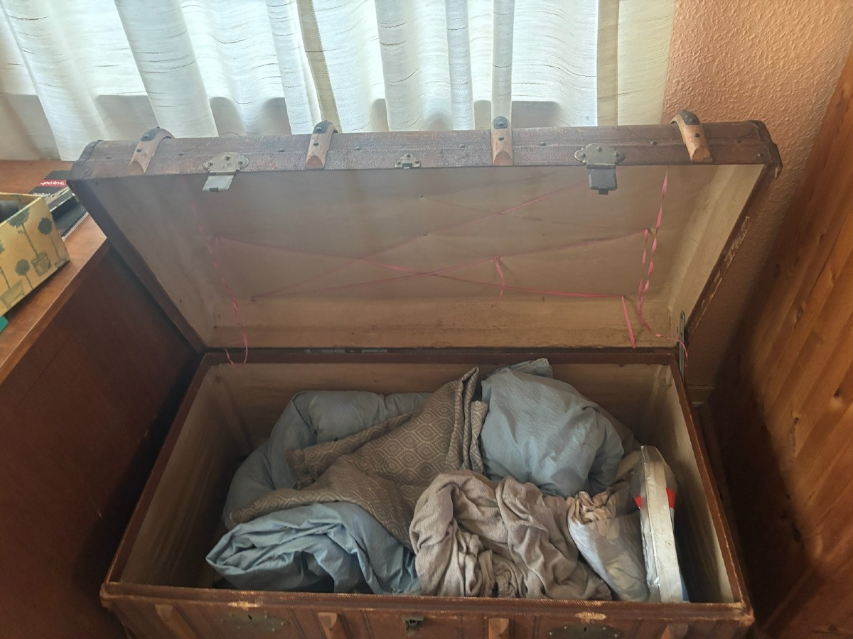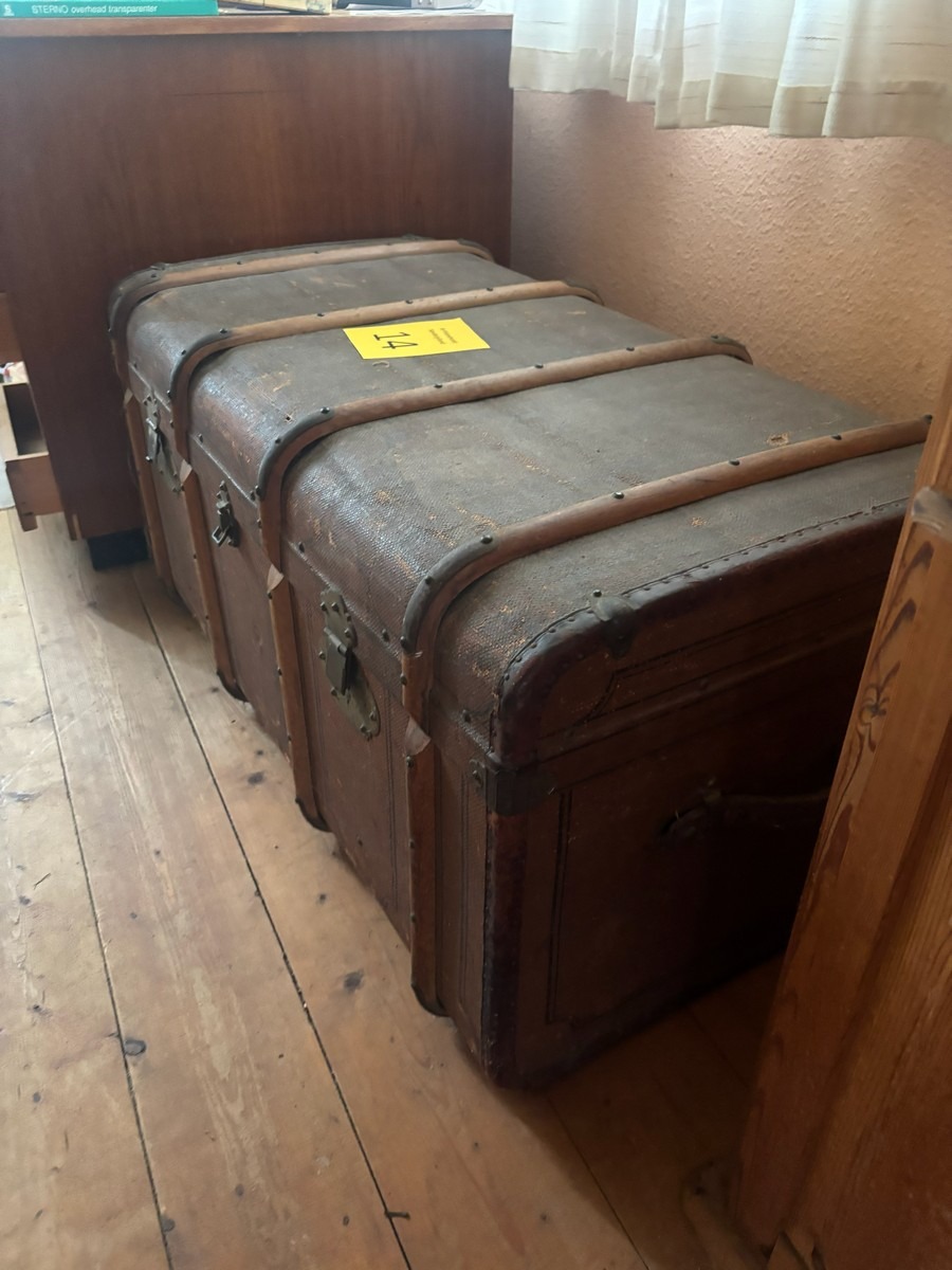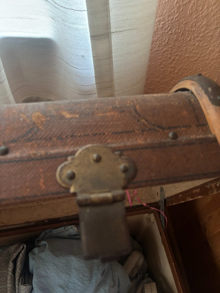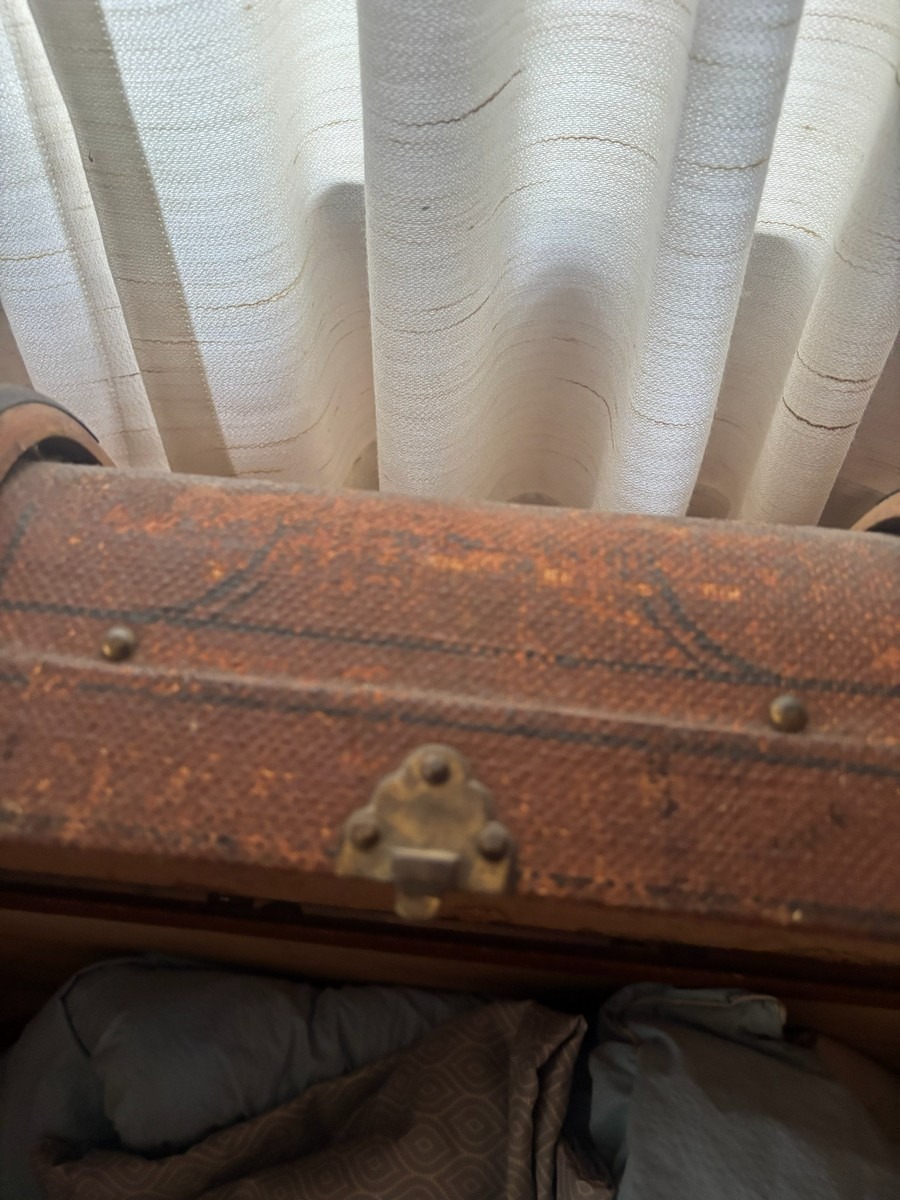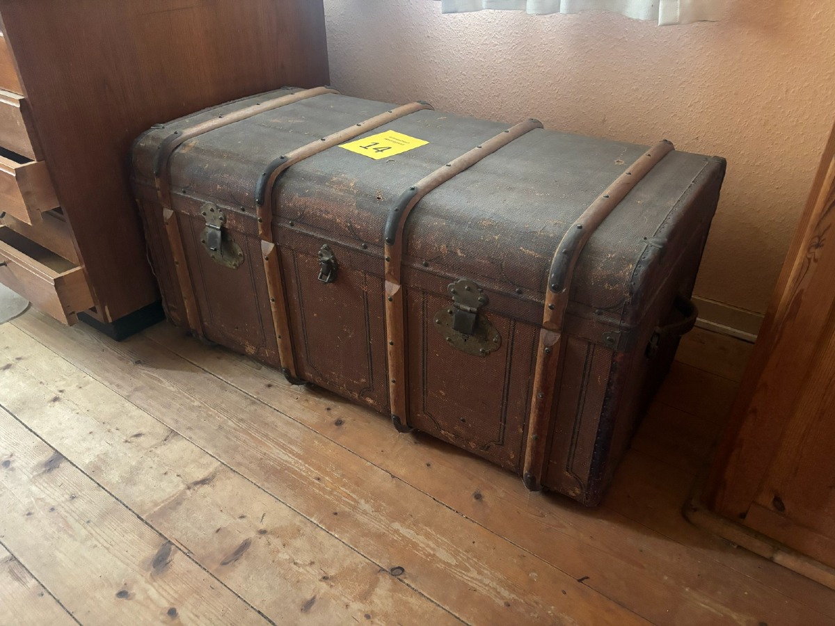 Rejsekuffert. Lærredsbeklædt og med bånd af eg. 55 x 100 55 cm.