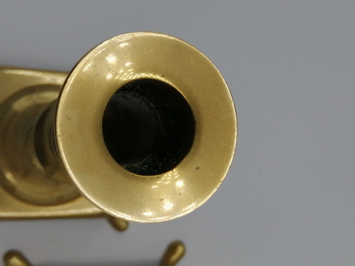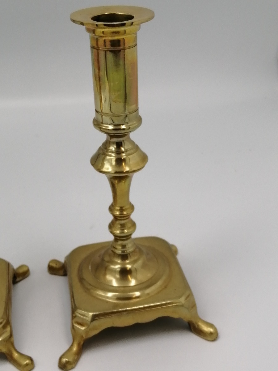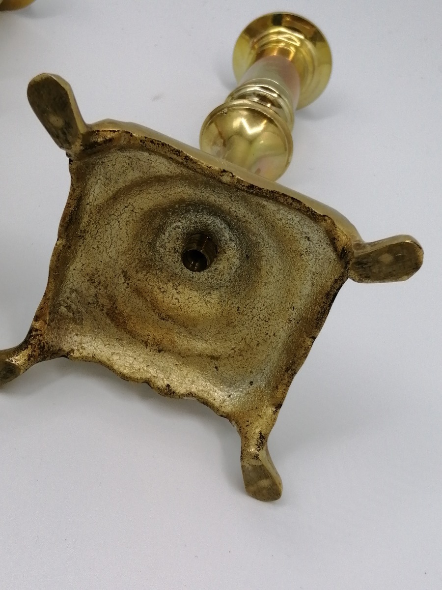 Messing lysestager, 2 stk antikke H. 18 cm. Brugt med brugsspor. Fra dødsbo