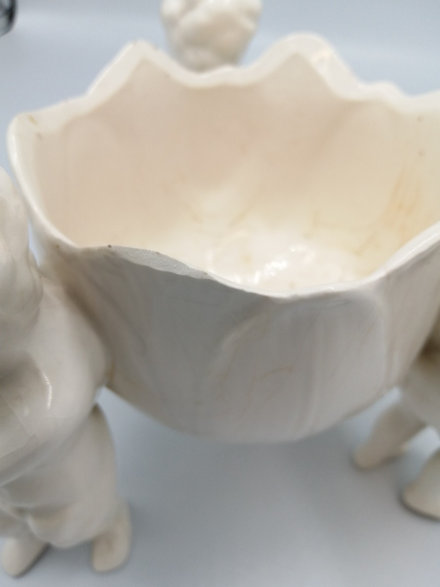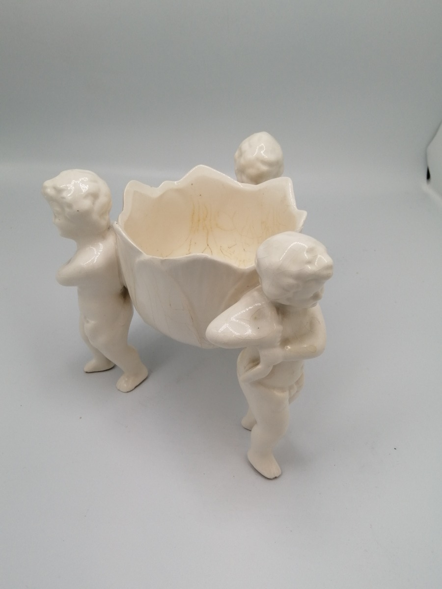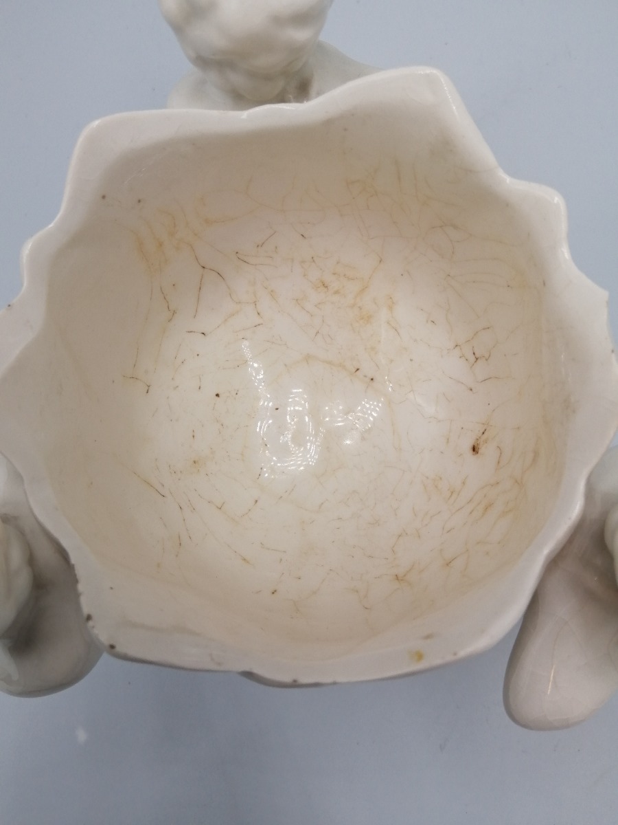 Antik skål med figurer (In the manner of Minton Group, Blanc de chine. 19erne. skadet og krakeleret. Brugt med brugsspor. Fra dødsbo