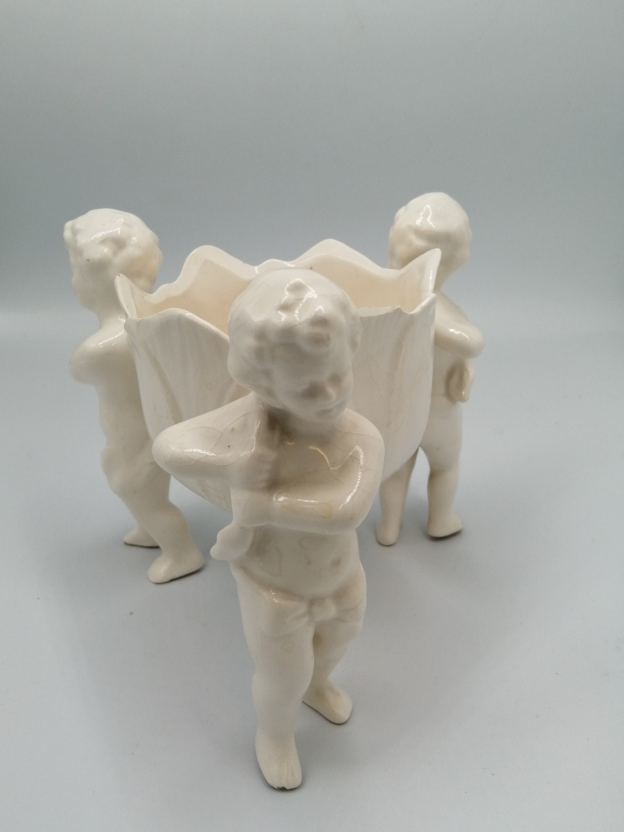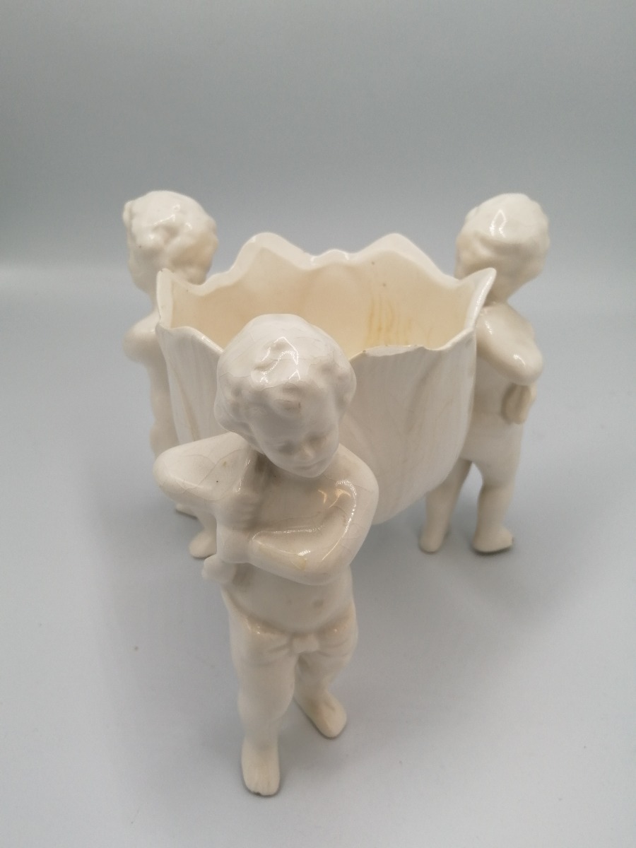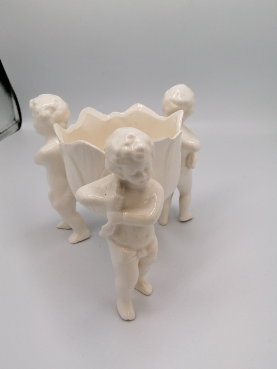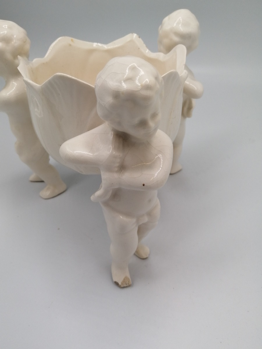Antik skål med figurer (In the manner of Minton Group, Blanc de chine. 19erne. skadet og krakeleret. Brugt med brugsspor. Fra dødsbo