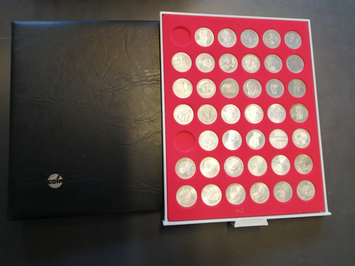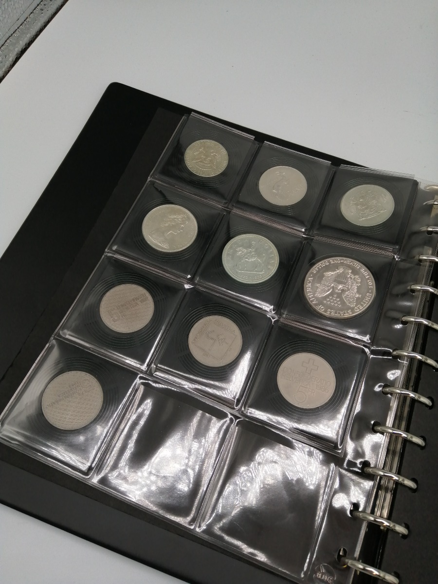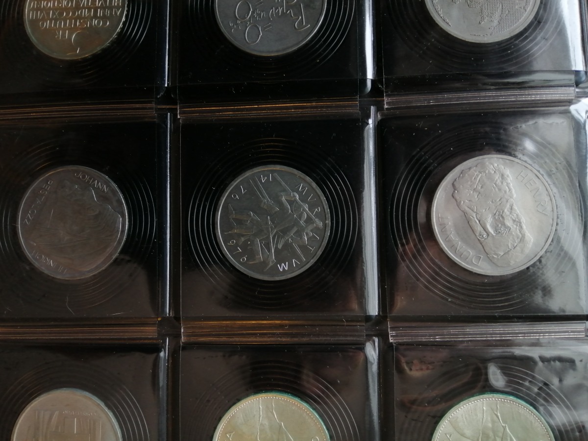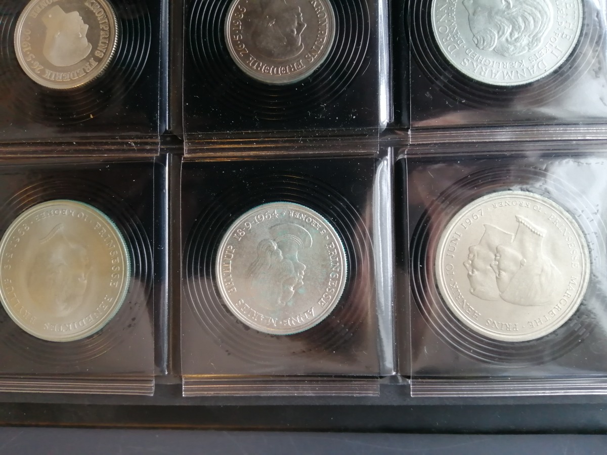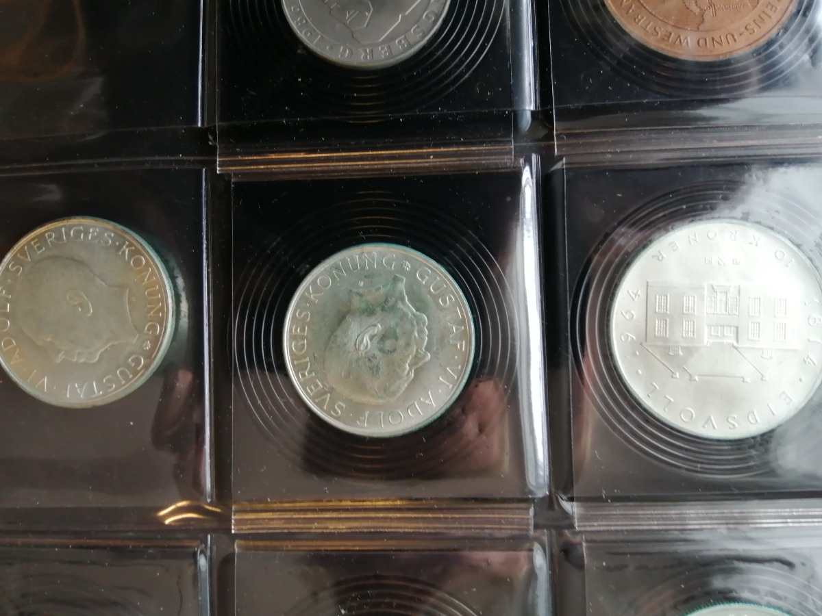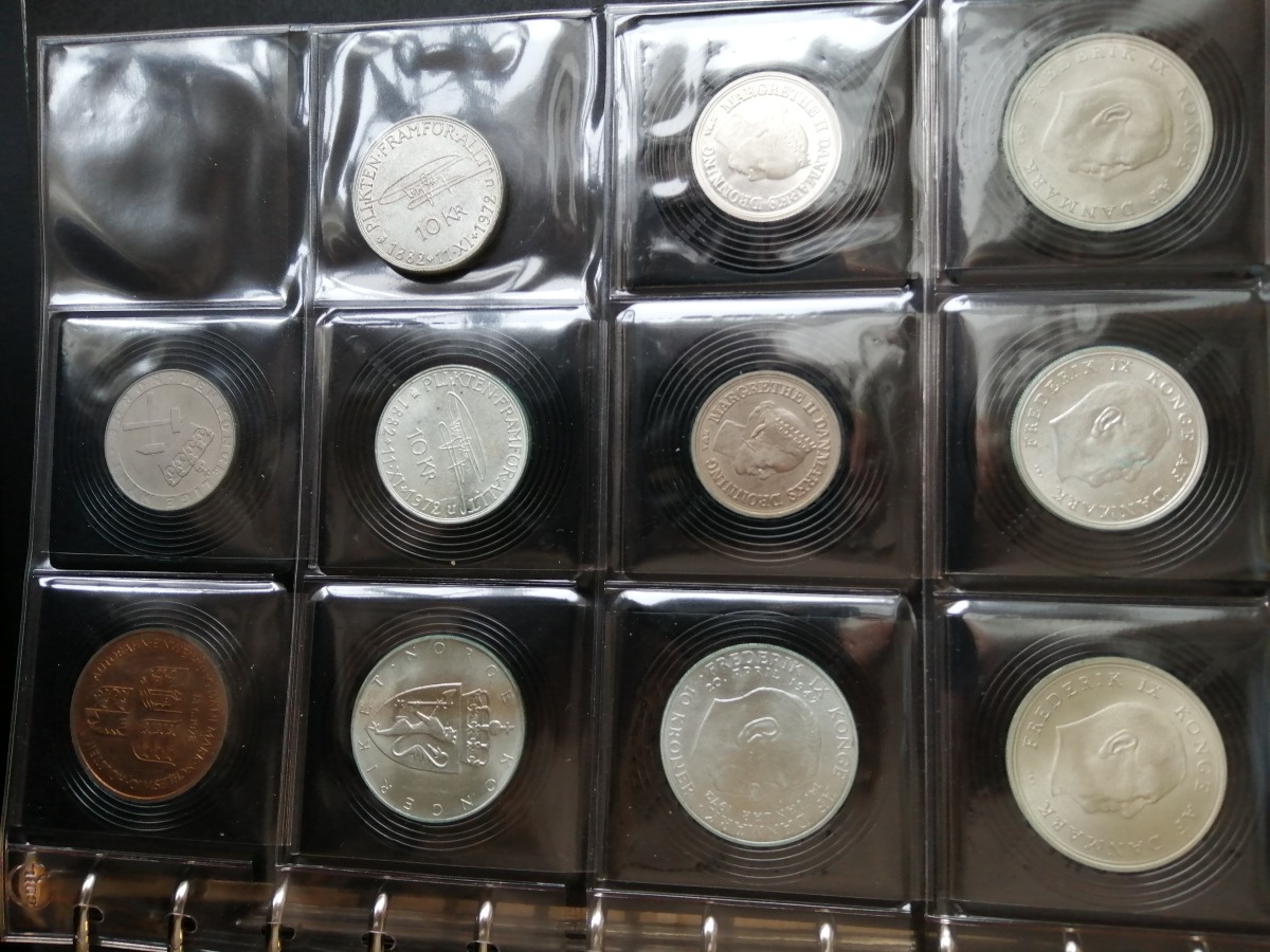 Mønt samling, ramme (925g) og mappe sterling sølv (68g). Brugt med brugsspor. Fra dødsbo