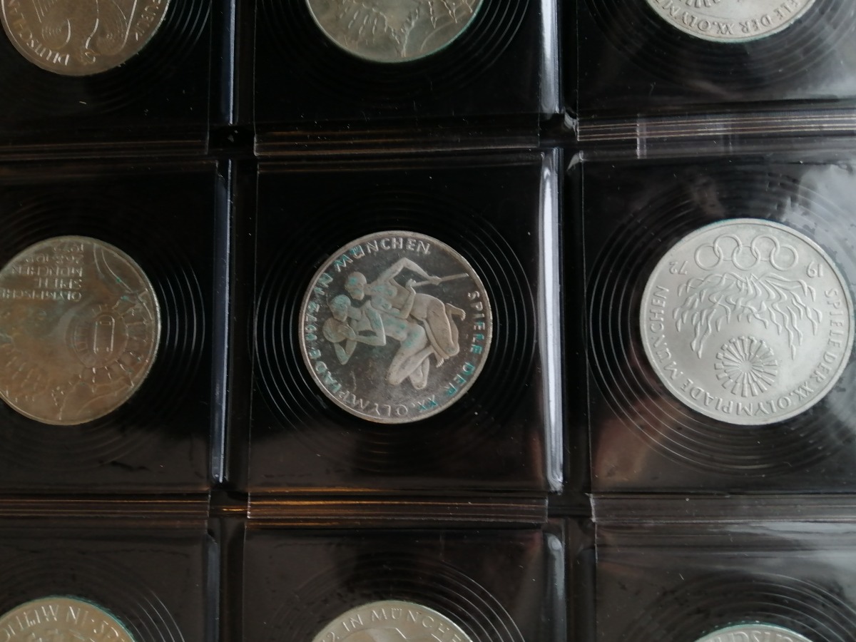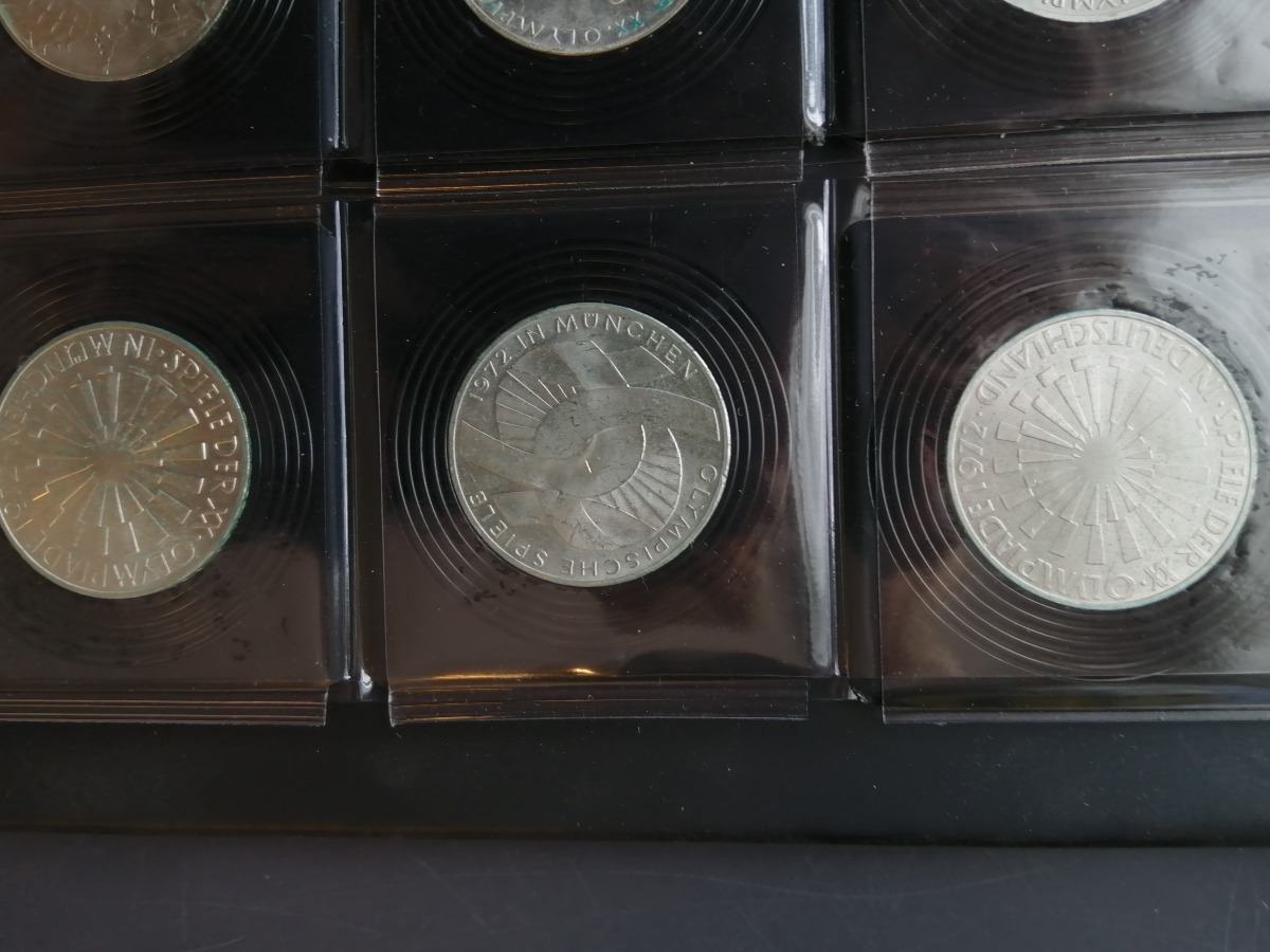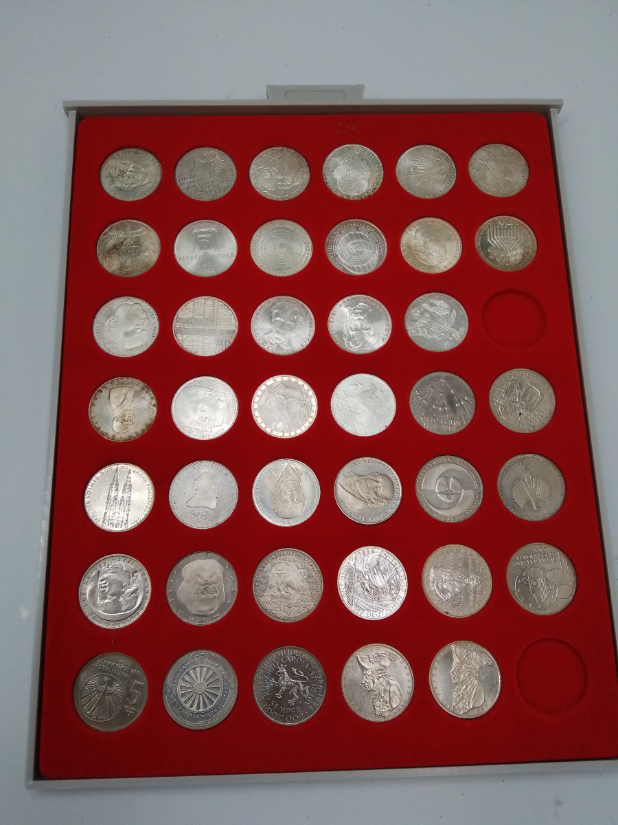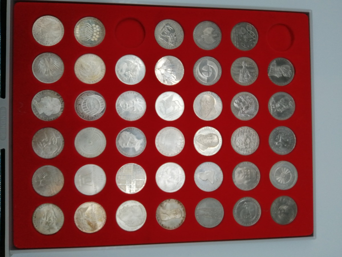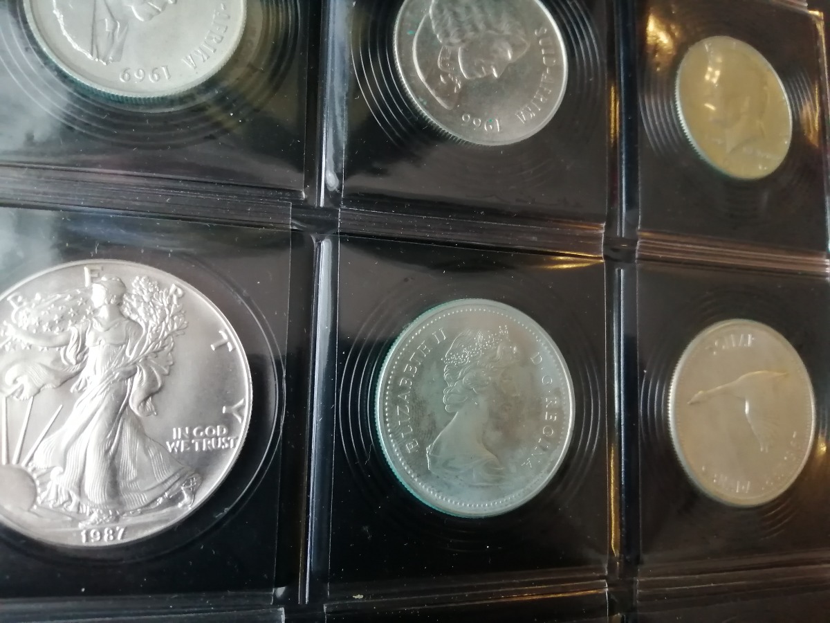 Mønt samling, ramme (925g) og mappe sterling sølv (68g). Brugt med brugsspor. Fra dødsbo