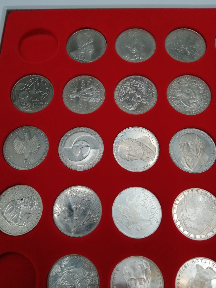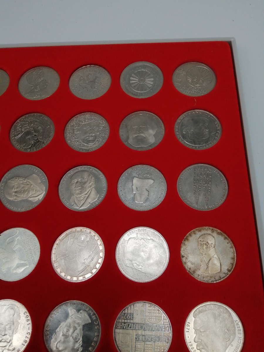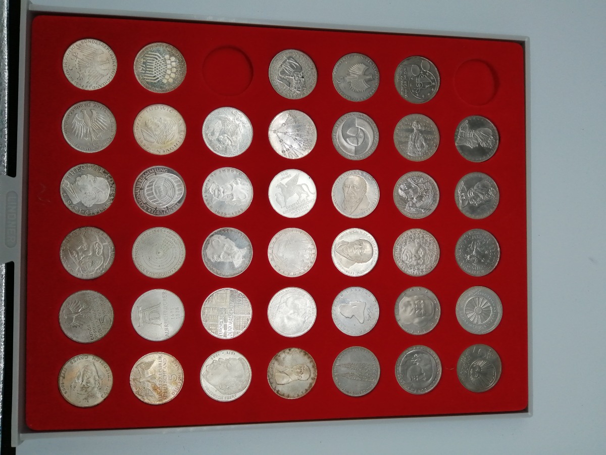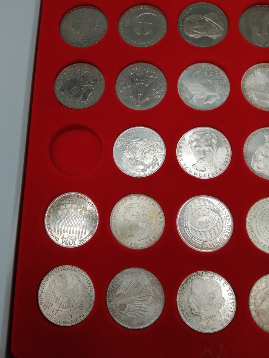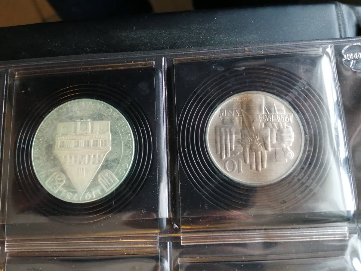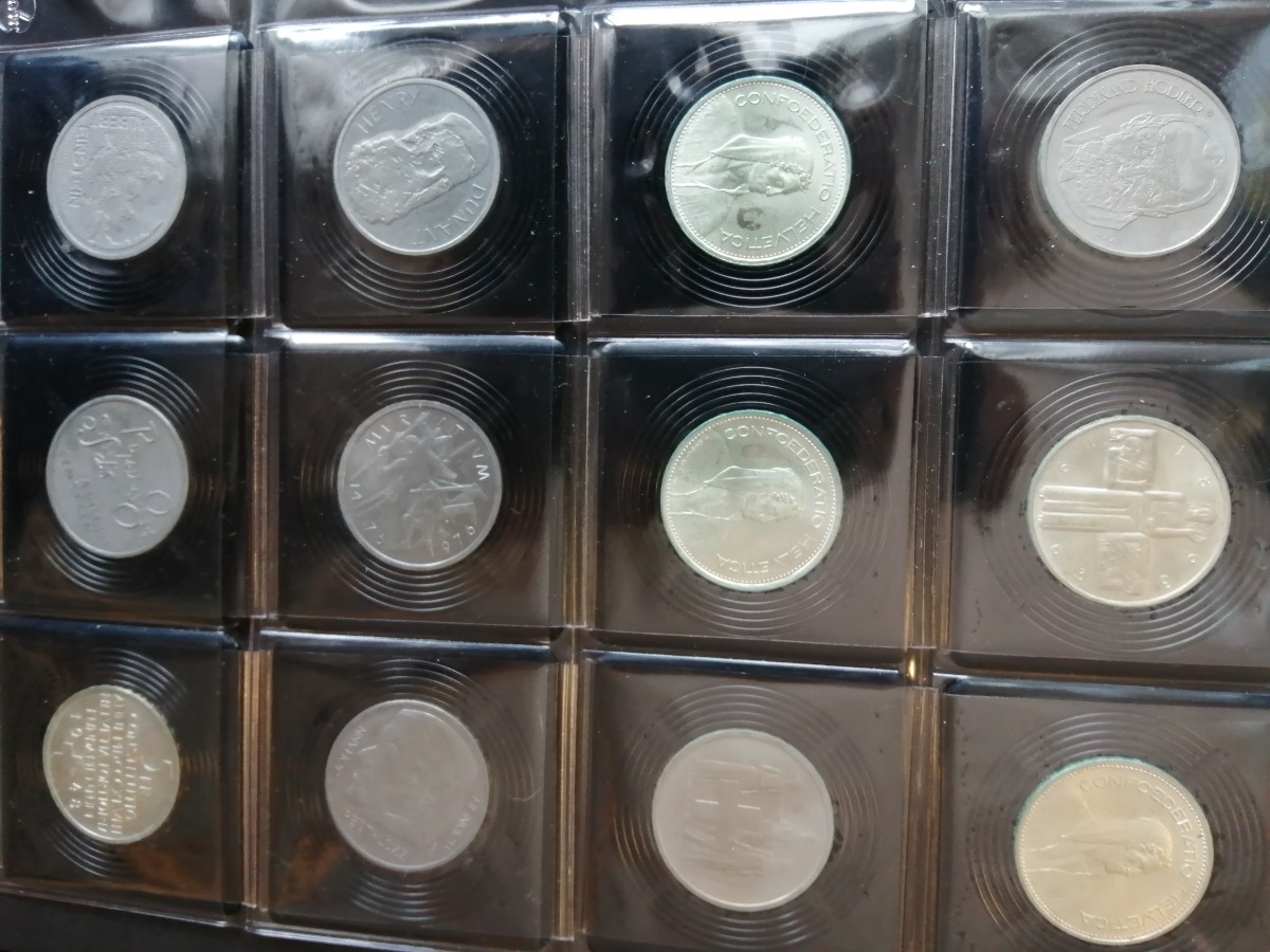 Mønt samling, ramme (925g) og mappe sterling sølv (68g). Brugt med brugsspor. Fra dødsbo
