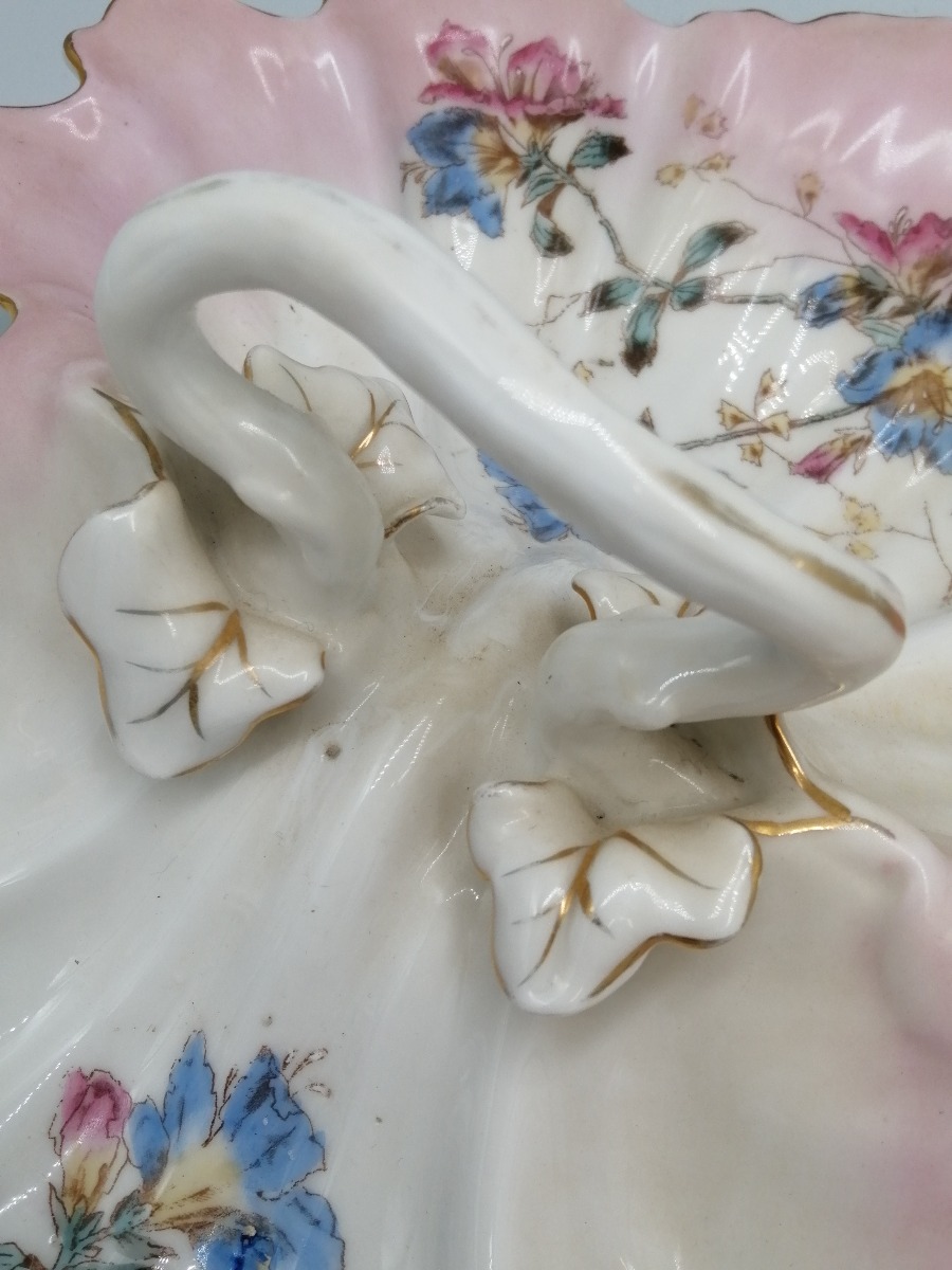 Rokoko porcelæns fad med hank