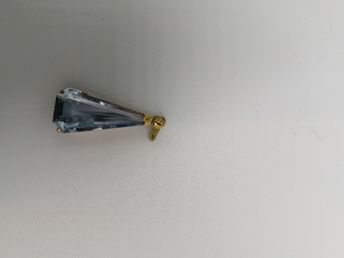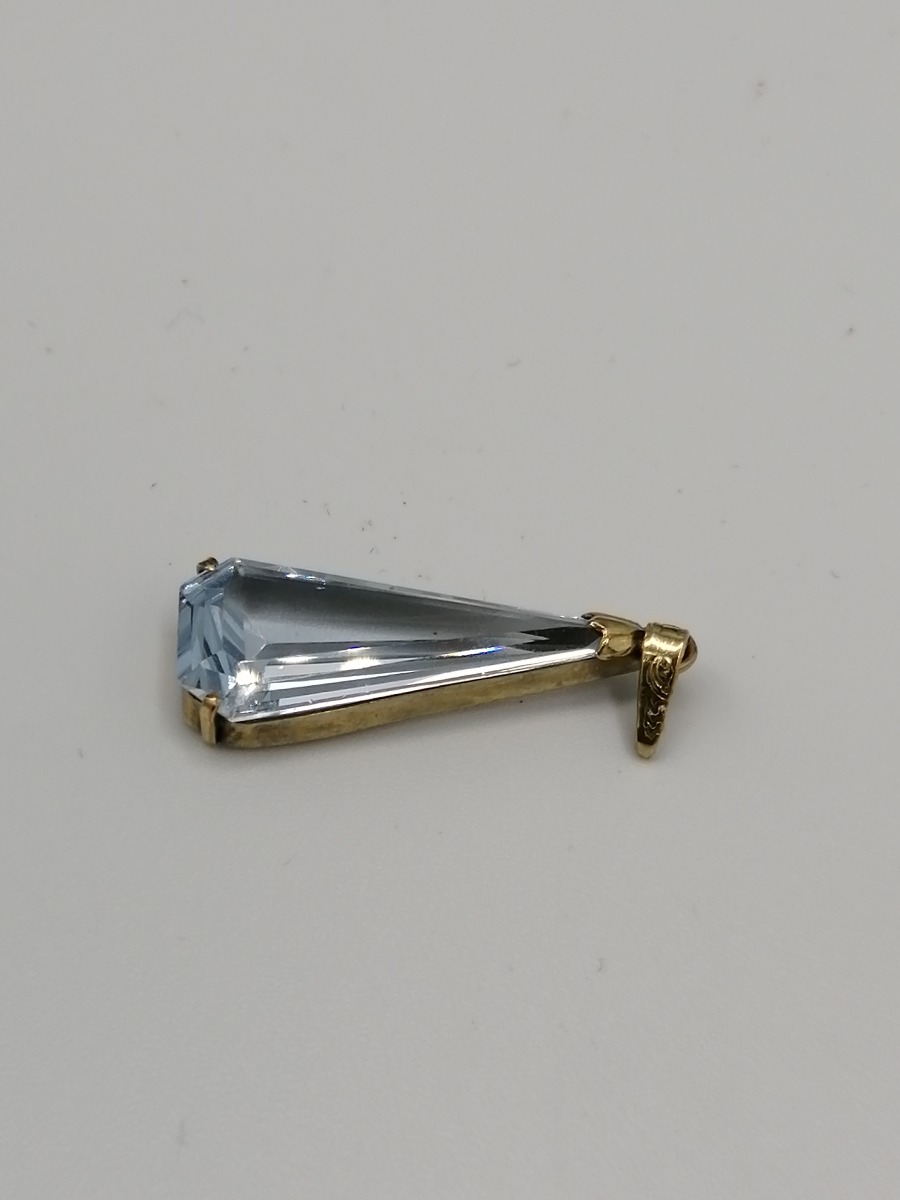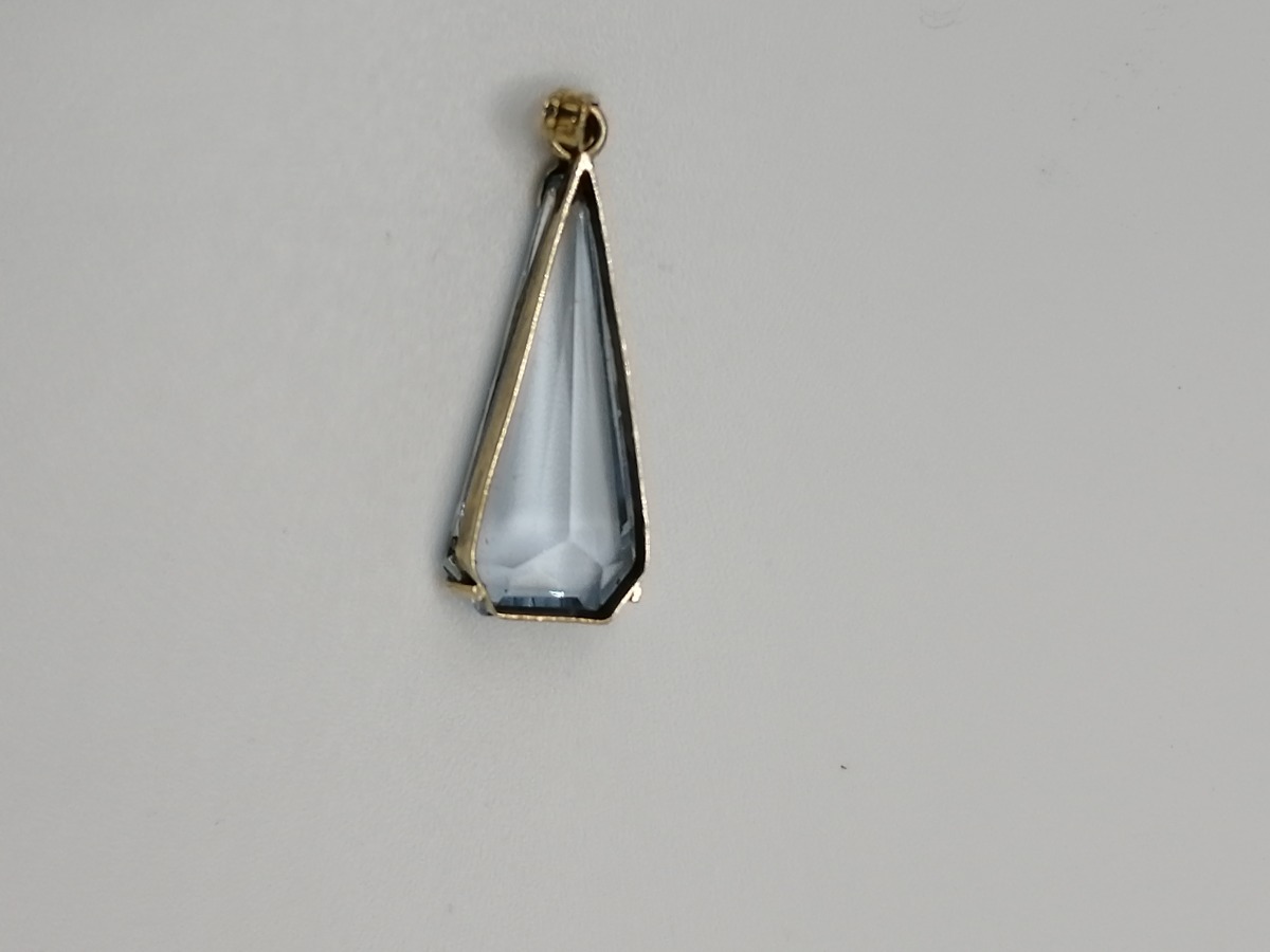 Ved hæng, 8 Karat, Auqa Marin syntetisk sten - har ridser. Brugt med brugsspor. Fra dødsbo.