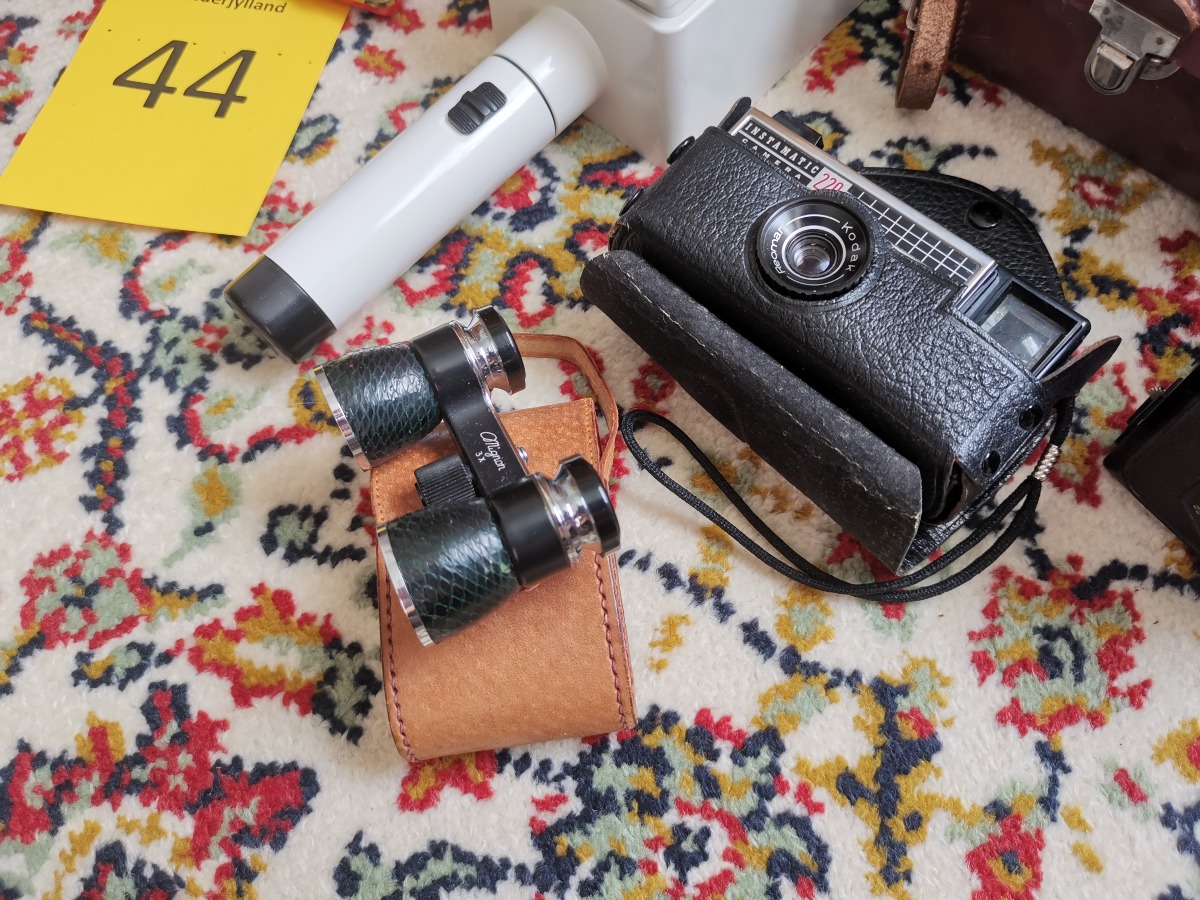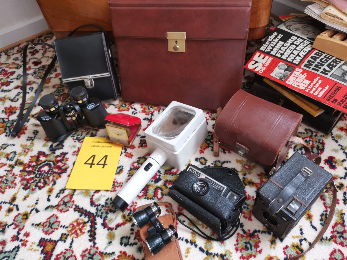 Vintage genstande - Kikkert, kamera, lup mm.
