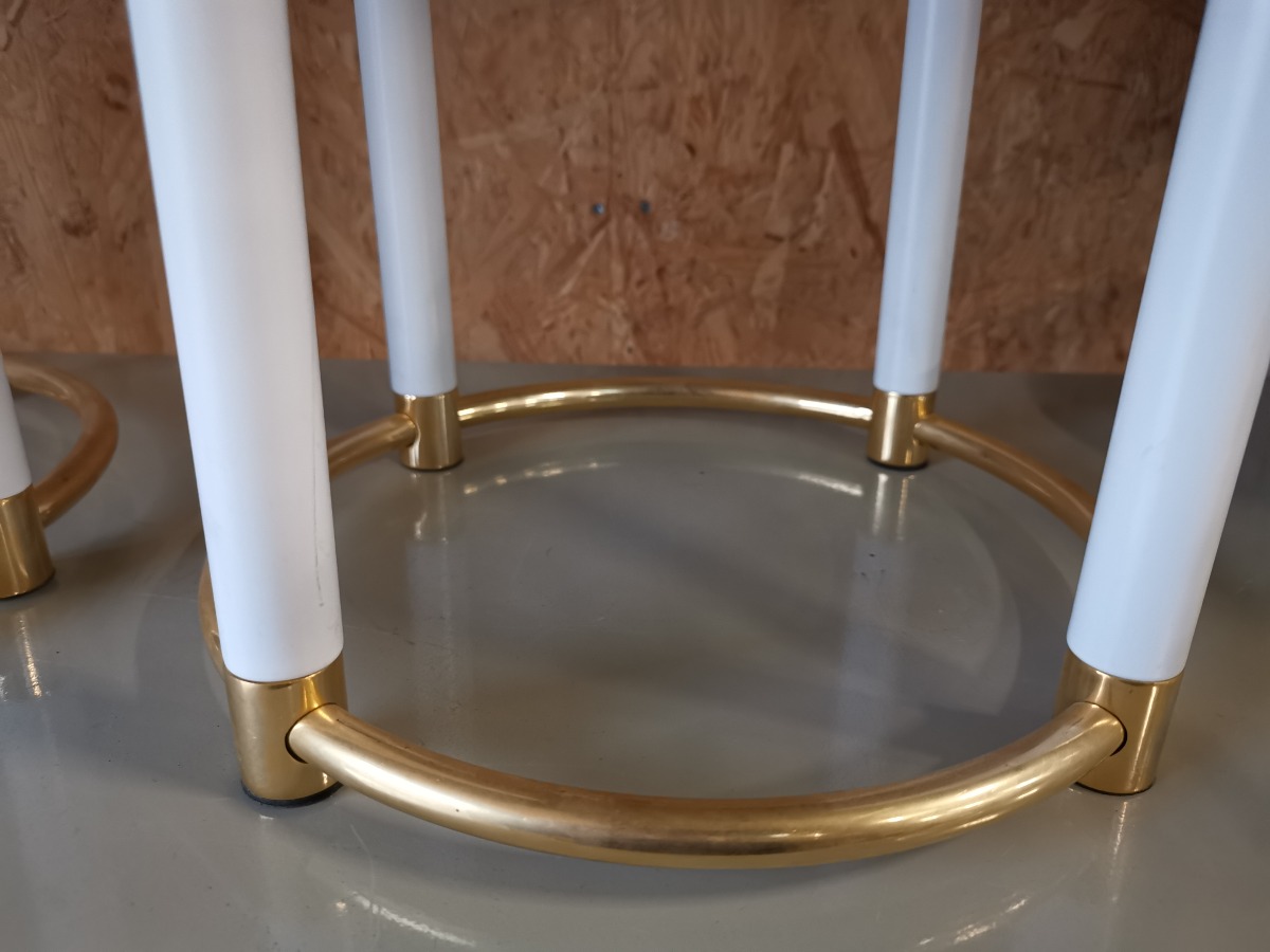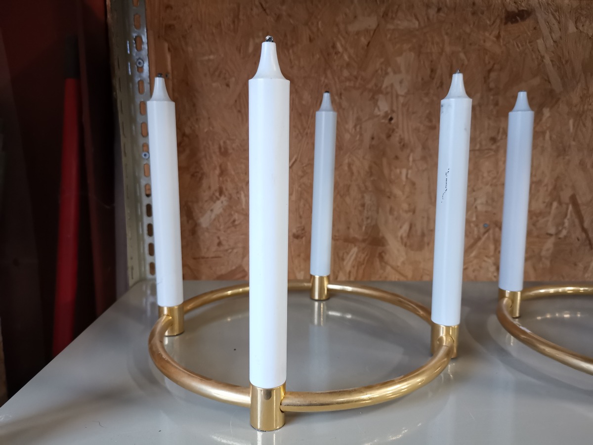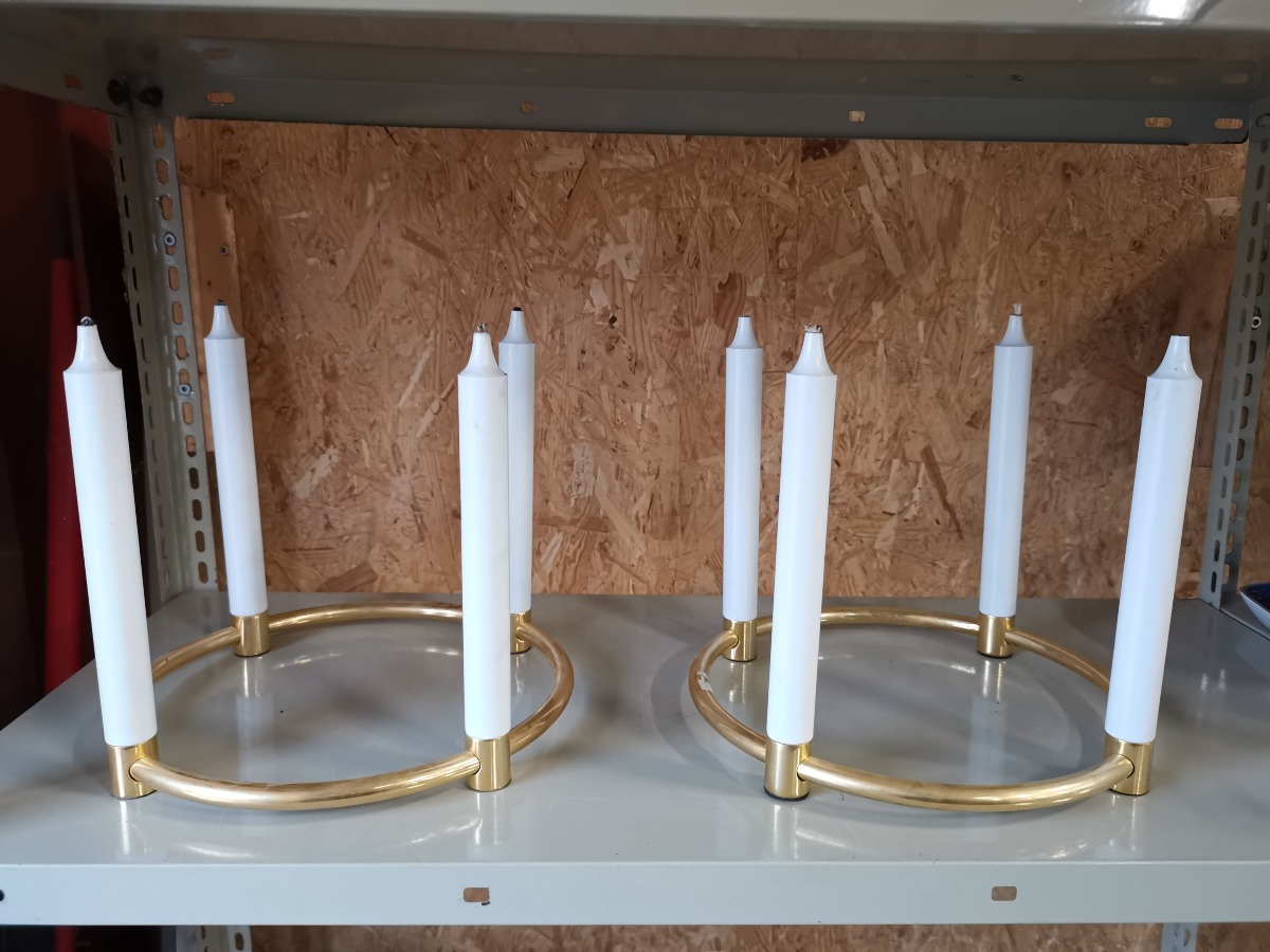 2 adventsstager af børstet messing. Monteret med olielamper udformet som stearinlys.