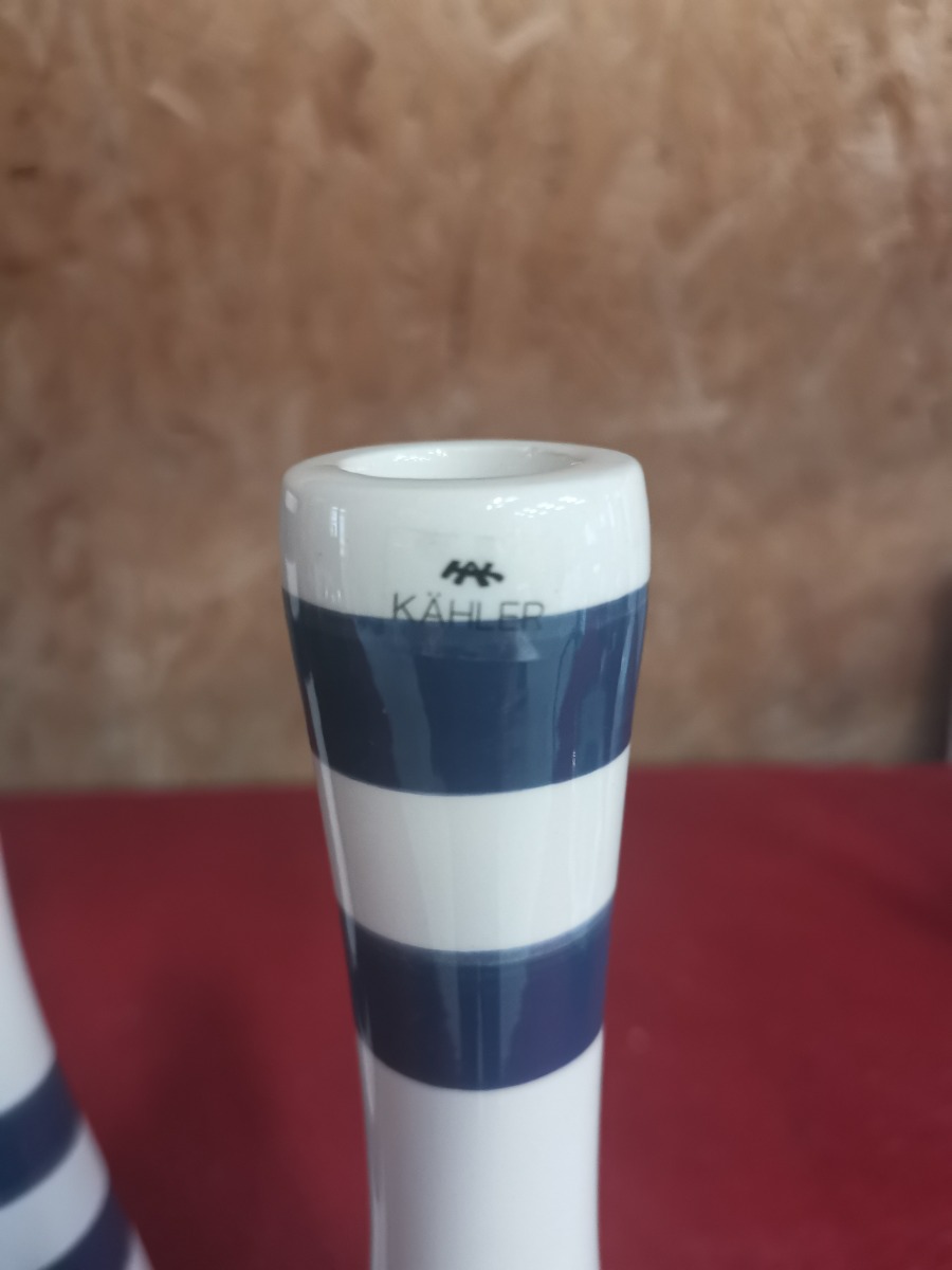 Kähler Omaggio lysestager med håndmalede bånd i blå. H. 24 cm.