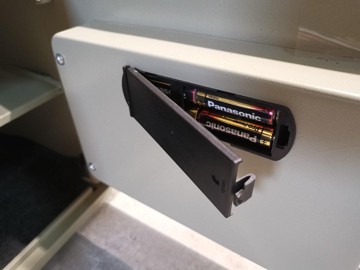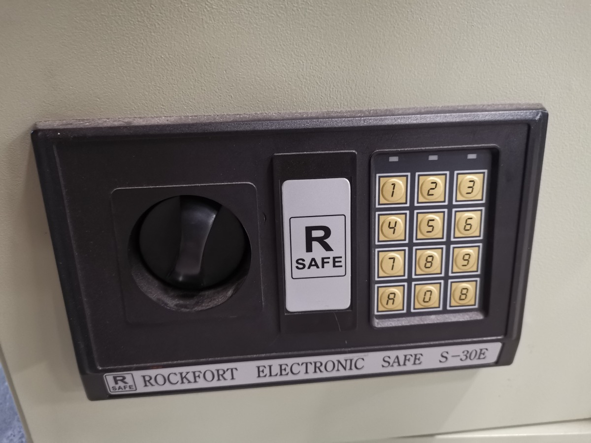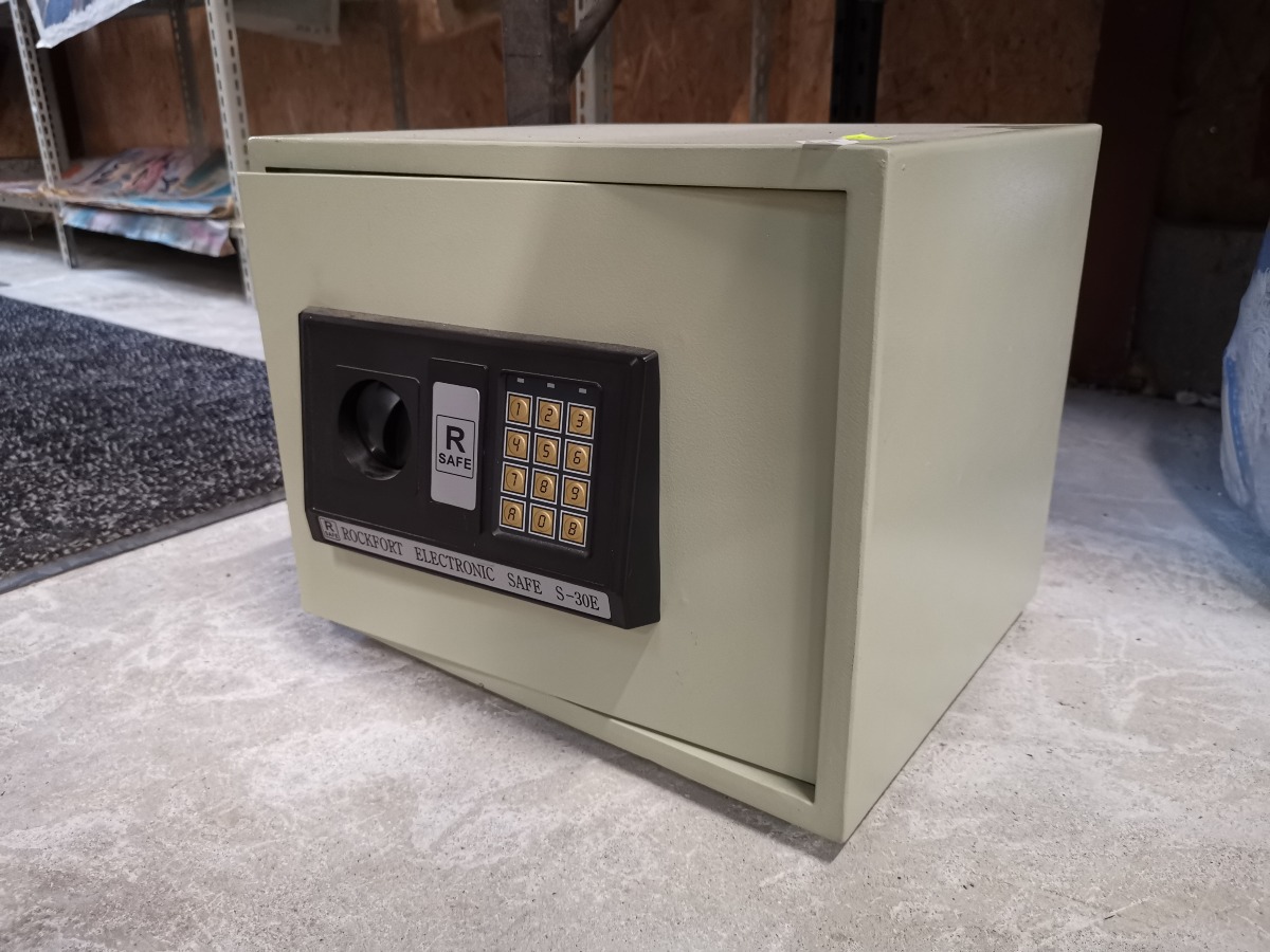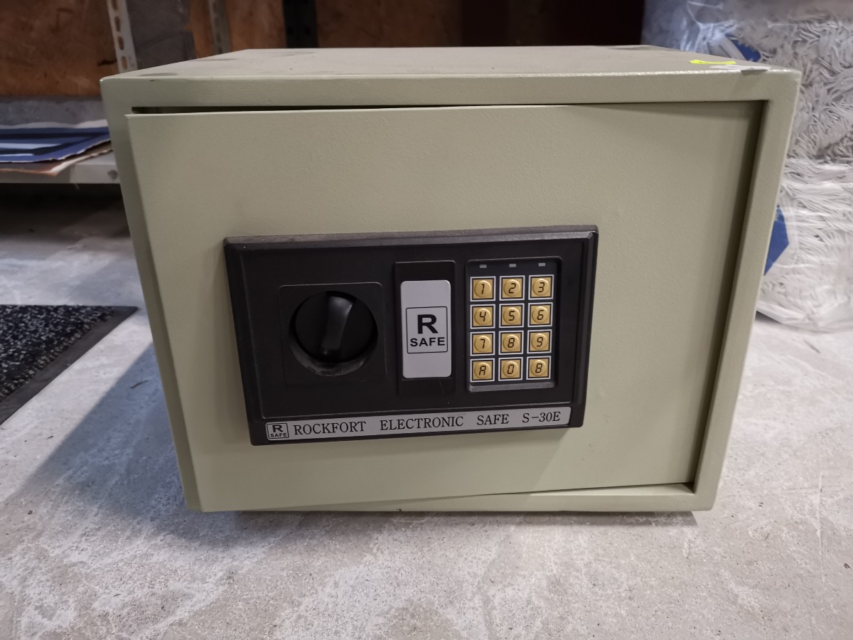 Værdiboks med kodelås. Kodelås er batteridrevet. Mindre brugsspor.