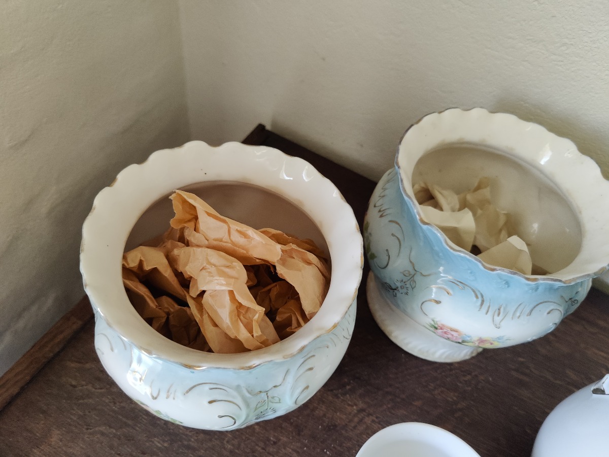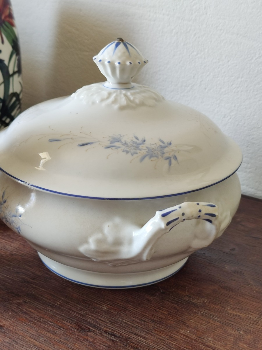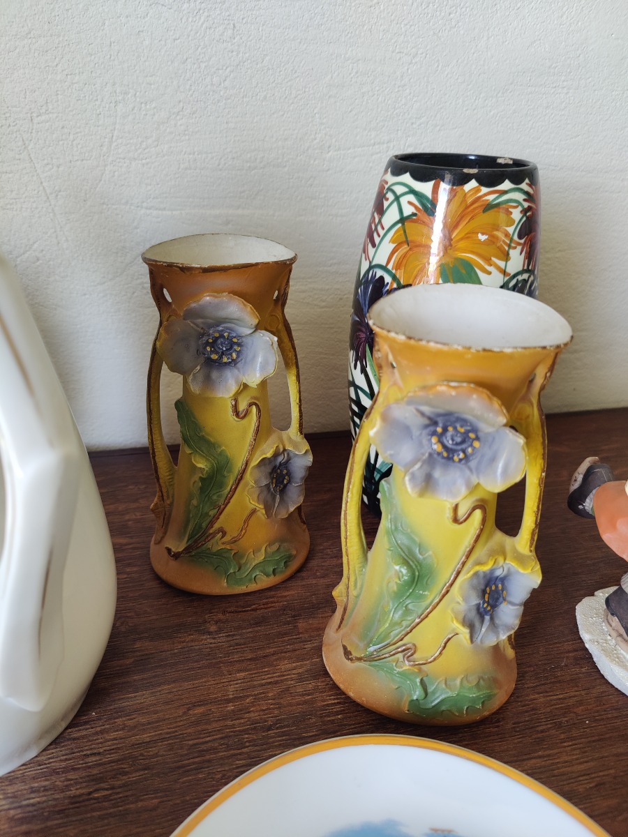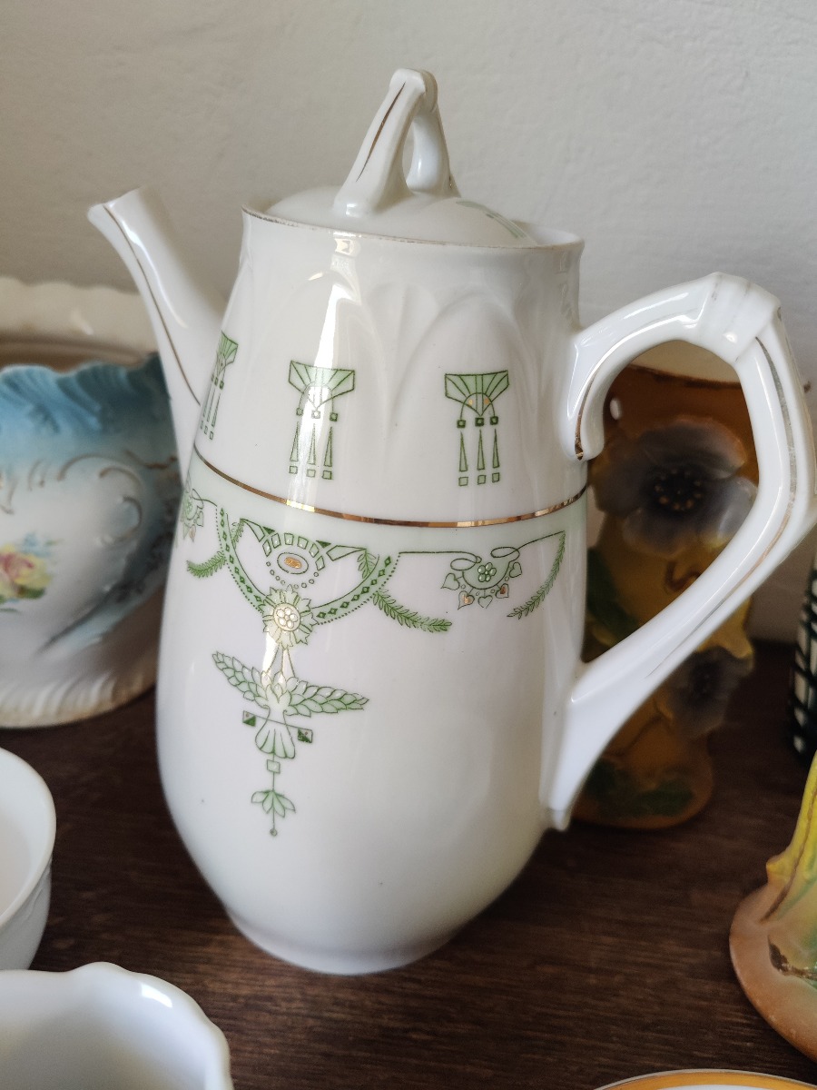 Vintage porcelæn. Urtepotter 2 stk, kaffekande og fløde/sukker skåle, 3 vaser, hvor en en fra Schmberg, dog med skår, og terrin,